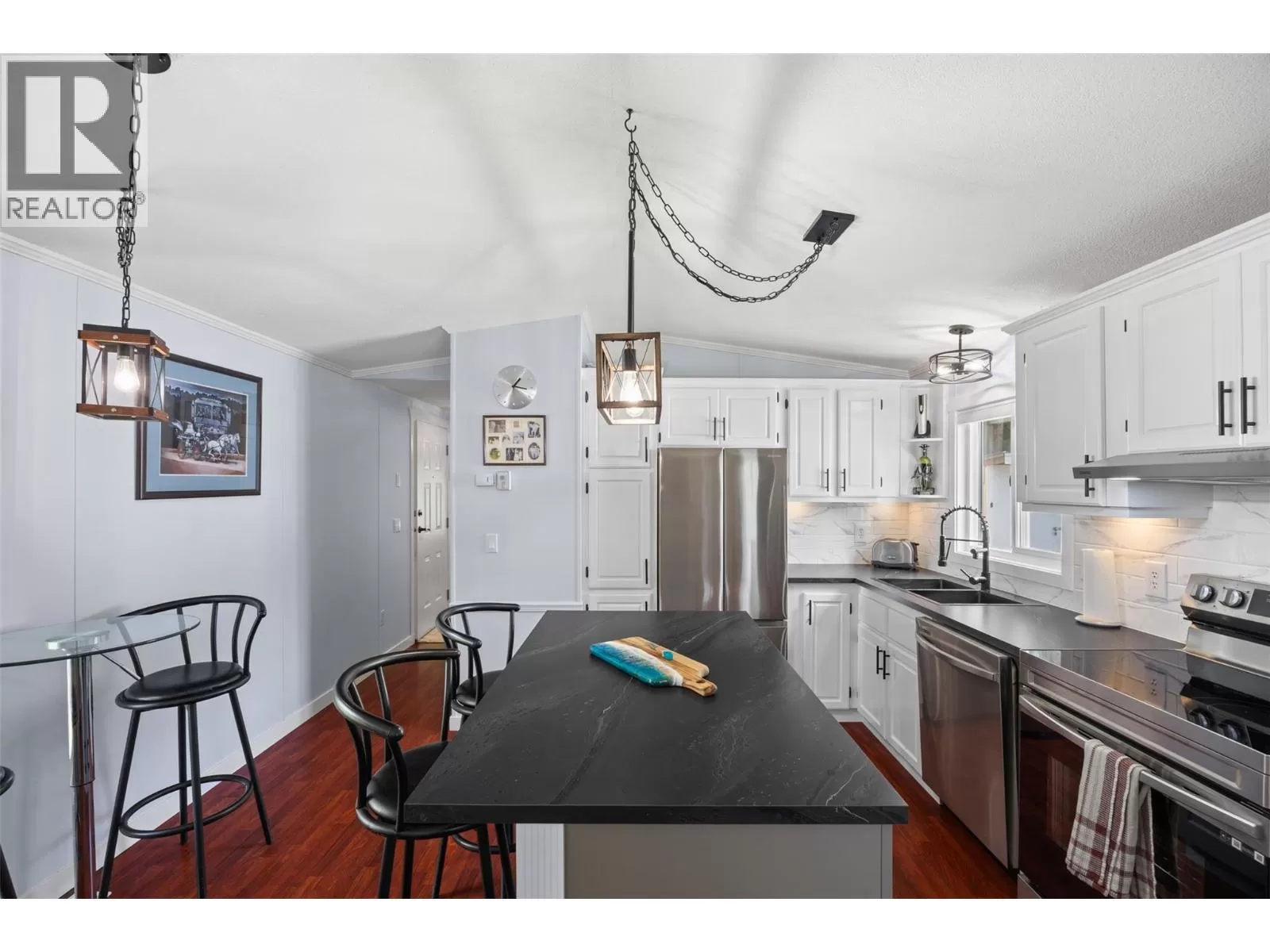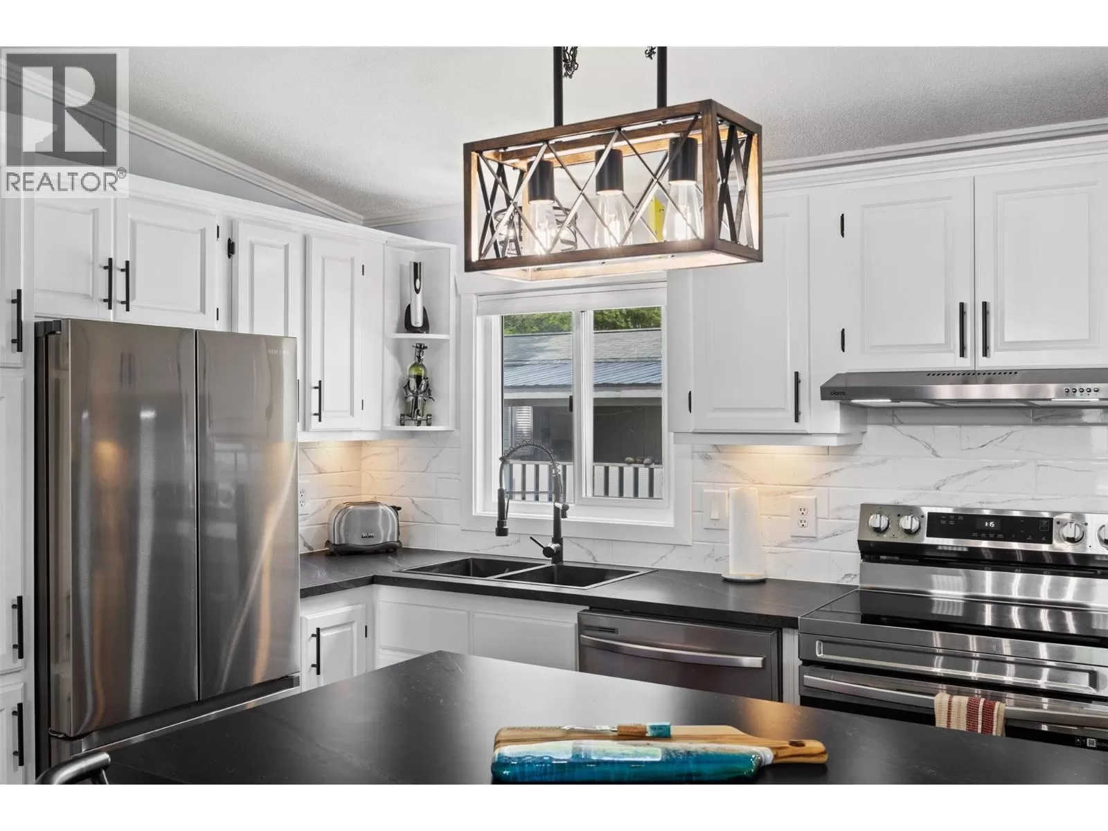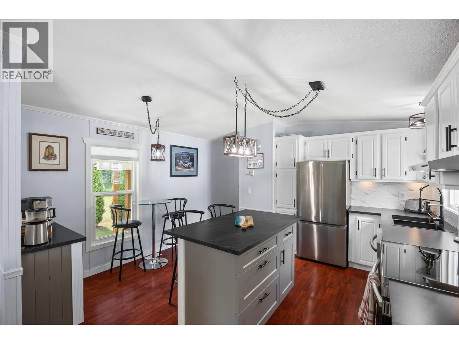 Welcome to 4-851 Old North Thompson Hwy, located in the friendly 55+ community of Sunset Village. This beautifully renovated 2-bedroom, 1-bath home has been thoughtfully updated throughout. The kitchen shines with new stainless steel appliances, sleek countertops, backsplash, cupboards, a kitchen island, coffee bar, updated lighting, hardware, black modern sink, all the finest finishes - you name it! The bathroom is equally impressive with a new tub surround, fresh tiling, stylish vanity with floating marble-look sink, and great lighting. With new paint, trim, doors, flooring and hardware throughout, all you can think of, all thatâs left to do is move in and enjoy! (id:27476)