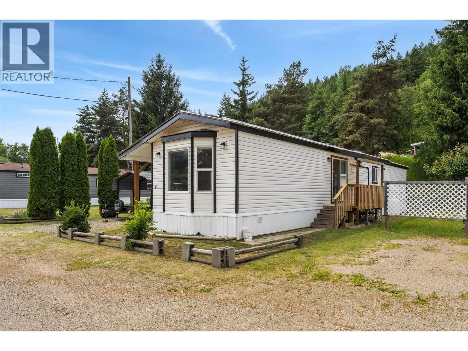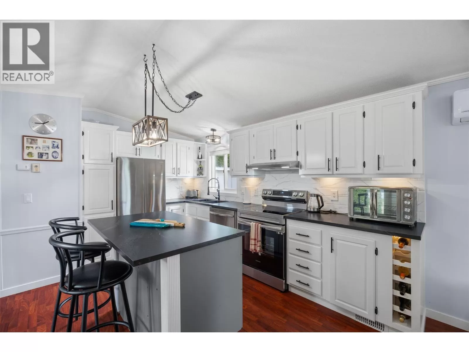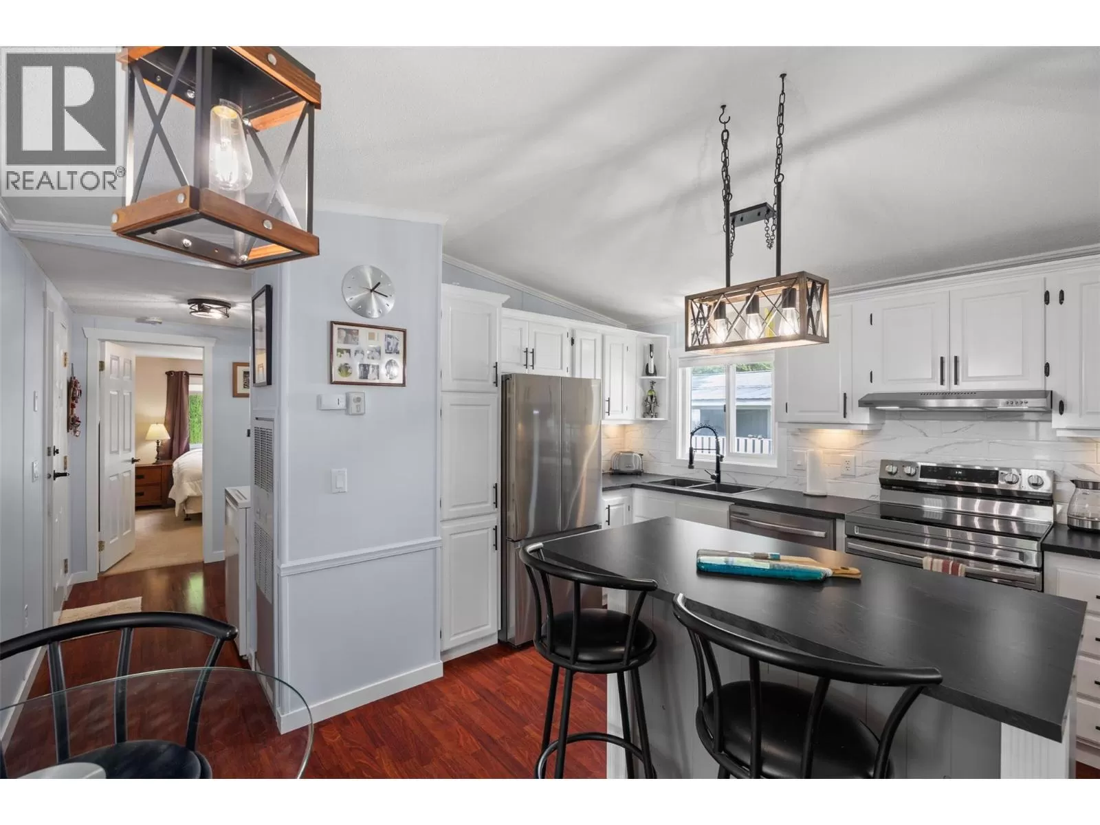 Welcome to 4-851 Old North Thompson Hwy, located in the friendly 55+ community of Sunset Village. This beautifully renovated 2-bedroom, 1-bath home has been thoughtfully updated throughout. The kitchen shines with new stainless steel appliances, sleek countertops, backsplash, cupboards, a kitchen island, coffee bar, updated lighting, hardware, black modern sink, all the finest finishes - you name it! The bathroom is equally impressive with a new tub surround, fresh tiling, stylish vanity with floating marble-look sink, and great lighting. With new paint, trim, doors, flooring and hardware throughout, all you can think of, all thatâs left to do is move in and enjoy! (id:27476)