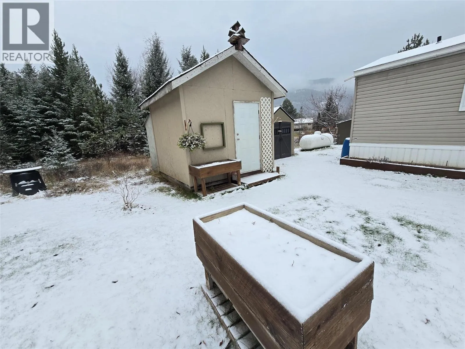 First Time Buyer or Great retirement Setup!!! This Two (2) bedroom, 2 (Two) bathroom mobile has it all. Addition boasts great covered entrance, covered / insulated foyer, and covered private back porch. Open kit/Liv/din makes home feel large. Master suite has walk-in closet, and great ensuite complete with soaker tub. Addition inc, Washer and Dryer, Mud room make great use of space. 2 Detached sheds for all you storage needs. Raised gardens, and backs onto greenspace. Quick possession and easy to show!!!! (id:27476)
