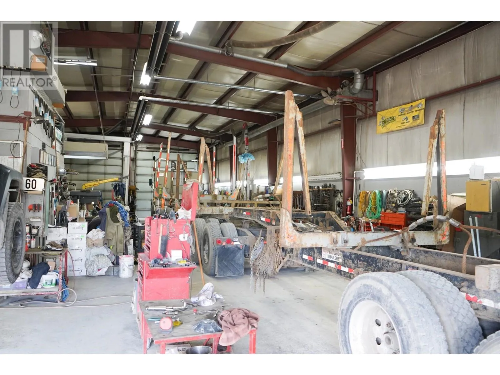Looking for rare, hard to find, easy highway access for your business or personal needs? This Industrial zoned 3.5 acre corner lot on Hwy 97 with a 4000 sqft building in Clinton BC is the perfect fit. The building is 40x100, steel frame with 2 large ceiling mounted propane heaters, 4 14x16 garage doors with drive through bays. There is a vehicle hoist, exhaust fan system, office space, and large mezzanine for extra storage. Secured compound area and tons of flat yard space to store all your own toys or sale products. Tons of opportunity for growth and development. I-1 zoning allows for a lot of potential, including: mini storage, agricultural services, retail sales, truck wash. Email L.S for info package (id:27476)