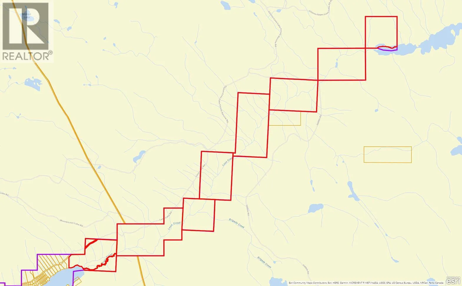 Loon Lake Ranch - 2,275 deeded acres across 12 titles in British Columbia's scenic South Cariboo region, with over 1,500 feet of frontage on Loon Lake. 8 titles stretch along Loon Creek Valley for about six miles, ending at a picturesque parcel on Upper Loon Lake, while four satellite titles feature productive grazing meadows. The ranch irrigates approx. 490± acres via four pivots (340 acres) and wheel lines, flood, and sub-irrigation (150± acres). Water is secured by 11 registered Water Licences and strong storage capacity. Historically, the ranch yielded up to 1,500± tons of hay annually. A major asset is the 3,994 AUM Crown Range Permit, supporting up to 800 cattle, including 496 AUMs for winter grazing. Operations formerly supported an 800-head cow-calf herd and are currently leased to a prominent BC ranch, generating income. (id:27476)