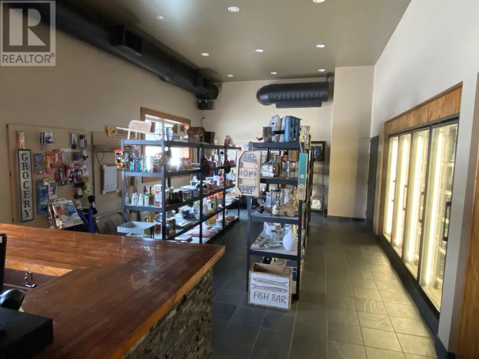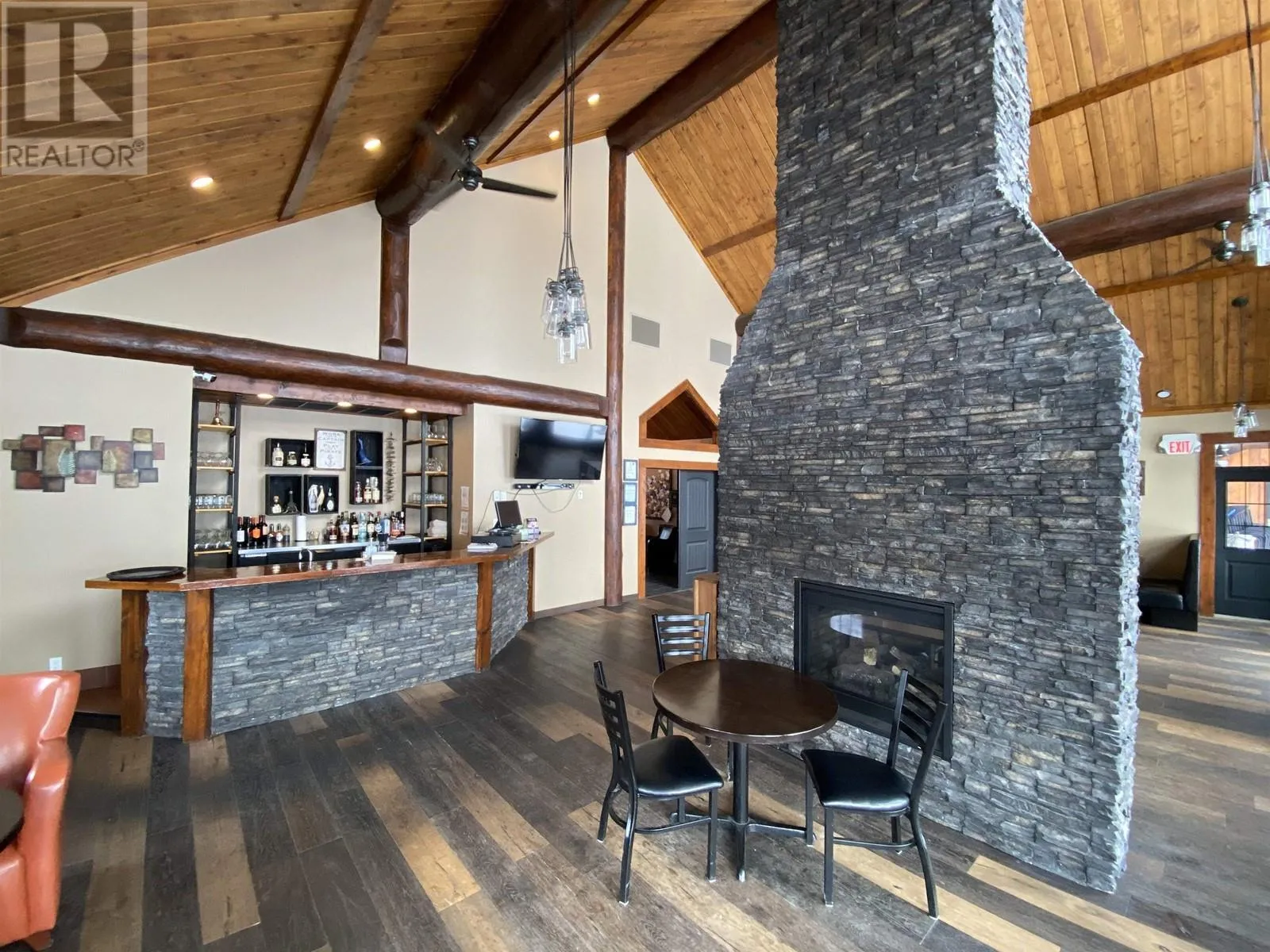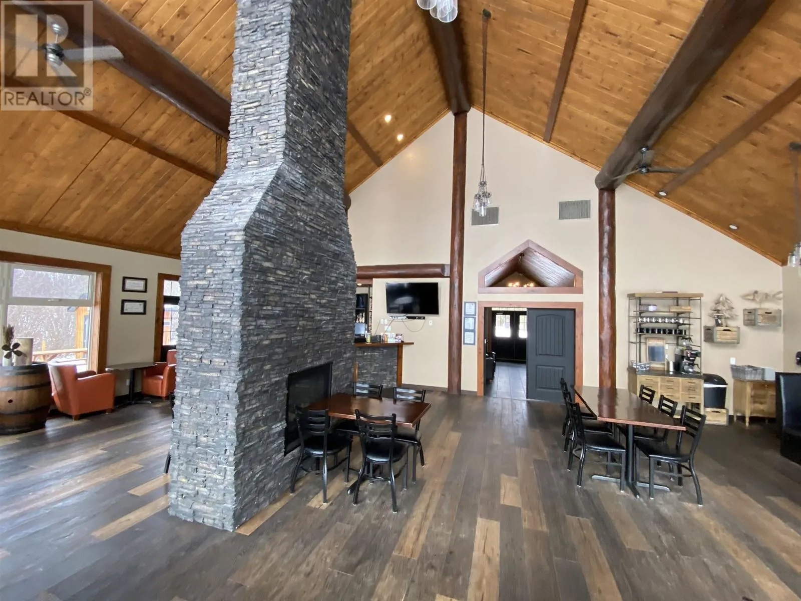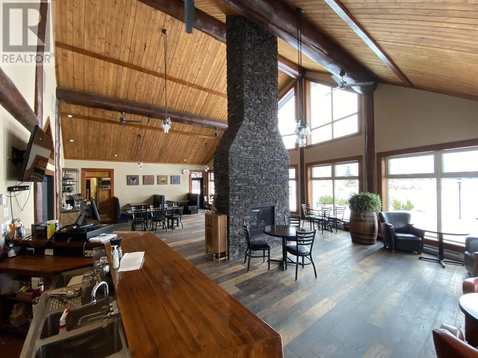 The Cabin Restaurant rest on almost 7.5 acres of prime Cluculz Lake waterfront property which is located just 45 minutes west of the biggest population centre in Northern BC, Prince George. Built with pride by the current owners in 2015 this opportunity features: Southern Views, a 43 seat restaurant with gift shop on the main floor @ 3224 sq. ft., a 2 bedroom second floor owners suite, fully equipped kitchen, 11 seat lounge which is separated by a massive floor to ceiling cultured stone gas fireplace and the sunny 20 seat patio with lake views. The ambiance is rustic yet modern with a post and beam interior and impressive soaring vaulted ceilings. (id:27476)