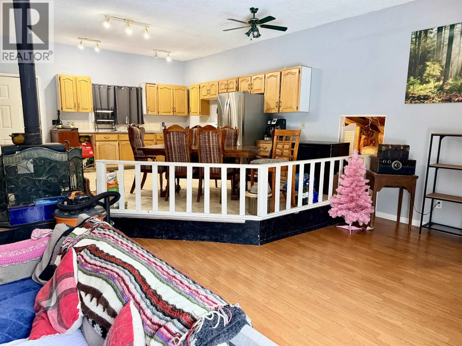 Nestled on five private, treed acres just steps from beautiful Cluculz Lake, this well-maintained three-bedroom bungalow rancher offers peaceful country living in a full-time residential setting. The home features a functional layout with three bedrooms, one bathroom, and newer appliances, providing comfort and practicality for everyday living. The property includes charming fenced garden areas, thoughtfully designed to protect plantings from local wildlife, and ideal for those who enjoy gardening and outdoor living. A 30â x 45â Quonset, built in 2020 and wired for 220, offers excellent space for storage, workshop, or hobby use. Enjoy privacy, usable acreage, and close proximity to the lake in this desirable rural location. (id:27476)