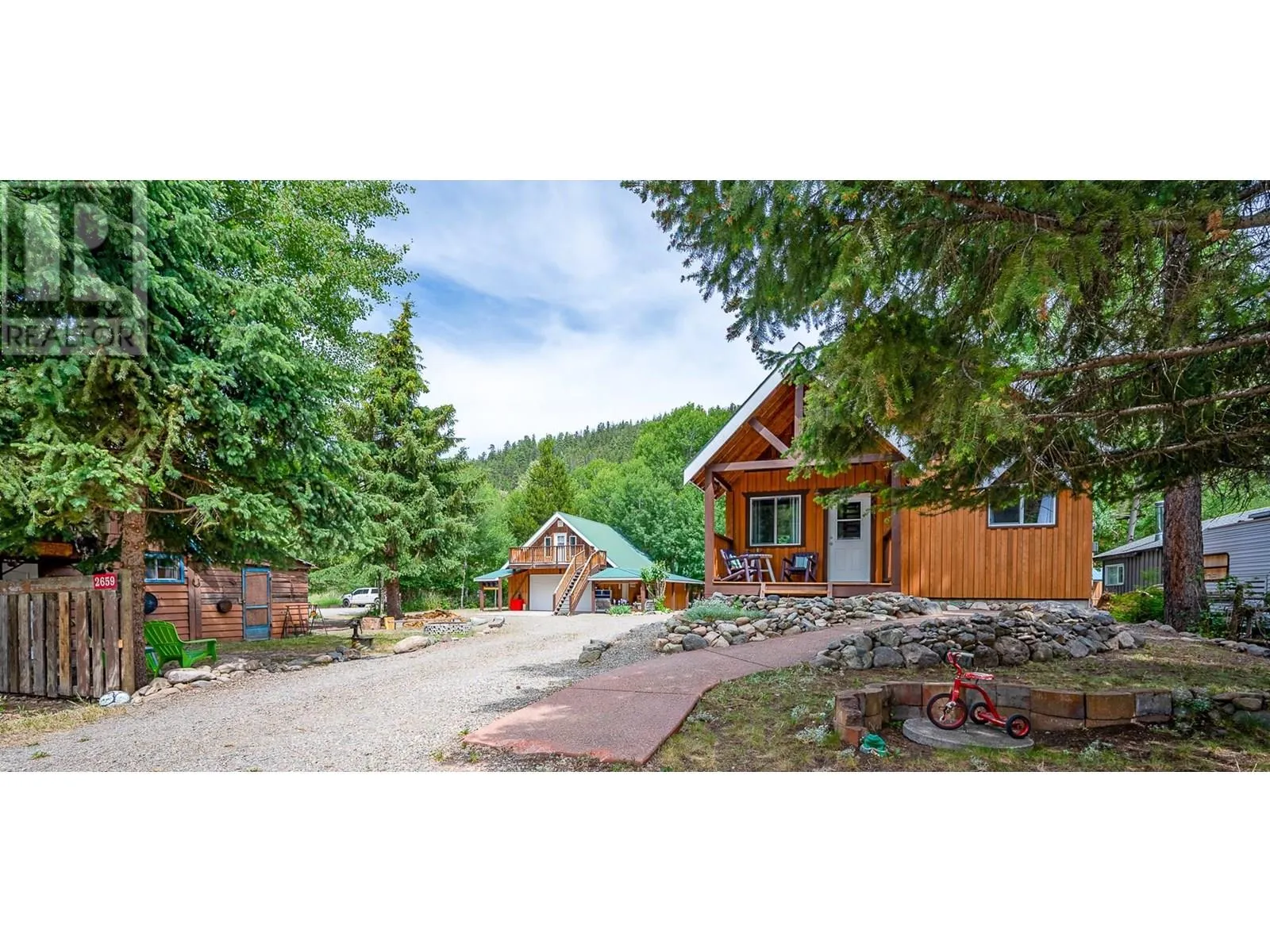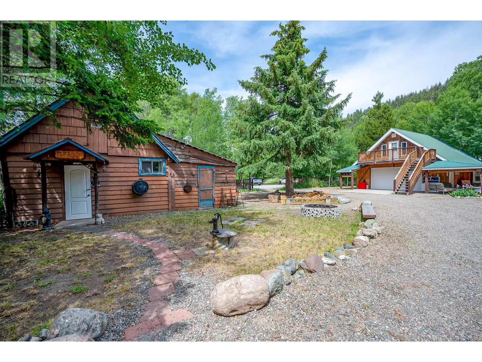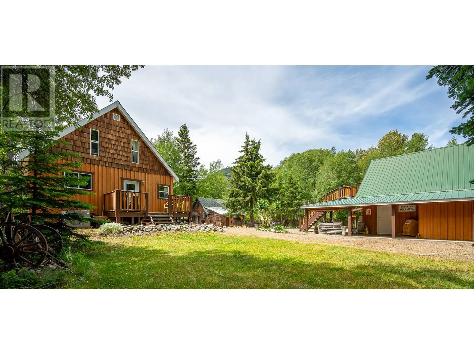 Welcome to your Tulameen getawayâjust steps from the sparkling shores of Otter Lake! This rare 0.28-acre property offers a beautifully crafted main home, a vintage log cabin full of character, and a finished lofted bunkie above an oversized garage - ideal for family gatherings, visitors, or a cozy multi-generational retreat. The main house (built in 2006) exudes warmth and comfort with vaulted ceilings, an open-concept layout, spacious kitchen, two bedrooms, and a loft perfect for games, reading, or extra sleep space. Step onto the covered front porch with your morning coffee, or unwind on the back deck, around the campfire, or beneath the spacious covered patio after a day of lakeside adventure. The original log cabin adds rustic charm with its log walls, bright sitting room, kitchenette, two sleeping areas, and flexible space for guests, a studio, or summer sleepovers. Nearby, the oversized garage features a finished bunkie loft with its own bedroom, lounge, and a second 3-piece bath - adorable, private, and perfect for teens or guests. Outside, enjoy natural landscaping, a shared firepit for roasting marshmallows, and ample space for kayaks, bikes, RVs, and more. Steps to the beach, boat launch, and trail access, with year-round adventure just beyond your doorâpaddling, quadding, skating, fishing, snowmobiling, or simply soaking in the serenity. Peaceful, playful, and full of potentialâthis is where your Tulameen story begins. (id:27476)