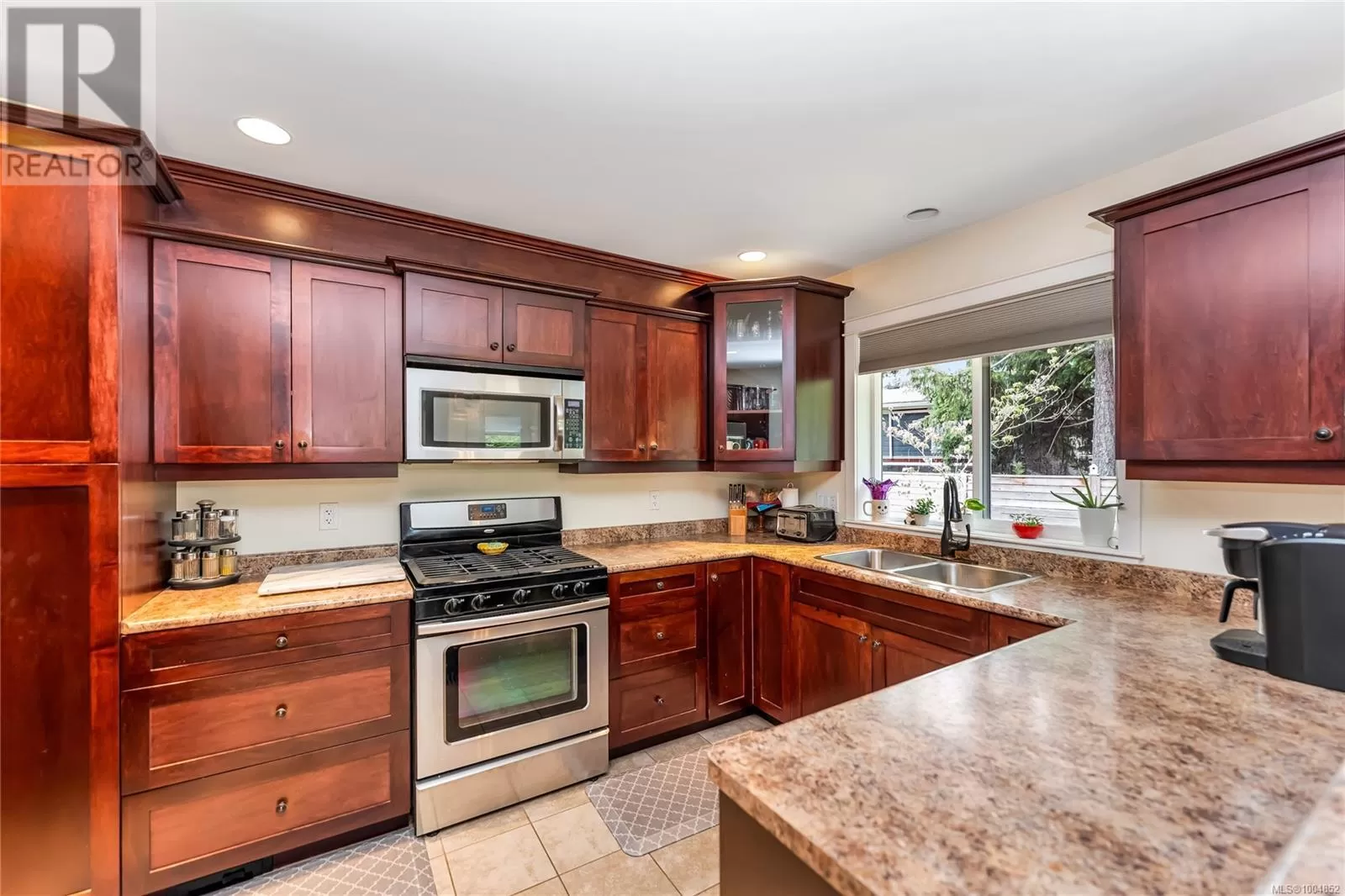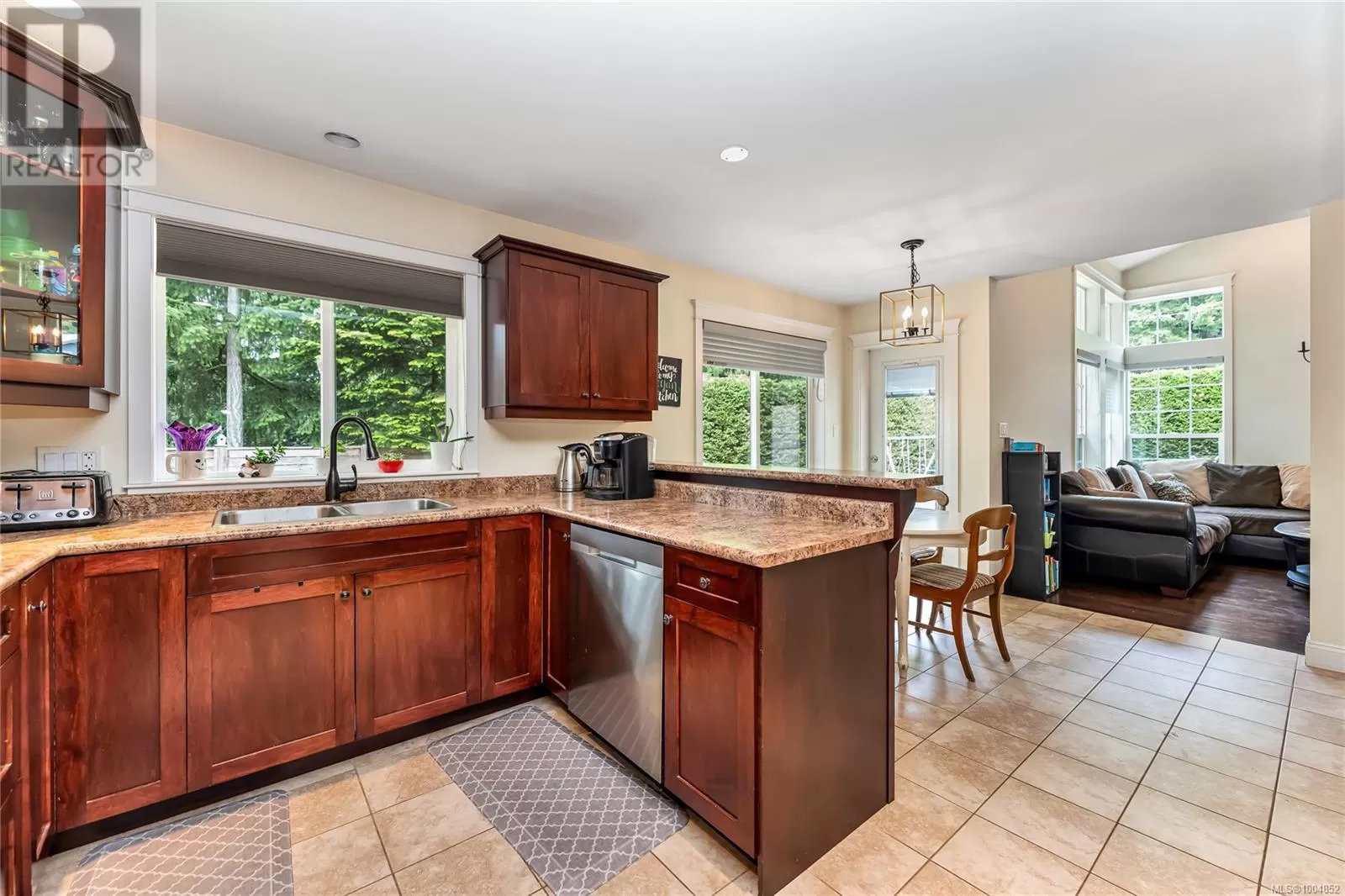 Set on a large corner lot in quiet Cobble Hill, this 4-bed, 3-bath home offers great curb appeal on a no-through street. The charming covered front entrance leads into a vaulted foyer & onto a bright, airy living room filled with natural light. The main-level layout features a generous primary bedroom with a walk-in closet, en-suite with heated floors & nursery/bonus space. Upstairs, are 3 more bedrooms & a full bath â ideal for family & guests. Additional features include a fully fenced backyard, a double car garage, greenhouse, shed, extra parking for an RV or boat, heat pump with AC, natural gas, underground services & more. Located on a community-oriented street with a park just steps away â complete with a playground & sport court. Close to Cobble Hill Village shops, restaurants, hiking/biking trails too. This is a home and a community youâll love! (id:27476)