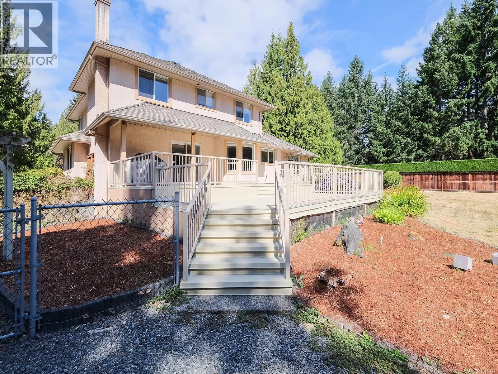 Welcome to 3639 Farnsworth Rd â a stunning 2,635 sq ft custom-built two-level home situated on a beautifully landscaped, level and fully fenced 1.3-acre lot in the desirable Farnsworth neighbourhood. This spacious residence features 3 bedrooms (all upstairs), 3 bathrooms, a den, a formal dining room, and both family and living roomsâperfect for flexible living and entertaining. The kitchen offers plenty of storage and prep space, a eating area and seamlessly flowing to the family room for those large family gatherings. Warm oak hardwood floors run throughout, while the propane fireplace and heat pump with air conditioning provide year-round comfort. Step outside to enjoy the expansive double-tier deck, wired for a hot tub, overlooking the meticulously maintained grounds with a full sprinkler system. Parking is never an issue, with a large turnaround driveway, attached double garage with EV outlet, and abundant space for vehicles, RVs, and boats. Two impressive detached workshops complement the property: a double-bay, over-height shop built specifically for RV and boat storage, and a second workshop featuring a heated, finished woodshop, 3-piece bathroom, home gym, and storage room. This one-of-a-kind property combines comfort, functionality, and plenty of space for hobbies, toys, and entertaining. A rare opportunity in a sought-after location! (id:27476)