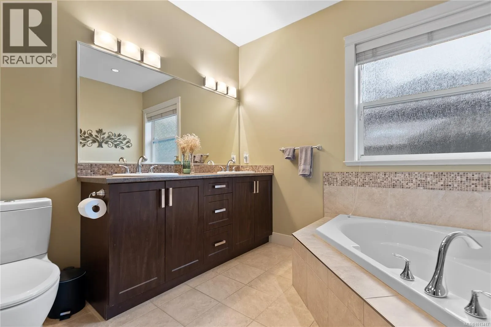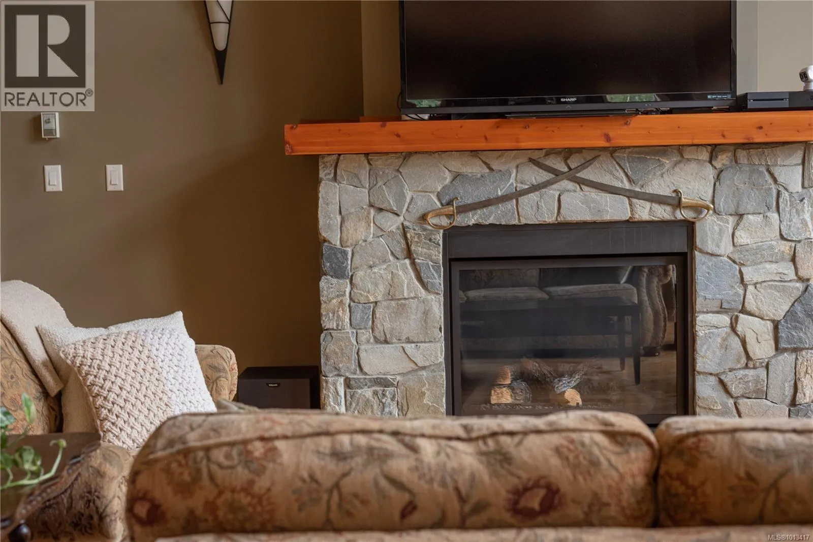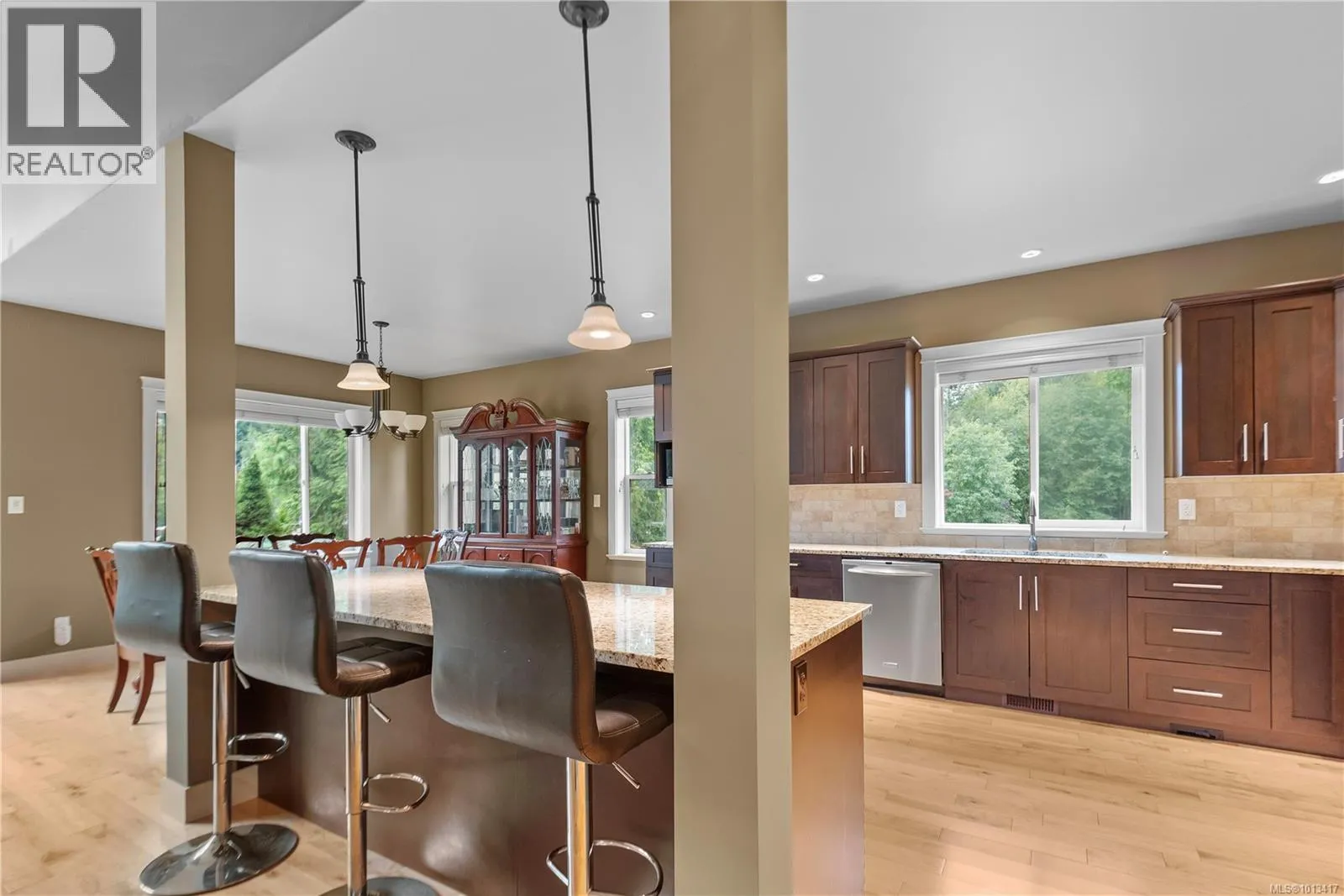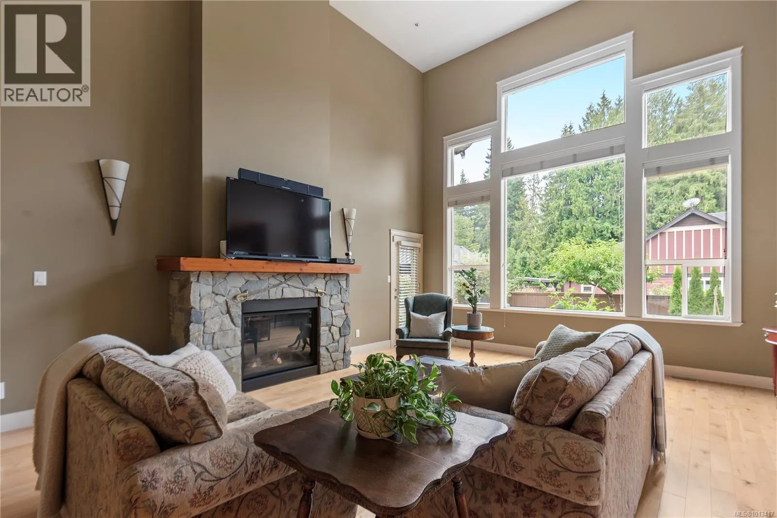 This beautifully maintained home combines elegance, comfort, and thoughtful design. Offering 3 bedrooms plus a den, the layout is ideal with the primary suite and den conveniently located on the main floor. The open living space is bright and inviting, featuring soaring ceilings, custom floor-to-ceiling windows, and a natural gas fireplace. The kitchen is a chefâs delight with rich wood cabinetry, granite counters, tile backsplash, oversized island, gas range, and generous dining area. The king-sized primary bedroom includes a luxurious 5pc ensuite with heated tile floors and walk-in closet. Upstairs, two spacious bedrooms, a 5pc bath, and a versatile family room provide excellent space for family or hobbies. Additional highlights include a heat pump, built-in vacuum, solid maple flooring, and professionally landscaped grounds with raised garden beds and fruit trees. Situated within walking distance to Cobble Hill Mountain trails, Watson Park, Evergreen School, and the Cobblestone Pub. (id:27476)