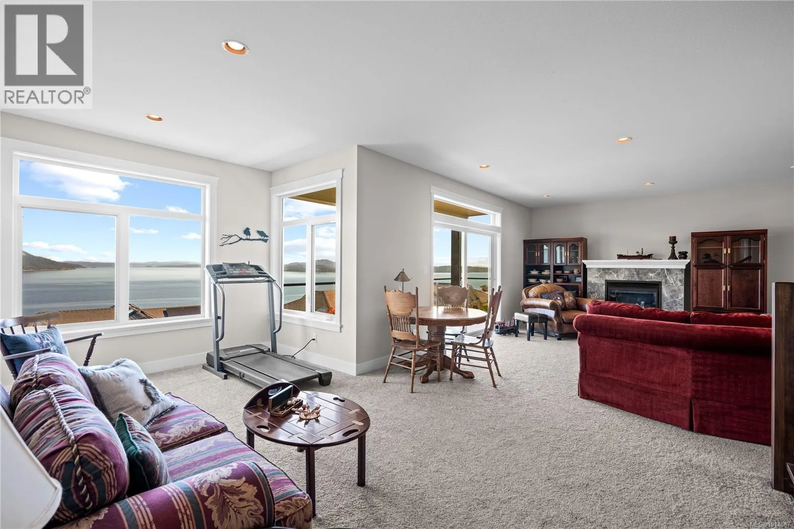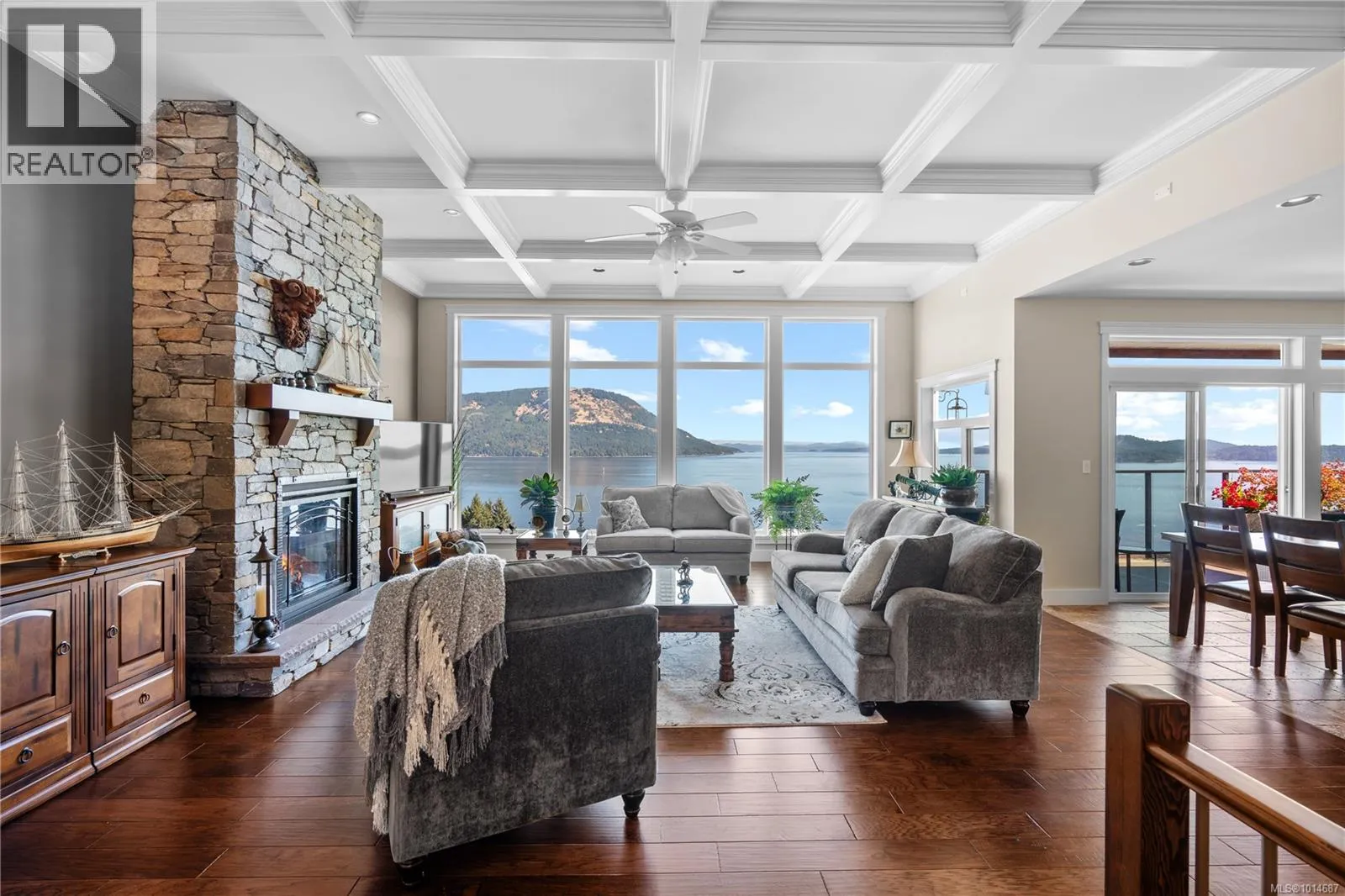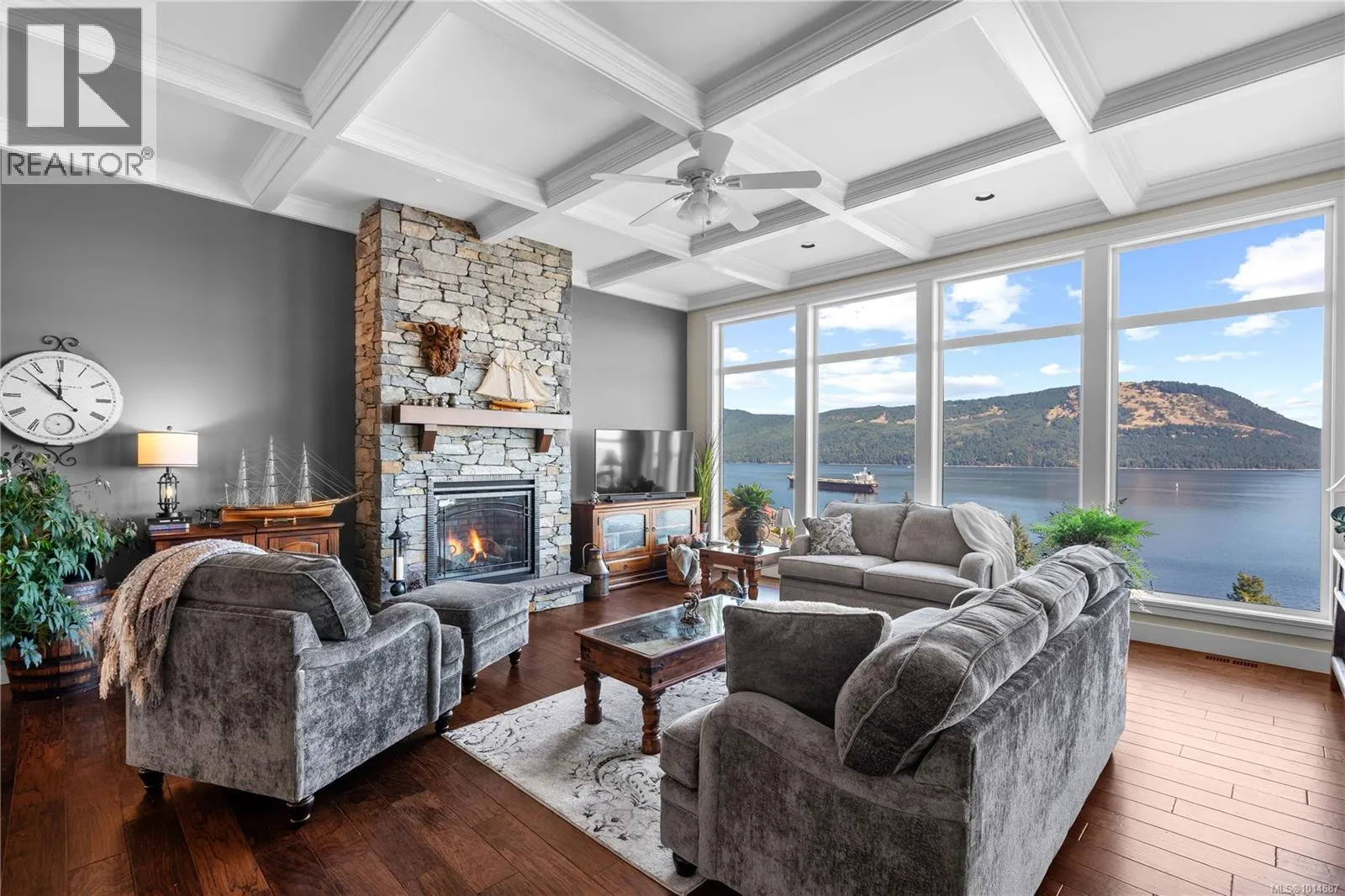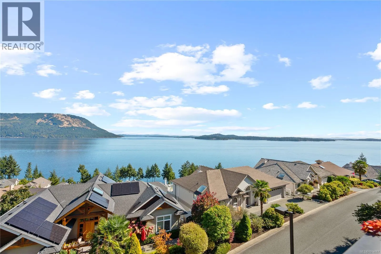 Welcome to 412 Seaview Place, a custom-built executive home with breathtaking views of Salt Spring Island, Satellite Channel, and Mount Baker. Located in the gated 55+ community of Arbutus Ridge, enjoy resort-style living with a golf course, pool, gym, tennis, RV parking, 24/7 security, and vibrant social clubs, all minutes from essential amenities. Built in 2014, this main-level living home features a gourmet kitchen with Dacor gas stove, walk-in pantry, and gas BBQ hookup. Interior highlights include engineered hardwood, coffered ceilings, E3 Low-E windows, surround sound, and a gas fireplace. The primary suite offers a spa-like ensuite, walk-in closet, and in-floor heat. A private office, guest bath, laundry, and double garage complete the main level. Downstairs includes two bedrooms, full bath, rec room with fireplace, storage, and a versatile bonus space, plus an unfinished third level ready for your ideas. Discover refined West Coast living at its finest. (id:27476)