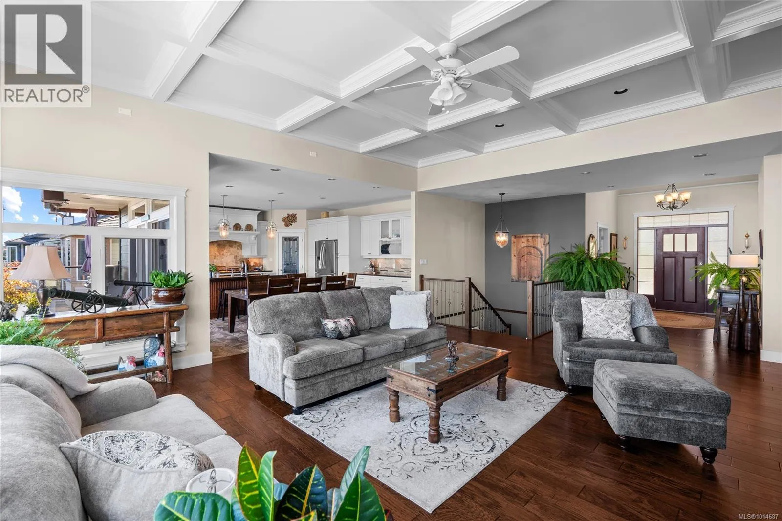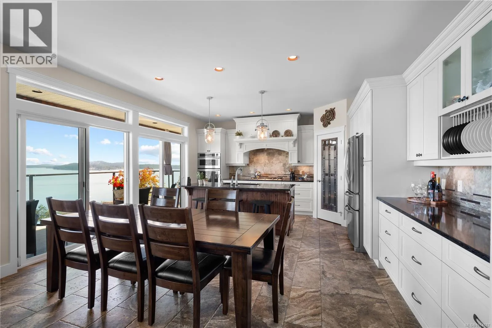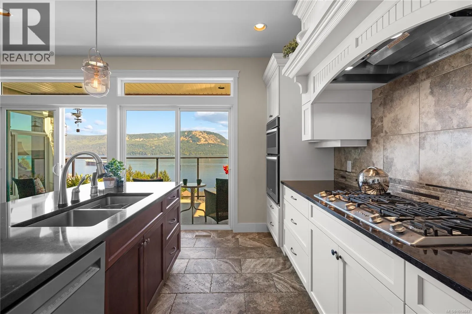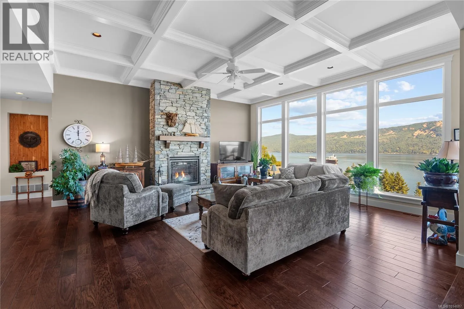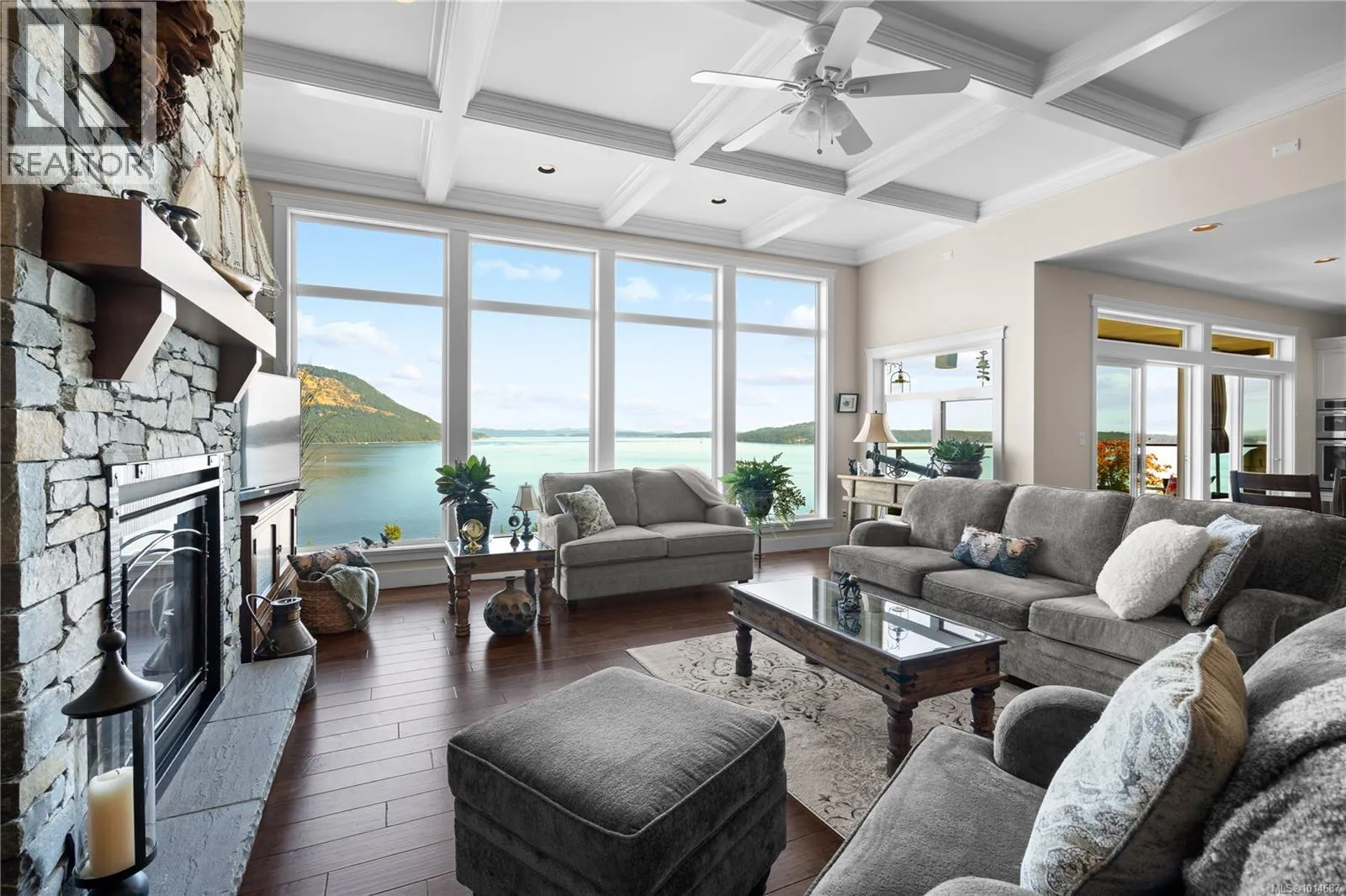 Welcome to 412 Seaview Place, a custom-built executive home with breathtaking views of Salt Spring Island, Satellite Channel, and Mount Baker. Located in the gated 55+ community of Arbutus Ridge, enjoy resort-style living with a golf course, pool, gym, tennis, RV parking, 24/7 security, and vibrant social clubs, all minutes from essential amenities. Built in 2014, this main-level living home features a gourmet kitchen with Dacor gas stove, walk-in pantry, and gas BBQ hookup. Interior highlights include engineered hardwood, coffered ceilings, E3 Low-E windows, surround sound, and a gas fireplace. The primary suite offers a spa-like ensuite, walk-in closet, and in-floor heat. A private office, guest bath, laundry, and double garage complete the main level. Downstairs includes two bedrooms, full bath, rec room with fireplace, storage, and a versatile bonus space, plus an unfinished third level ready for your ideas. Discover refined West Coast living at its finest. (id:27476)