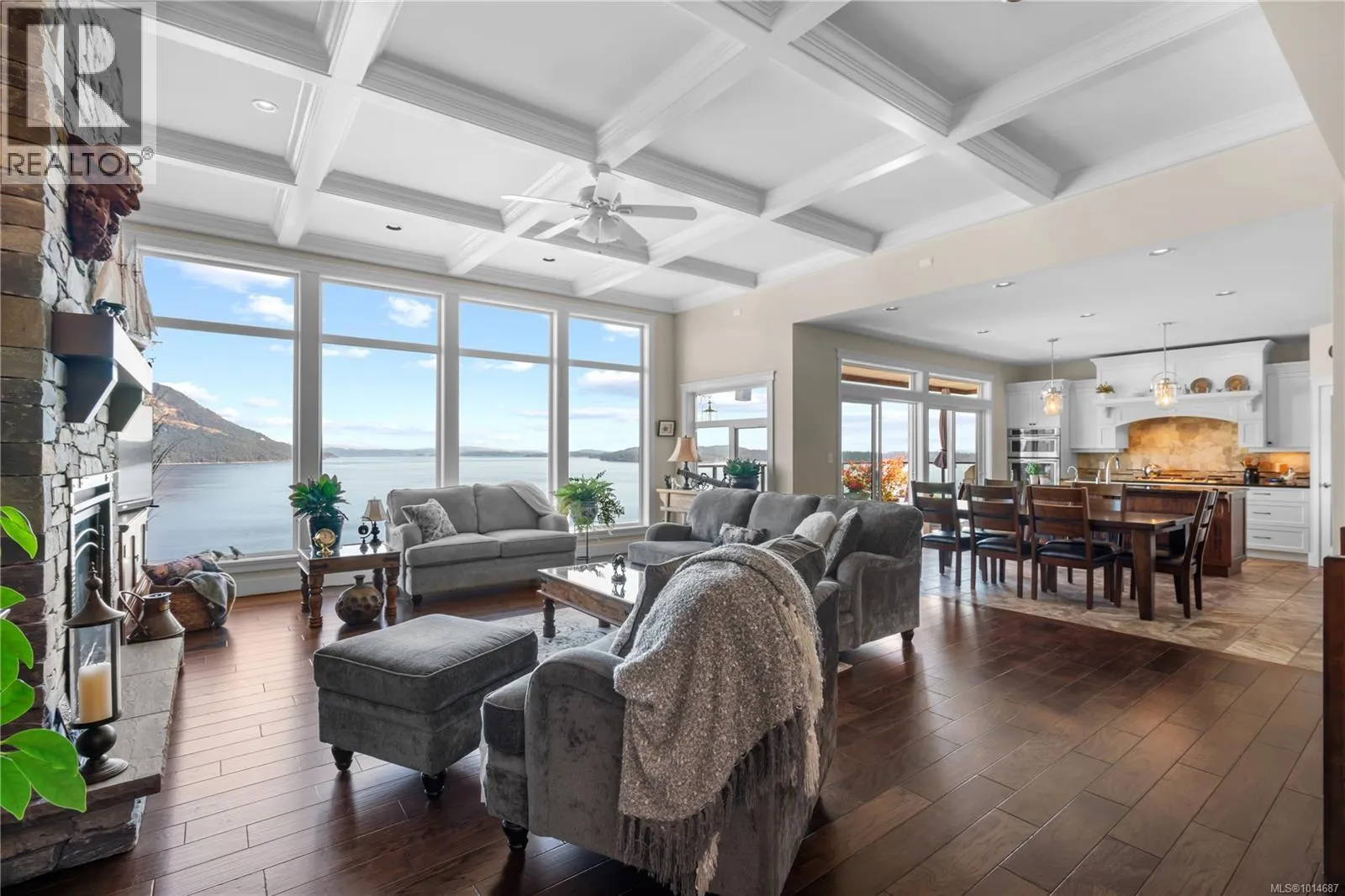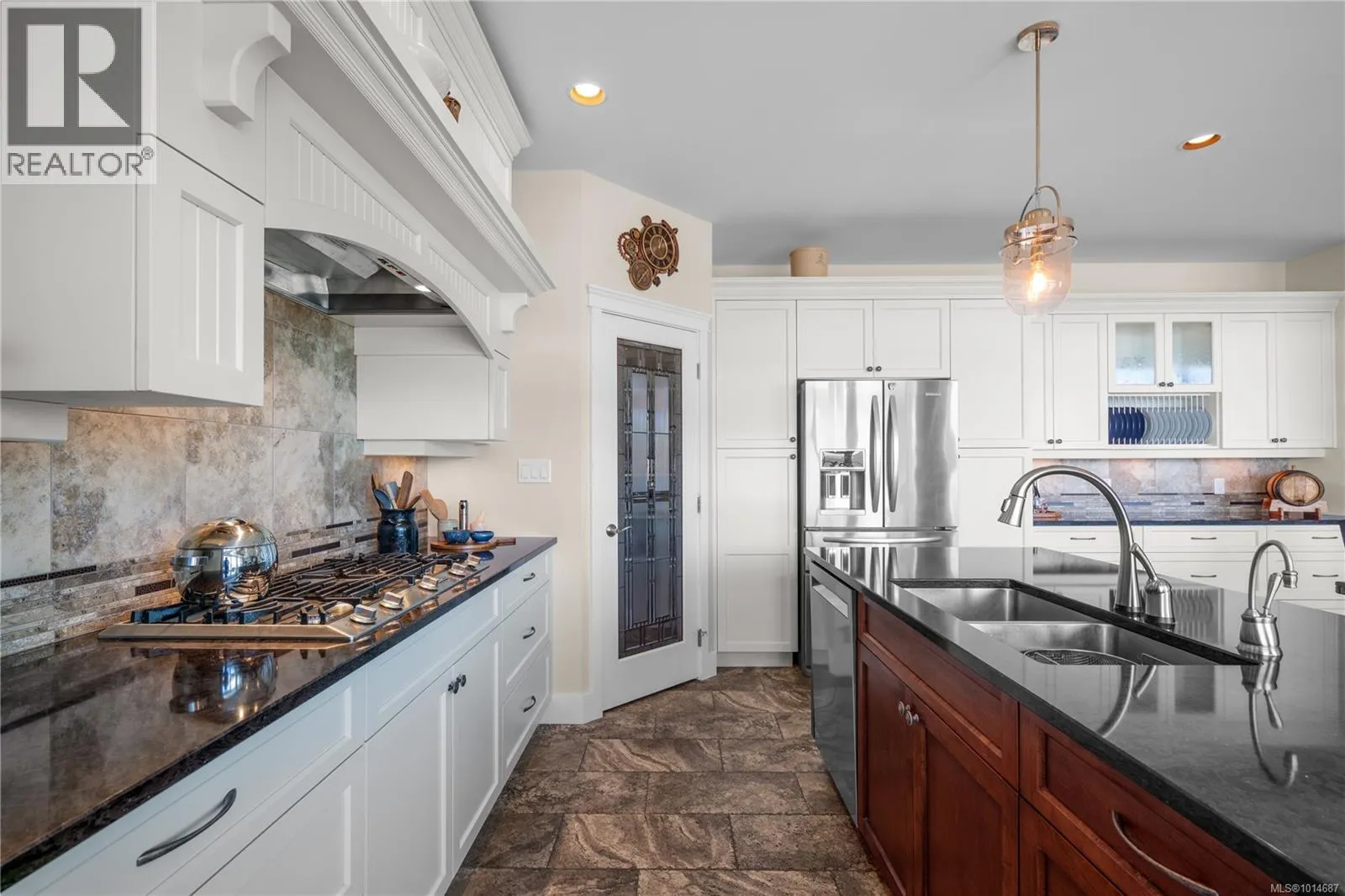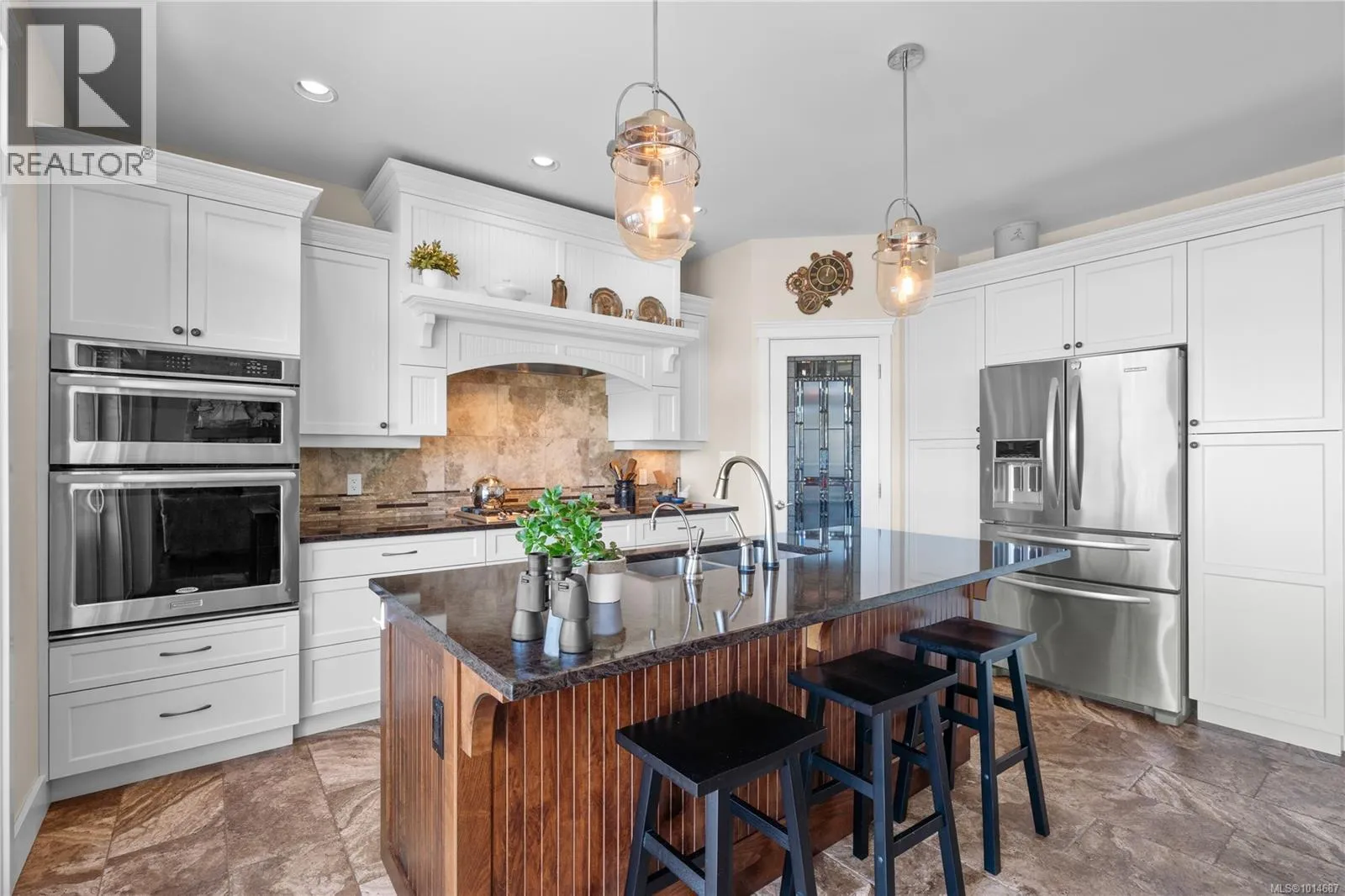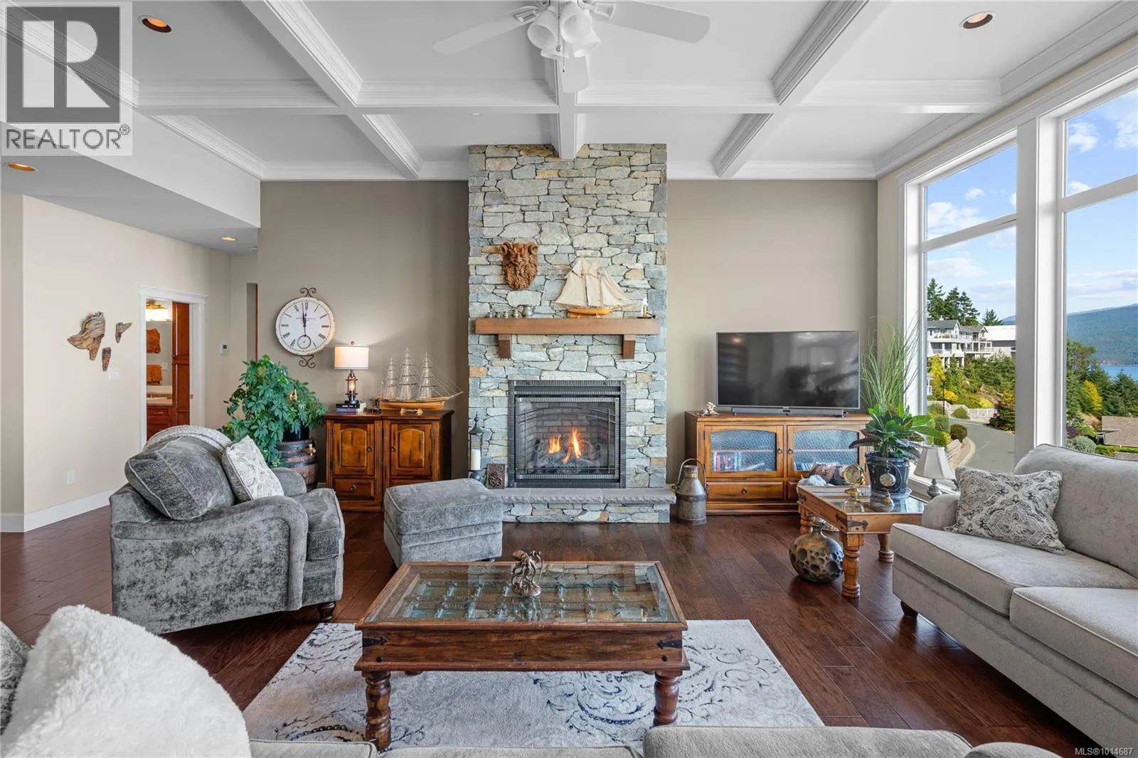Welcome to 412 Seaview Place, a custom-built executive home with breathtaking views of Salt Spring Island, Satellite Channel, and Mount Baker. Located in the gated 55+ community of Arbutus Ridge, enjoy resort-style living with a golf course, pool, gym, tennis, RV parking, 24/7 security, and vibrant social clubs, all minutes from essential amenities. Built in 2014, this main-level living home features a gourmet kitchen with Dacor gas stove, walk-in pantry, and gas BBQ hookup. Interior highlights include engineered hardwood, coffered ceilings, E3 Low-E windows, surround sound, and a gas fireplace. The primary suite offers a spa-like ensuite, walk-in closet, and in-floor heat. A private office, guest bath, laundry, and double garage complete the main level. Downstairs includes two bedrooms, full bath, rec room with fireplace, storage, and a versatile bonus space, plus an unfinished third level ready for your ideas. Discover refined West Coast living at its finest. (id:27476)