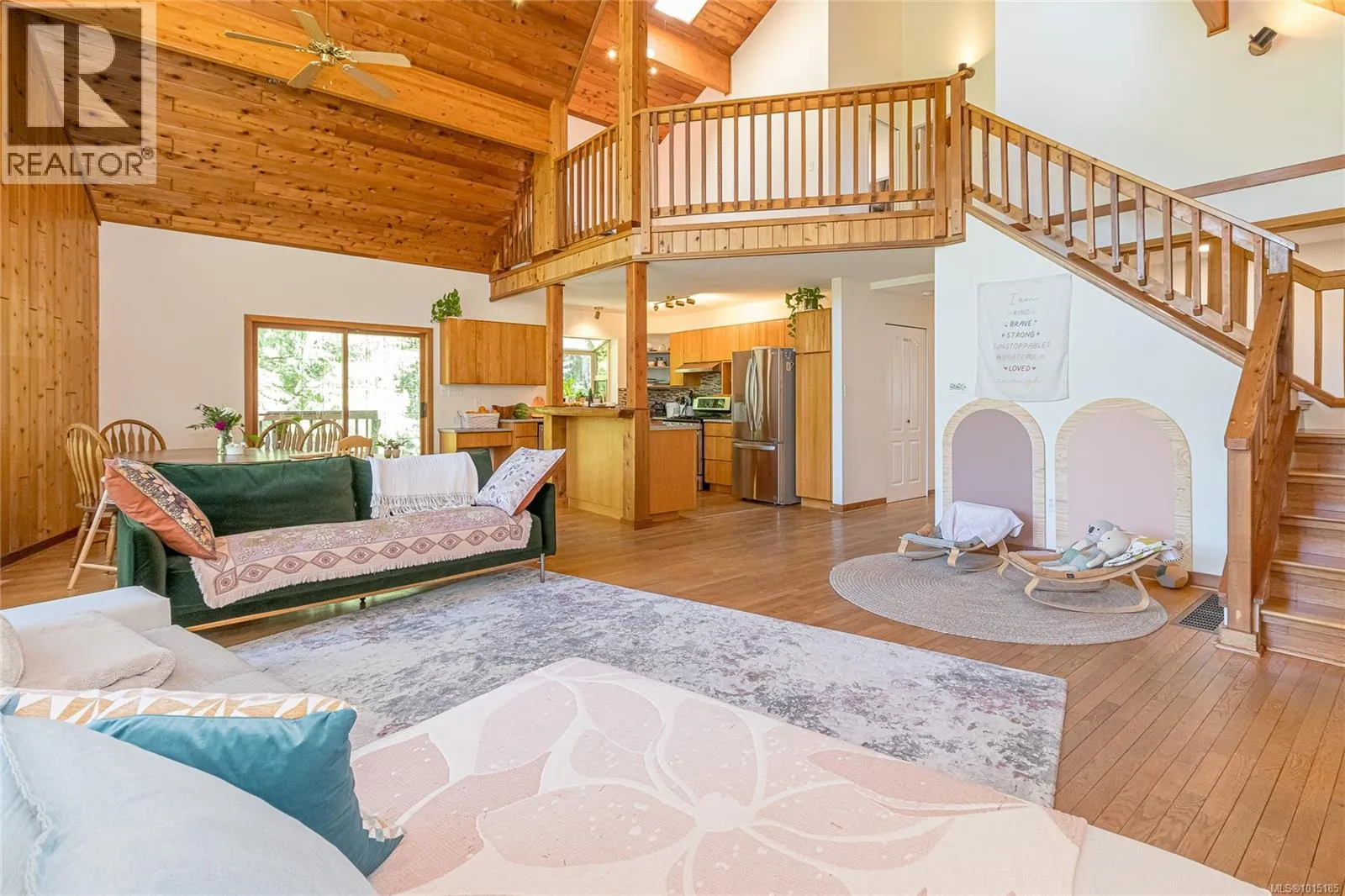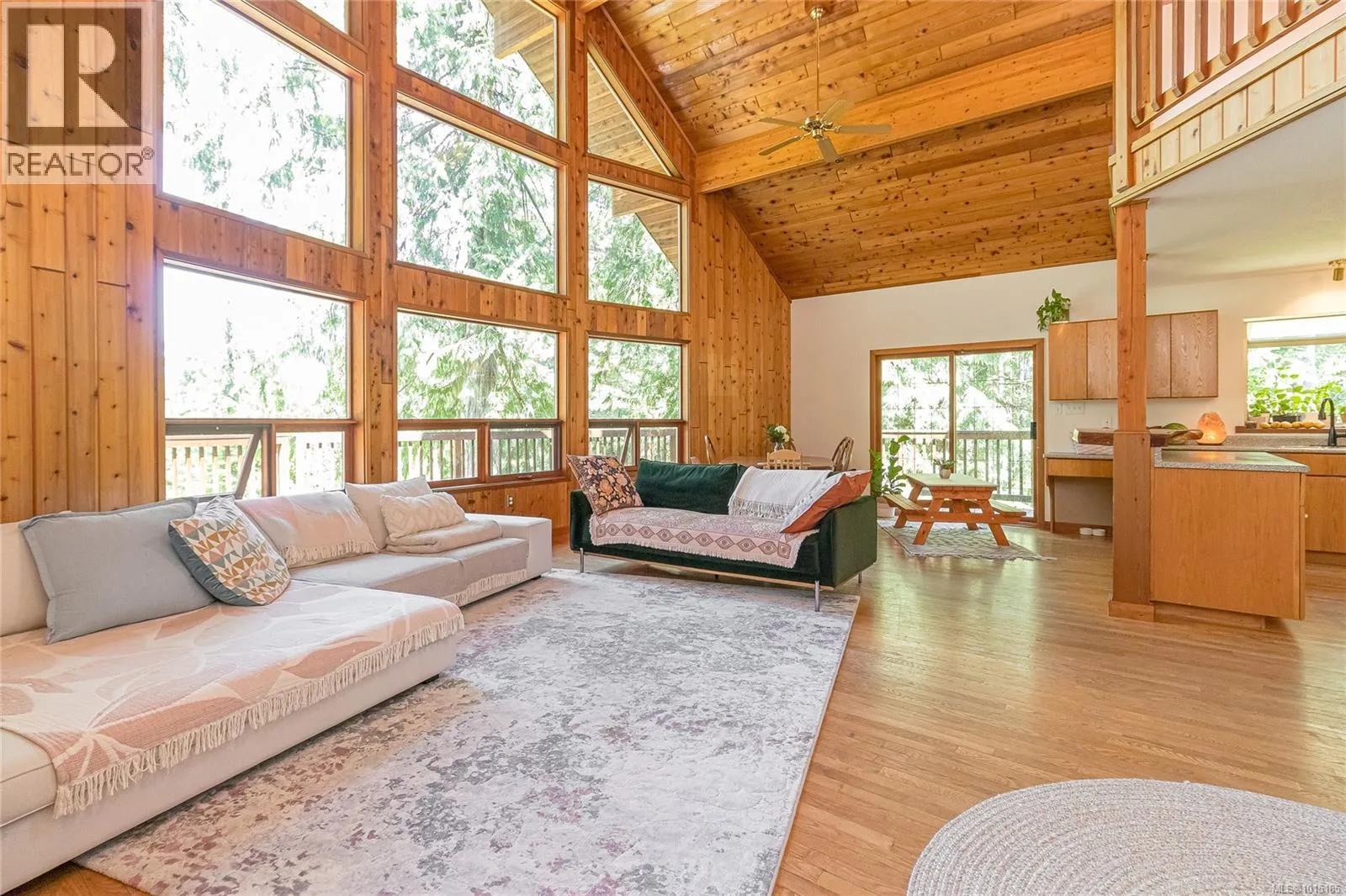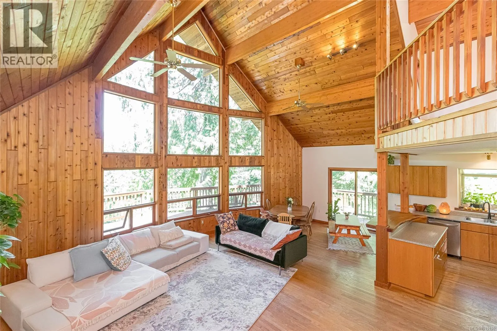 Tucked away on 10.35 private acres, this West Coast-style retreat offers unmatched seclusion and a connection to nature. A tranquil pond and seasonal creek anchor the property, creating a peaceful setting just steps from the Trans Canada Trailâperfect for hiking, biking, or riding. The main home features soaring 22â ceilings, expansive windows, and a bright, open layout with seamless flow between kitchen, dining, and living spaces warmed by a woodstove. Two bedrooms and a full bath with laundry complete the main level, while upstairs offers a loft and a serene primary suite with 5-piece ensuite. The walk-out lower level adds a family room, bathroom, storage, wet bar with second-kitchen potential, and access to a covered patio and hot tub. Outdoor living shines with over 700 sq/ft of decking overlooking the pond. For hobbies and projects, the property includes an attached garage, a detached garage with two lifts, and a spacious Quonset hut. A charming cabin provides flexible use as a guest space or creative studio. A rare combination of privacy, natural beauty, and versatile shop space in a highly desirable location. (id:27476)