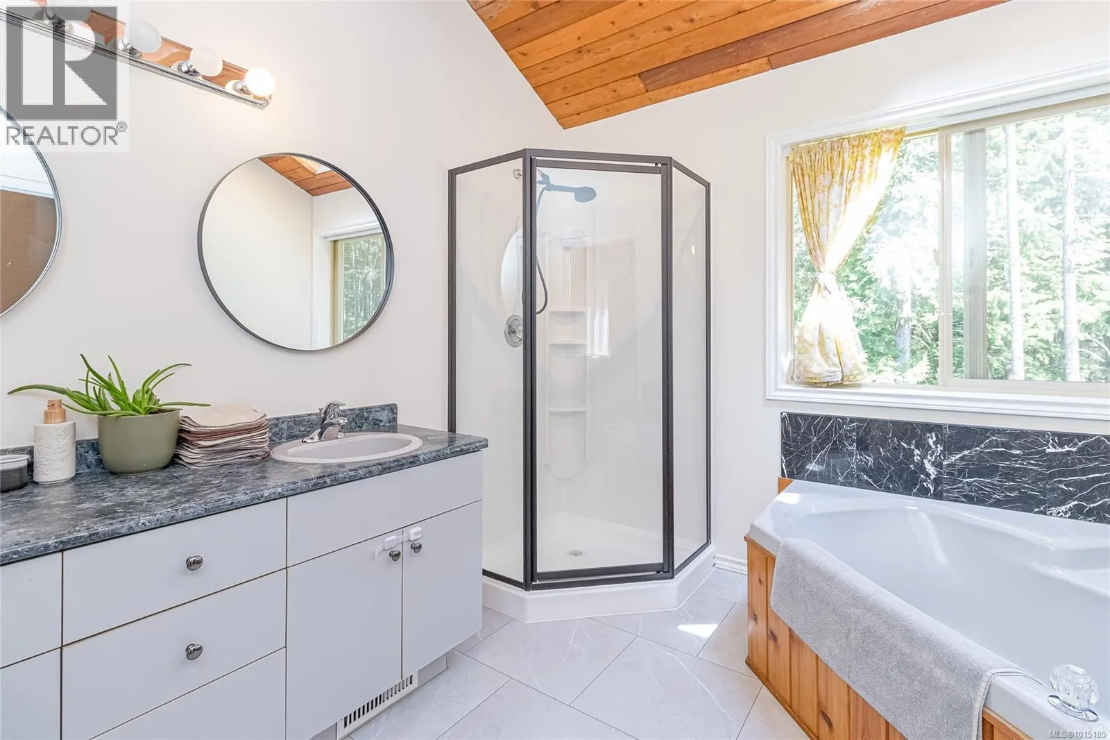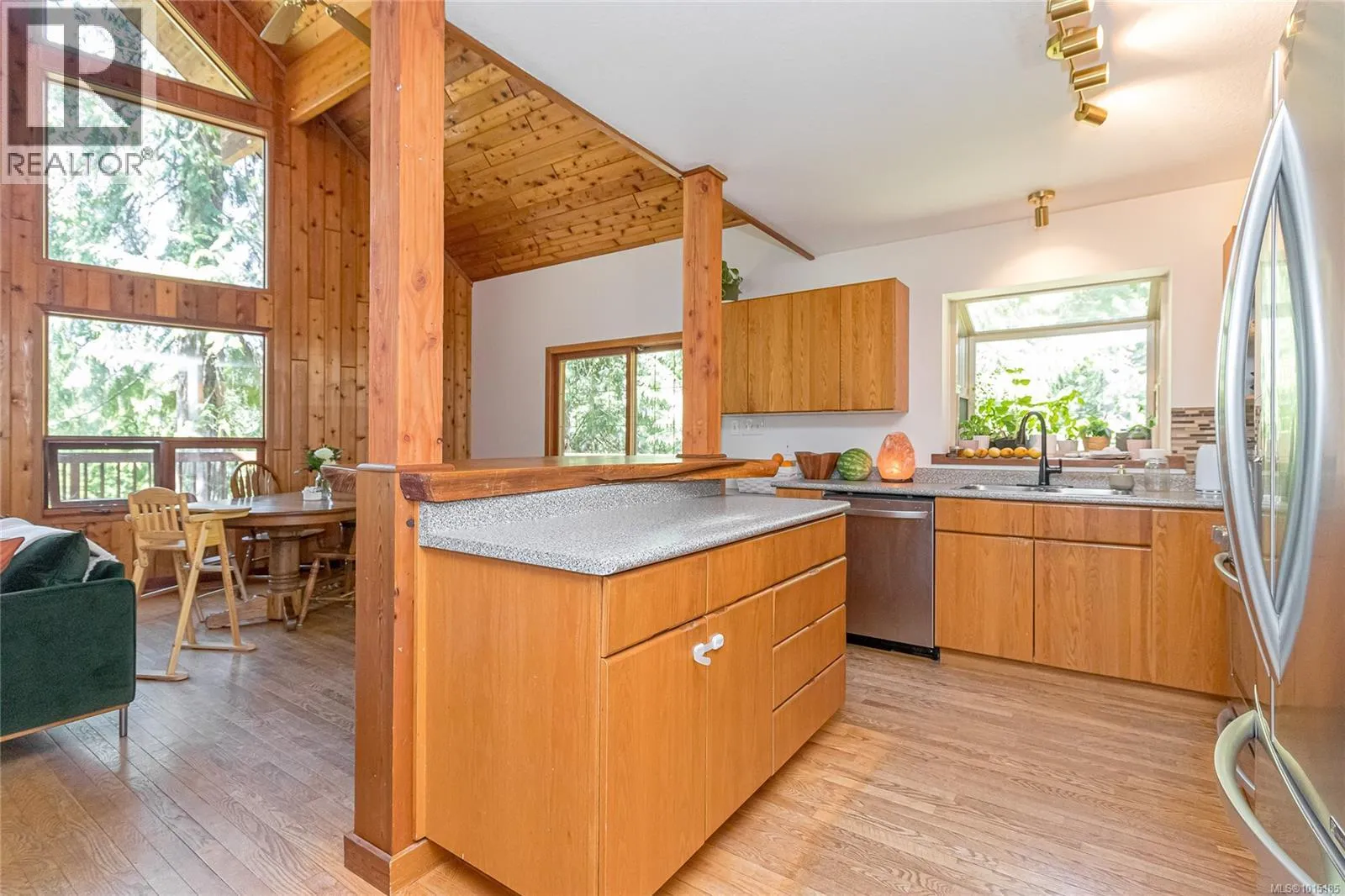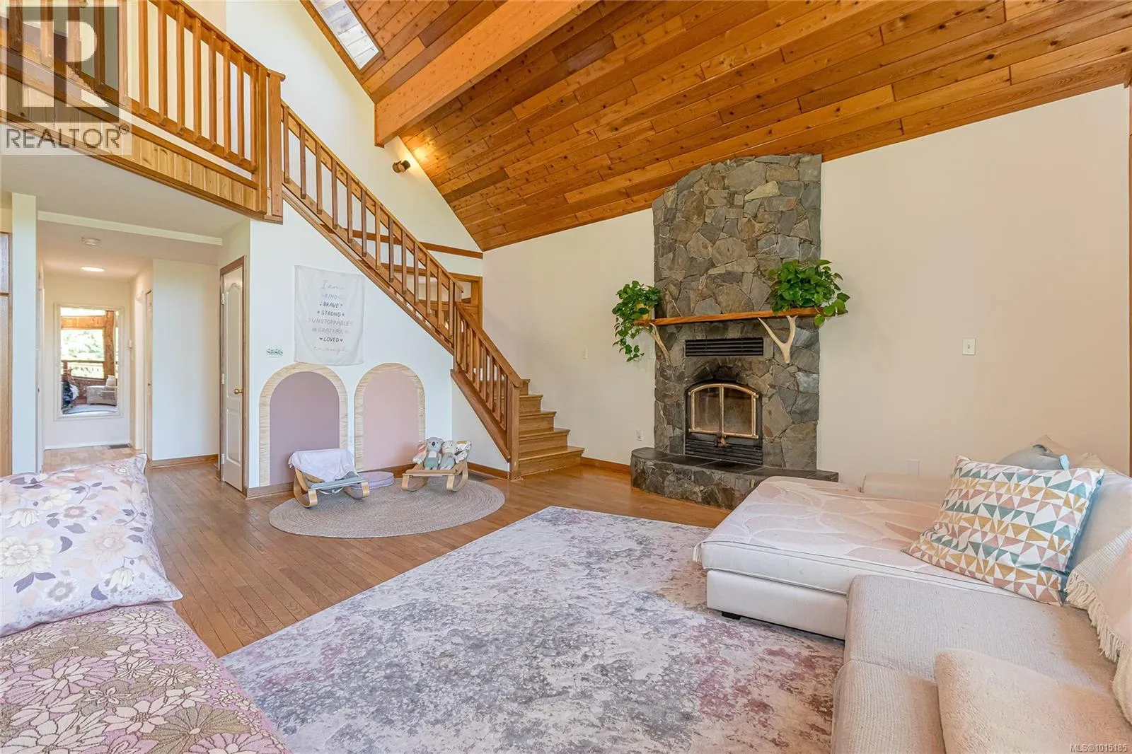 Tucked away on 10.35 private acres, this West Coast-style retreat offers unmatched seclusion and a connection to nature. A tranquil pond and seasonal creek anchor the property, creating a peaceful setting just steps from the Trans Canada Trailâperfect for hiking, biking, or riding. The main home features soaring 22â ceilings, expansive windows, and a bright, open layout with seamless flow between kitchen, dining, and living spaces warmed by a woodstove. Two bedrooms and a full bath with laundry complete the main level, while upstairs offers a loft and a serene primary suite with 5-piece ensuite. The walk-out lower level adds a family room, bathroom, storage, wet bar with second-kitchen potential, and access to a covered patio and hot tub. Outdoor living shines with over 700 sq/ft of decking overlooking the pond. For hobbies and projects, the property includes an attached garage, a detached garage with two lifts, and a spacious Quonset hut. A charming cabin provides flexible use as a guest space or creative studio. A rare combination of privacy, natural beauty, and versatile shop space in a highly desirable location. (id:27476)