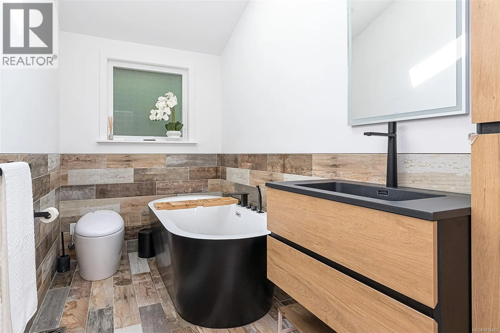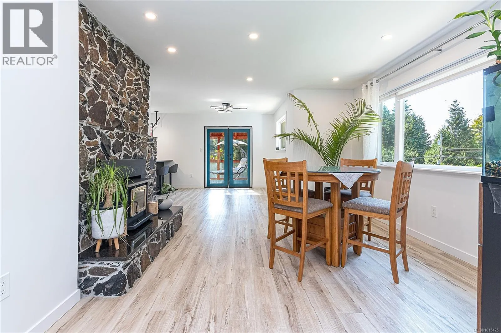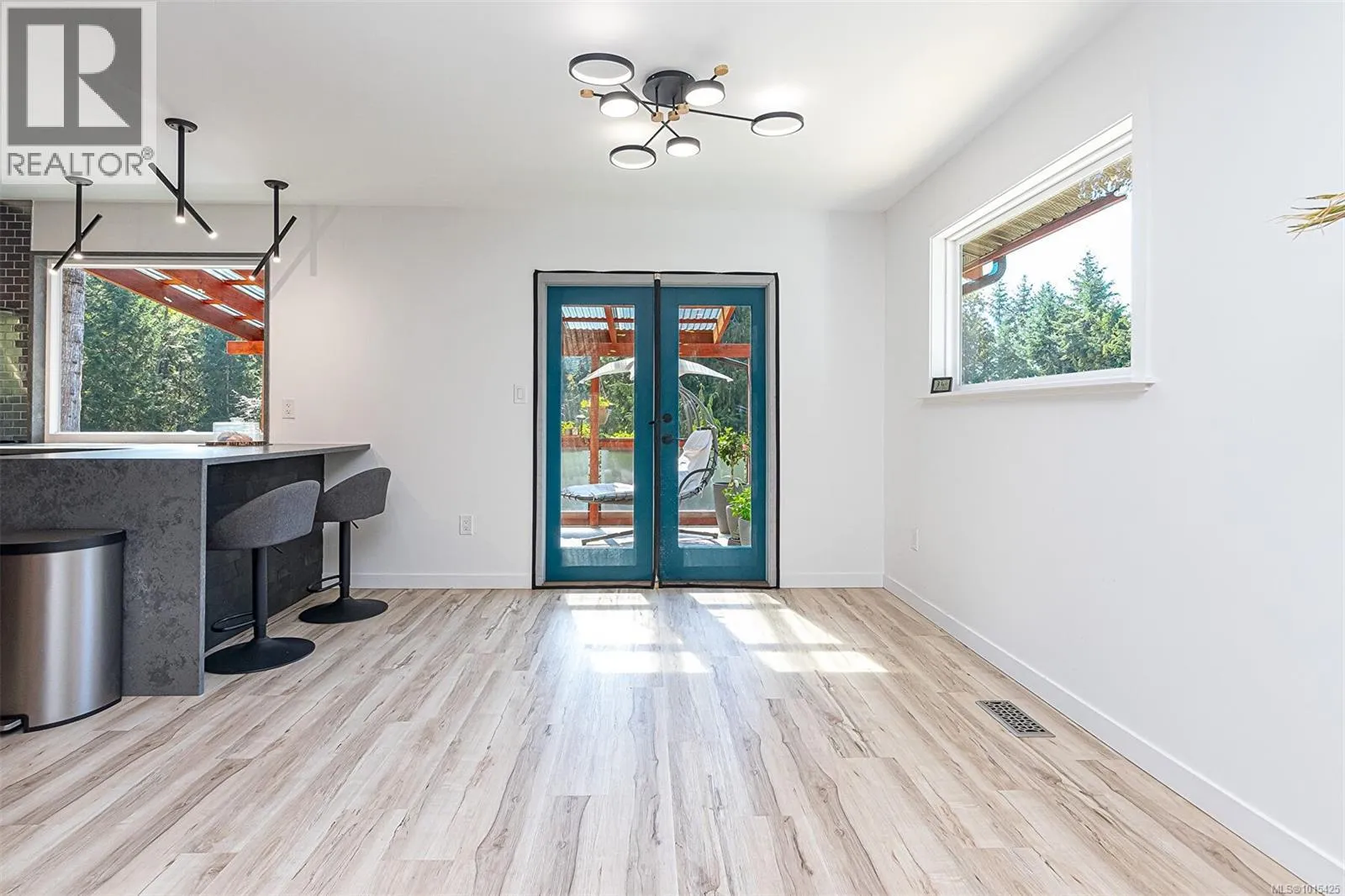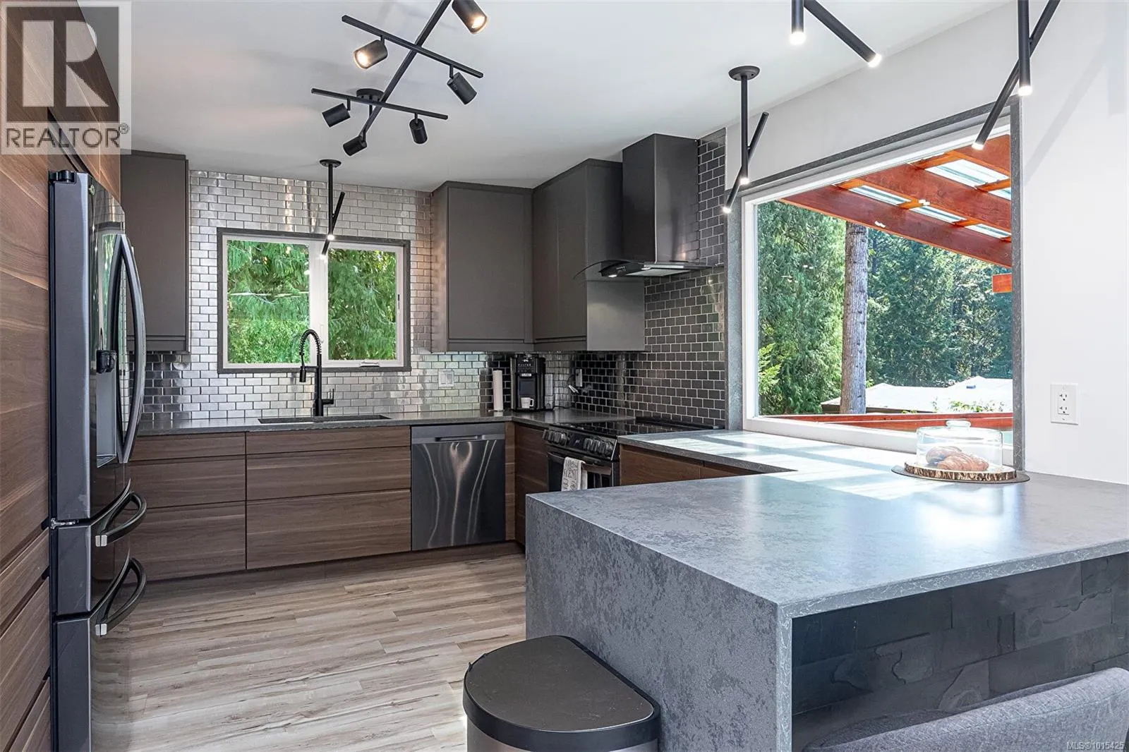 Welcome to 1034 Cowerd Rd- If you are searching for a small hobby farm on a quiet acreage with a fully renovated home - IT IS HERE ! This home sits on a .77 acre flat, corner lot that is private & peaceful yet so close to all amenities. Home has been completely renovated over the past 4 years to a high standard with energy efficient heating, cooling & hot water tank. New heat pump, new electrical panel and all new wiring. New thermal windows in every room and new flooring throughout the main and lower level. Gutters, fascia & downspouts replaced in 2025. Brand new kitchen with quartz countertops and high end appliances and fixtures. Both bathrooms have been remodeled in 2025.Upstairs bathroom has a soaker tub & skylight. Central vacuum system. The main level has 3 bedrooms, open plan kitchen, dining & living areas with wood stove and beautiful stone fireplace. French doors from the dining room lead to a large, low maintenance covered deck with southern & western exposure. Lower level has a large family room with wood stove and new mantel. There is also a large bedroom, flex office space, new full bath, storage space & laundry room and mud room. Suite potential on lower level. A portion of the large rear property is currently being used for a small hobby farm but this space could easily be converted to backyard green space, if desired. Fruit trees, raised garden beds and green house all with southern and western exposure. There is also a large workshop, barn and chicken coop and water shed, all with power. Two wells @ 12GPM. Fully fenced - new corrugated metal and cedar fencing at the front of the house made from the timber in the back yard - perfect for kids and pets. Lots of parking for boats or RV. Close to recreation, waterways, vineyards & amenities in Mill Bay or Duncan. Easy commute to Victoria and Langford. Lots of choice for schools at all levels in the public and private school system. Come View today and enjoy the rural lifestyle! (id:27476)