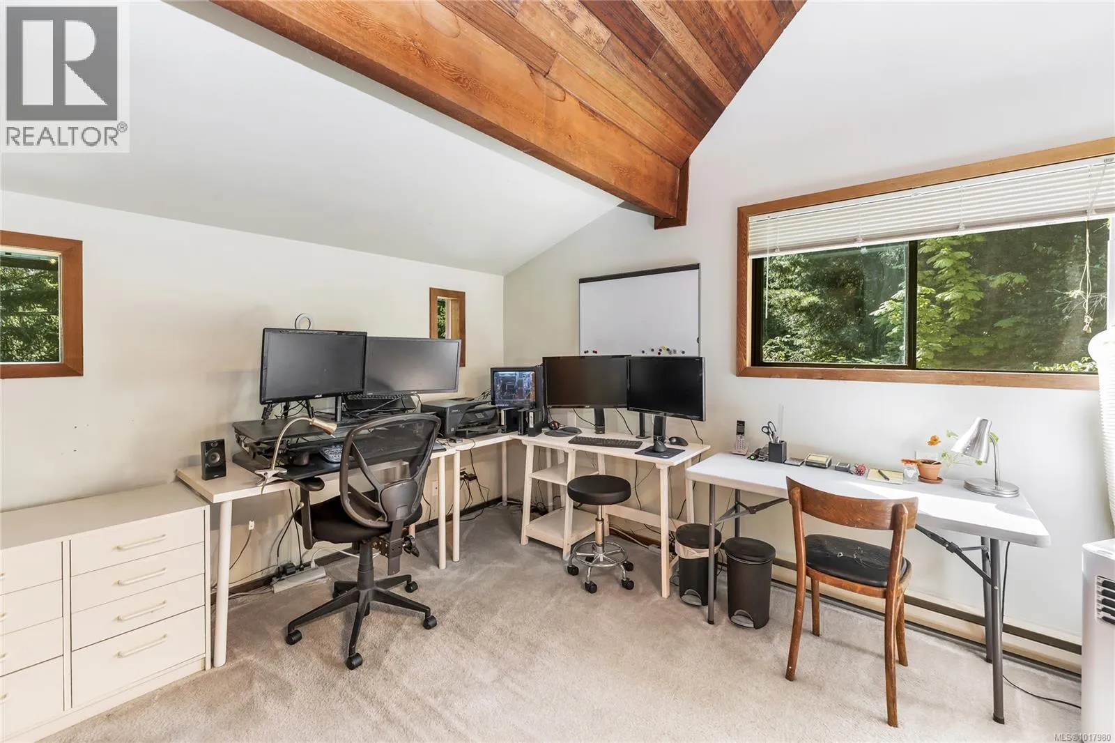 This one-of-a-kind 10.82-acre property in the Mountain Road area of the Cowichan Valley offers complete privacy within a natural setting, just 15 minutes south of Duncan. A gated driveway curves through mature fir and cedar trees to the chalet-style house. Outbuildings include a 35â x 32â concrete-floor shop, garage and firewood shelter â as well as a fenced vegetable garden, fruit trees, landscaped flower beds and forest trails. The 2401 sq.ft. home welcomes with a tiled entrance leading to an open-concept kitchen and a living area with floor-to-ceiling windows and access to a full wrap-around deck. The top floor is dedicated to the master bedroom with an ensuite. Downstairs offers extra living space and a cozy woodstove, just steps away from an outdoor hot tub. A uniquely peaceful, charming, versatile property waiting to be your Vancouver Island dream home! (id:27476)