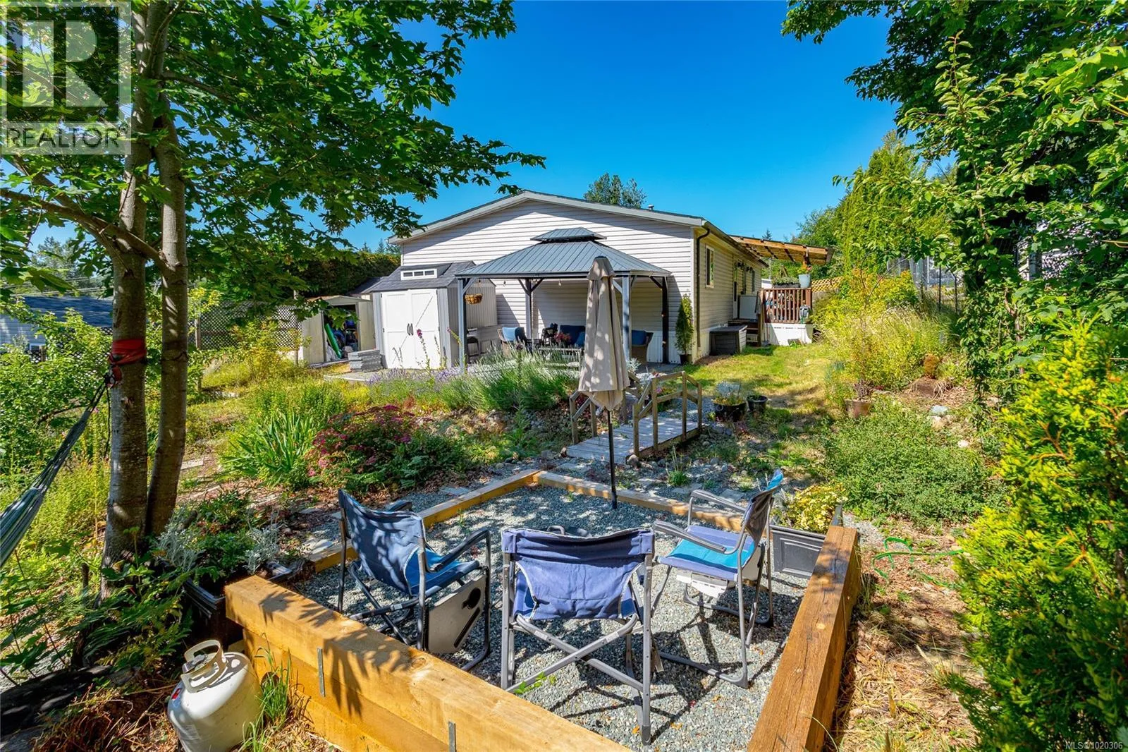 Welcome to this beautifully maintained 2003 doublewide home, where comfort and convenience meet peaceful country living. Built with solid 2x6 construction and CSA-certified electrical, it features a new heat pump and furnace with A/C to keep you cozy year-round. The bright, open layout creates a welcoming flow between the spacious kitchen, dining area with custom cabinetry, and airy living roomâperfect for family gatherings. The private primary suite includes a walk-in closet and relaxing 4-piece ensuite. Step outside to enjoy lovely gardens, a private patio, and three handy sheds for all your storage needs. Nestled in a quiet cul-de-sac within a well-kept park, this home offers tranquility just minutes from shops, parks, and trails. Only a 3-minute drive to one of Shawnigan Lakes most popular beaches and boat launch, itâs an ideal spot for summer fun. Move-in ready and waiting for your family to make it home! (id:27476)