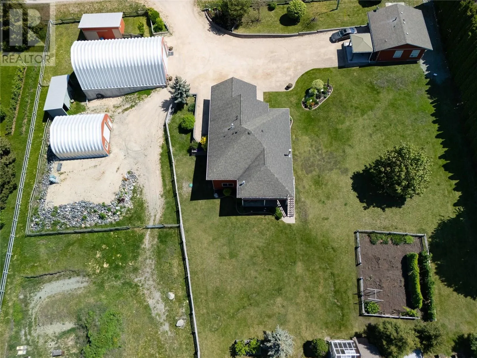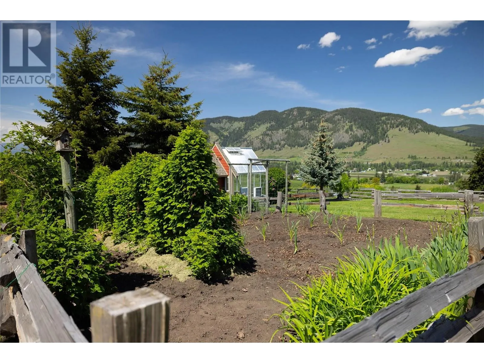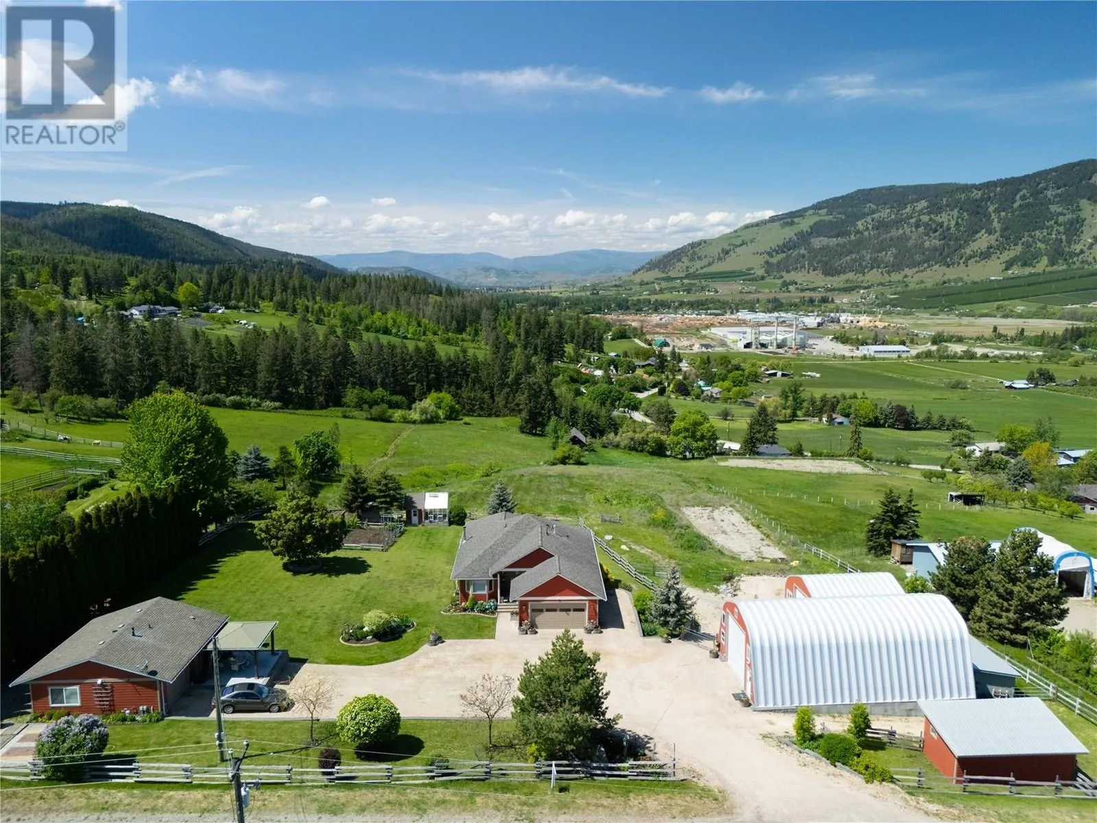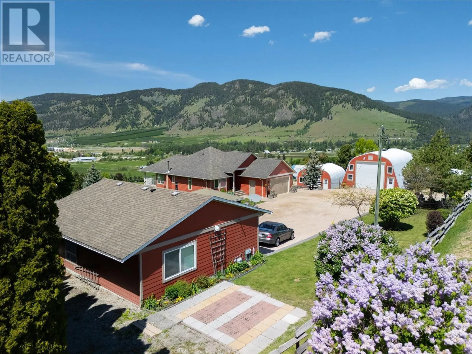 This exceptional 3(4)bedroom home offers a well-designed layout and breathtaking views of nearly 5 acres of fully fenced land. Inside, the main floor boasts a spacious primary bedroom with a luxurious 5-piece ensuite, featuring a tiled/glass shower and a soaker tub. The homeâs open-concept âgreat roomâ seamlessly integrates the kitchen, dining, and living areas, framed by expansive windows that lead to a large covered deck with spectacular valley and mountain views. Downstairs, the recreation room is warmed by a WETT-certified Yodel wood stove set in brick, creating a cozy and inviting atmosphere. walkout lower level with hot tub offers two generous bedrooms and a full bathroom. It features a 30âx52â engineered shop that is fully powered, insulated, heated, and equipped with 14â high doors, along with a 26âx28â secondary shop for extra storage or workspace. Beautifully designed secondary residence with a fireplace and a patio/gazeboâideal for guests or for family. Additional amenities include an RV pad with a sani-dump and a greenhouse/garden shed caters to gardening enthusiasts, while the stable includes a tack room and hay storage for equestrian needs. Lavington provides a peaceful rural lifestyle with excellent local amenities, including an elementary school, a park with a pool, a gas bar, and ice rink. Its proximity to Vernon ensures both tranquility and accessibility. (id:27476)