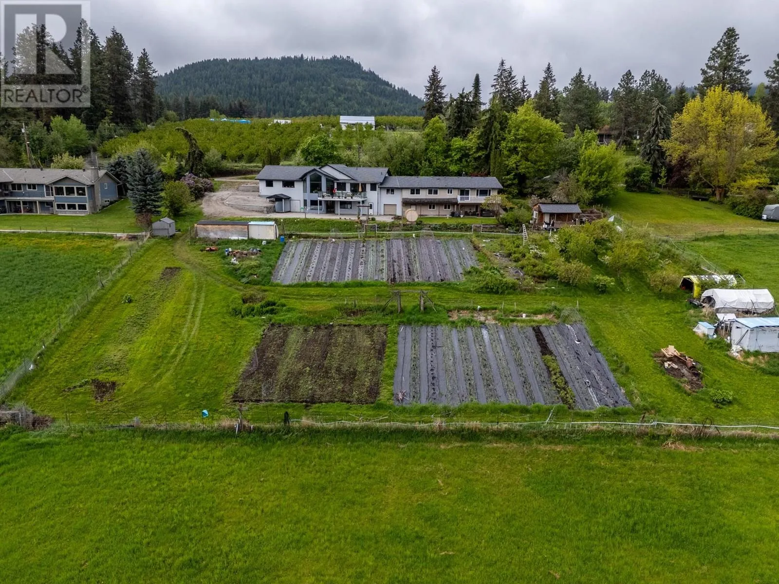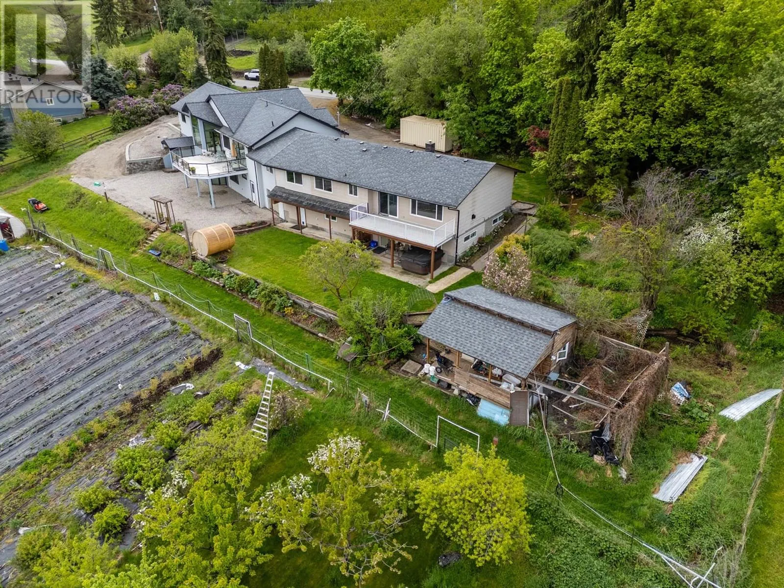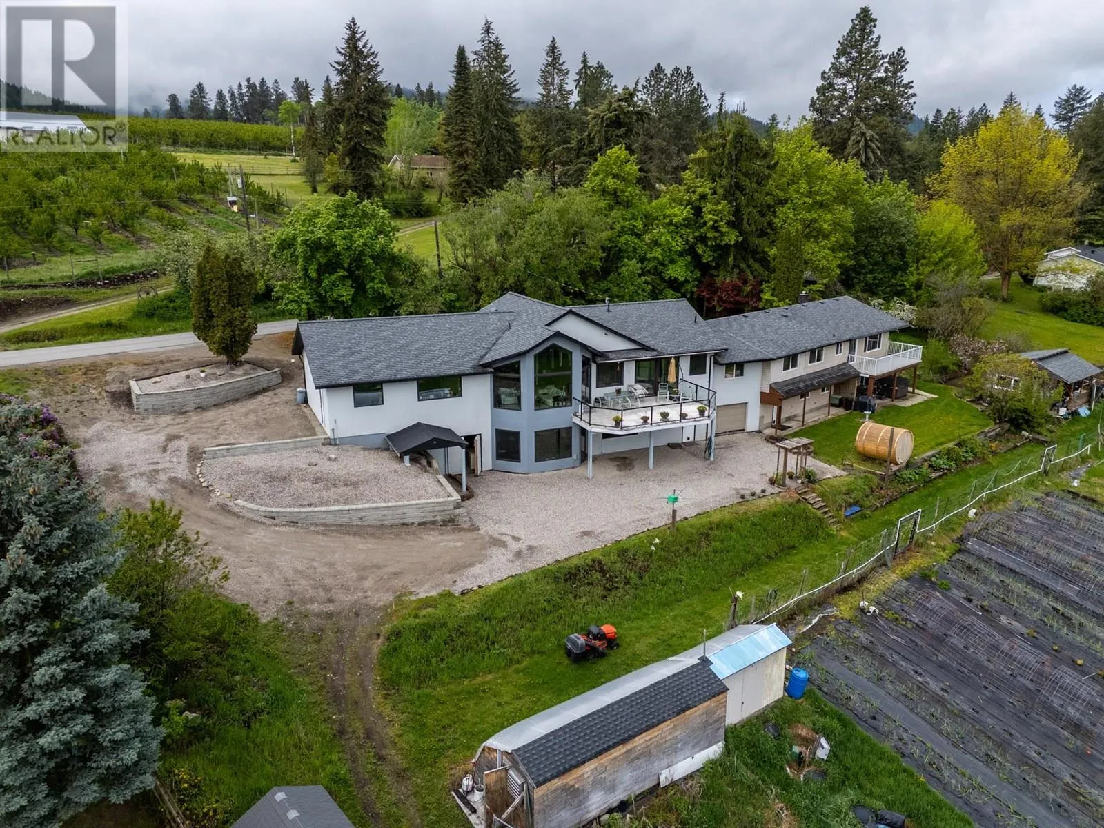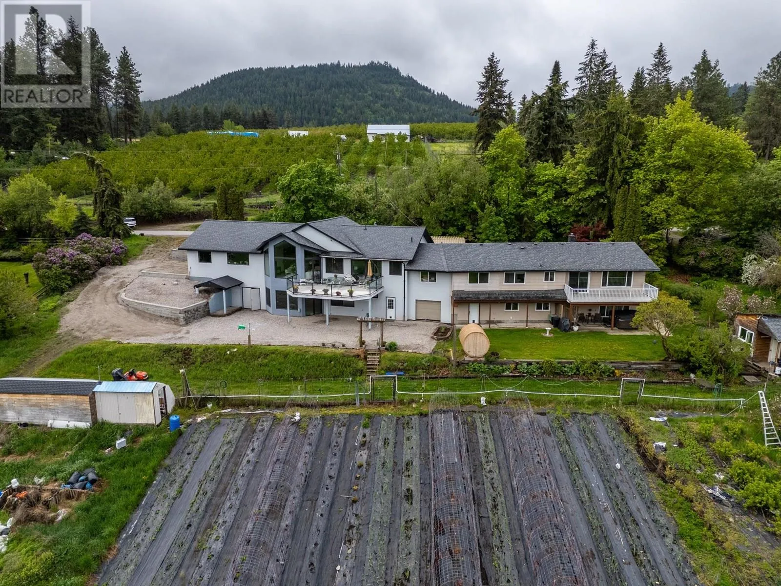 Beautiful 5.13 acre hobby farm in the community of Coldstream, just outside of Vernon, BC with magnificent valley views! Ideal for multigenerational living or income, this 2015 duplex blends luxury and function. On the right side of the duplex you have 2881 sq.ft. with 2 beds + den, and 4 baths. This contains the finishes you'd expect, such as heated floors up/down, travertine tiles, European windows, etc. The basement of this side of the duplex is even designed with a full kitchen/bar for an in-law suite. Upstairs, there is a spacious garage, an open living/kitchen space, and a large balcony to oversee the stunning valley views. The master bed also contains a full walk-in closet and a private ensuite. On the left side of the duplex, you have a (licensed) Airbnb basement suite, which is sold turn-key for established income! This suite has 2 beds and a full bath, a separate entrance, a full kitchen, and access to a covered porch. Upstairs, there is yet another suite with 2 beds + office, 2 baths, a full kitchen, a garage, and a balcony. The left side of the duplex boasts a total sq.ft. of 2604 sq.ft. Overall, this duplex offers 5400+ sq.ft. with 7 beds + 2 den/office, and 7 baths. Between the structures, there is a full summer kitchen, great for your agricultural endeavors. There is an established greenhouse, chicken coop, sheds, ample parking for vehicles and RVs and storage spaces, and more! Must-see! Luxury, income potential, and rural charm, schedule your tour today! (id:27476)