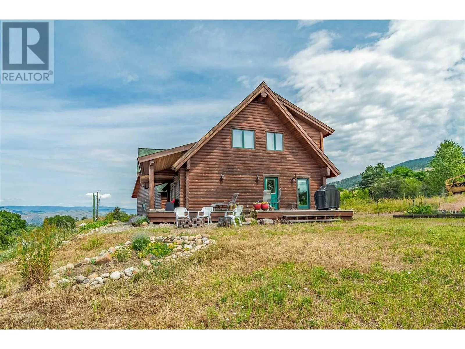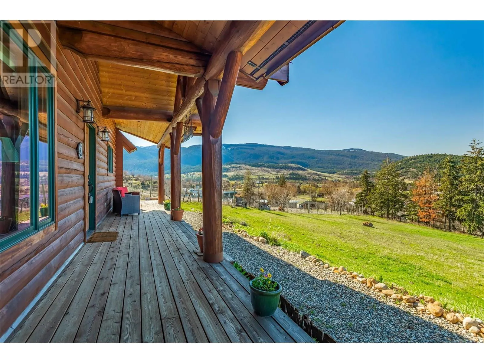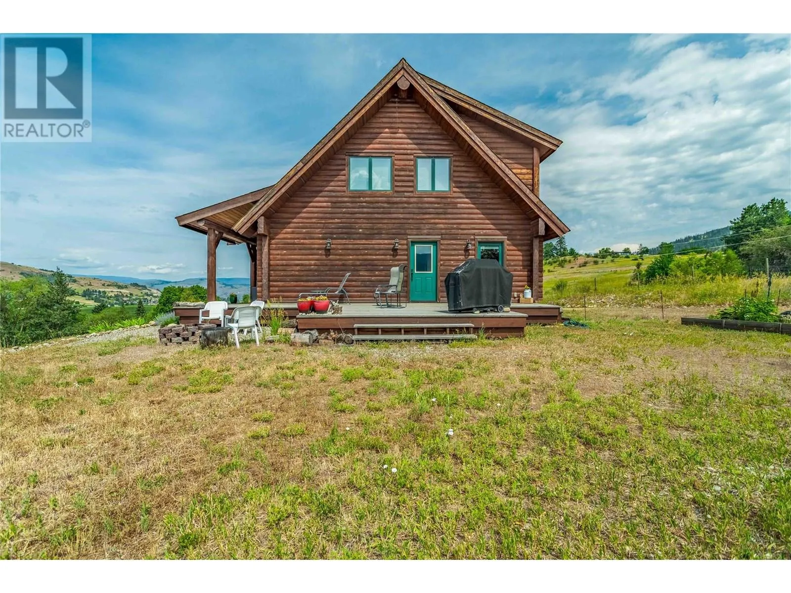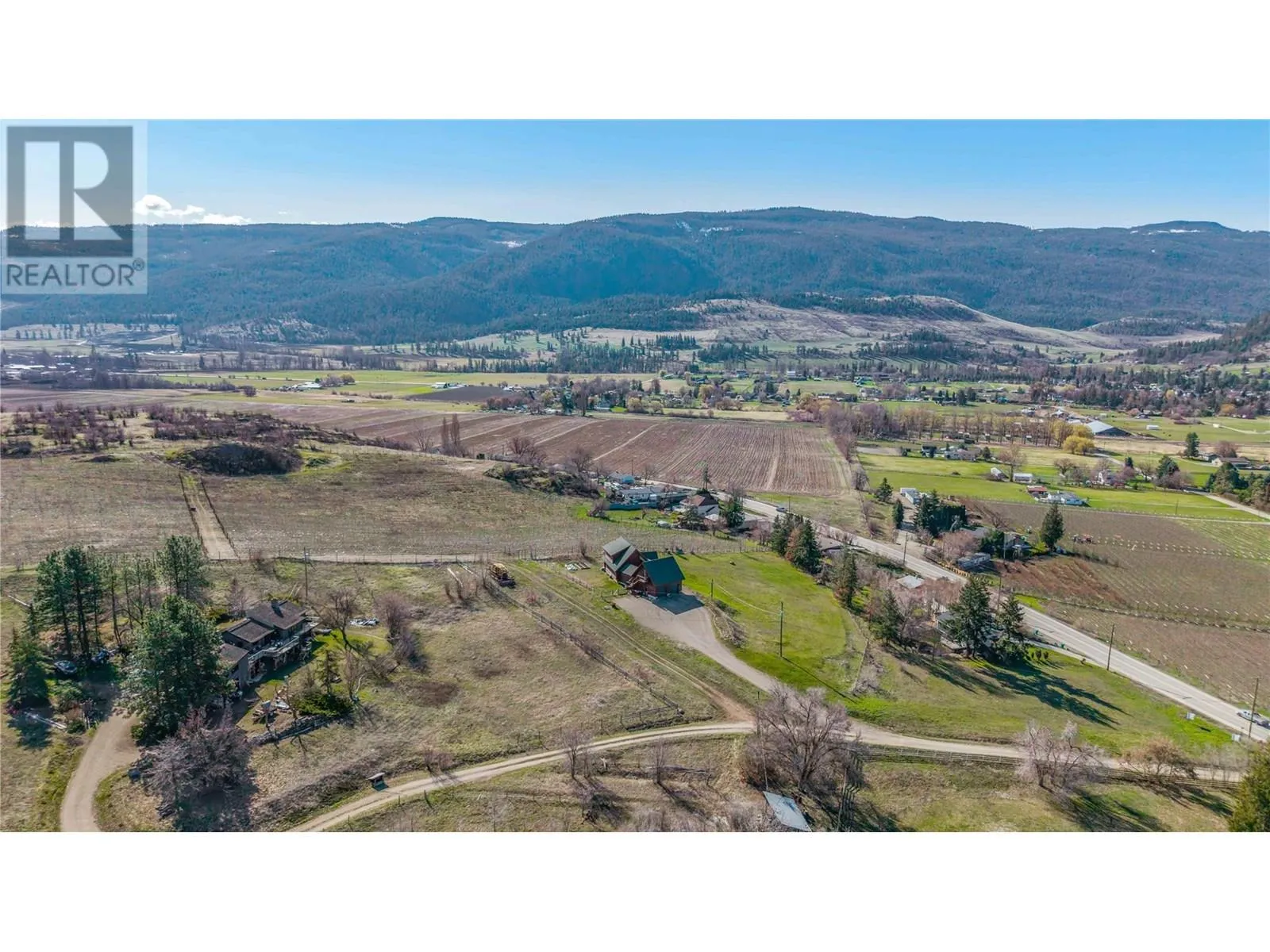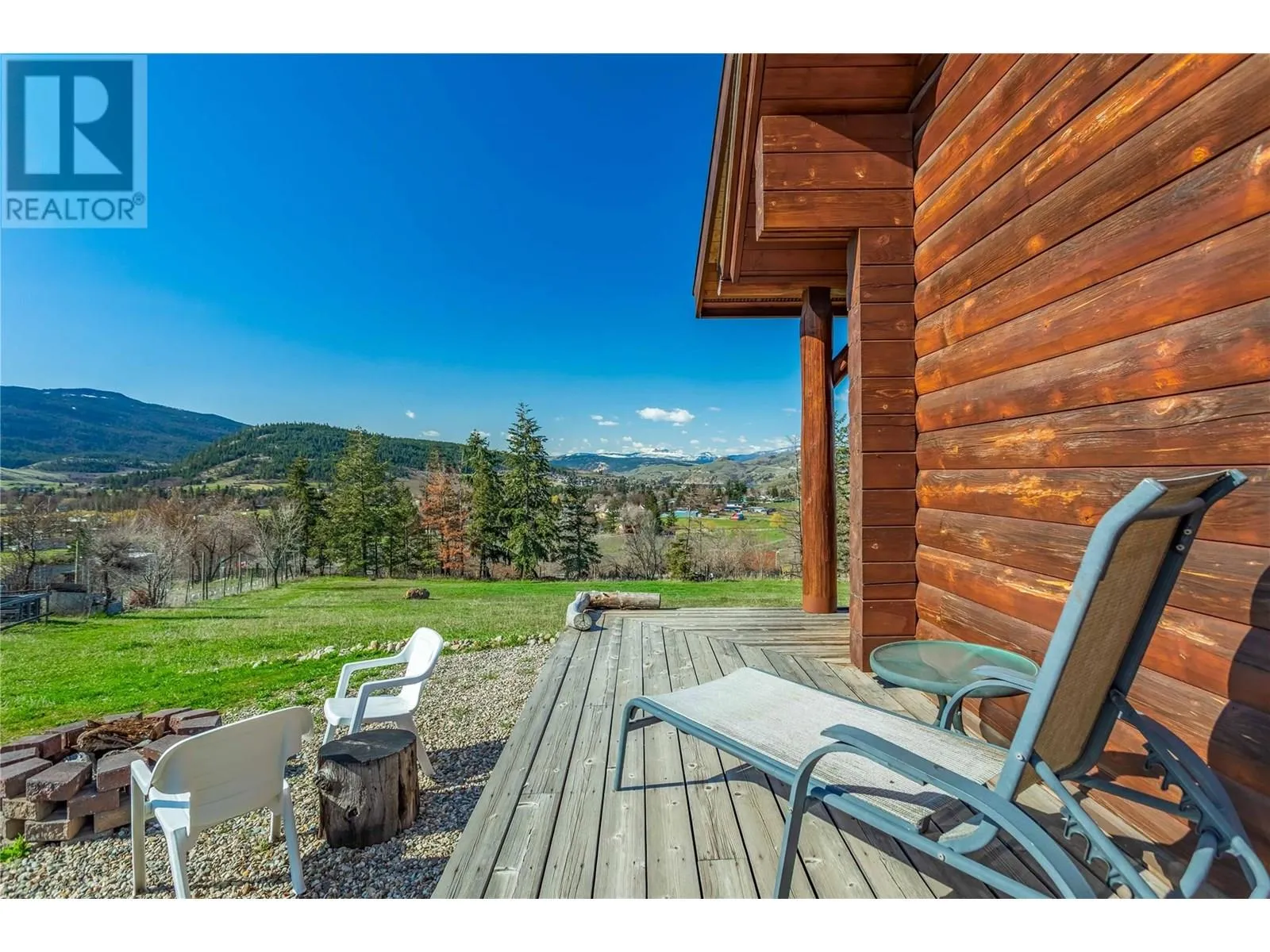 Welcome to your dream home, nestled on 2.47 acres of gently sloping pasture with breathtaking views across the Coldstream Valley. Crafted from eight-inch milled logs, this home combines timeless character along with excellent insulation, creating a warm and inviting living space. The open-concept main level features a bright and spacious living room with soaring vaulted ceilings. The dining area is ideal for hosting family and friends. The kitchen is complete with maple cabinetry, 8 ft island, under-cabinet lighting & ample storage. A large main-floor bedroom offers flexibility as a primary suite for convenient one level living or as a home office/den. A full bathroom and laundry room complete this level. Upstairs, a sunlit loft overlooks the living room below & leads to a spacious primary bedroom, a walk-thru full bathroom, and a third bedroom. The loft landing provides a cozy spot to relax with a book or enjoy the view. The unfinished basement offers endless potential to create a rec room, home gym, or additional living space, with a roughed-in bathroom ready for future expansion. A detached double garage (26â4 x 26â1) provides plenty of space for vehicles and storage and is connected to the main home via an enclosed breezeway. A private studio suite above the garage is perfect for guests, a home office, or a lucrative Airbnb rental. Take in the stunning views, with a neighboring organic vineyard adding to the charm. This property offers the perfect blend of rural tranquility and modern living, all while being just a short drive from local amenities. (id:27476)