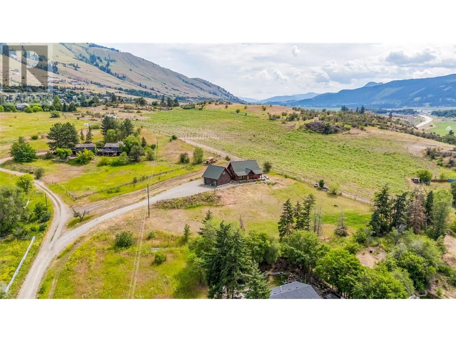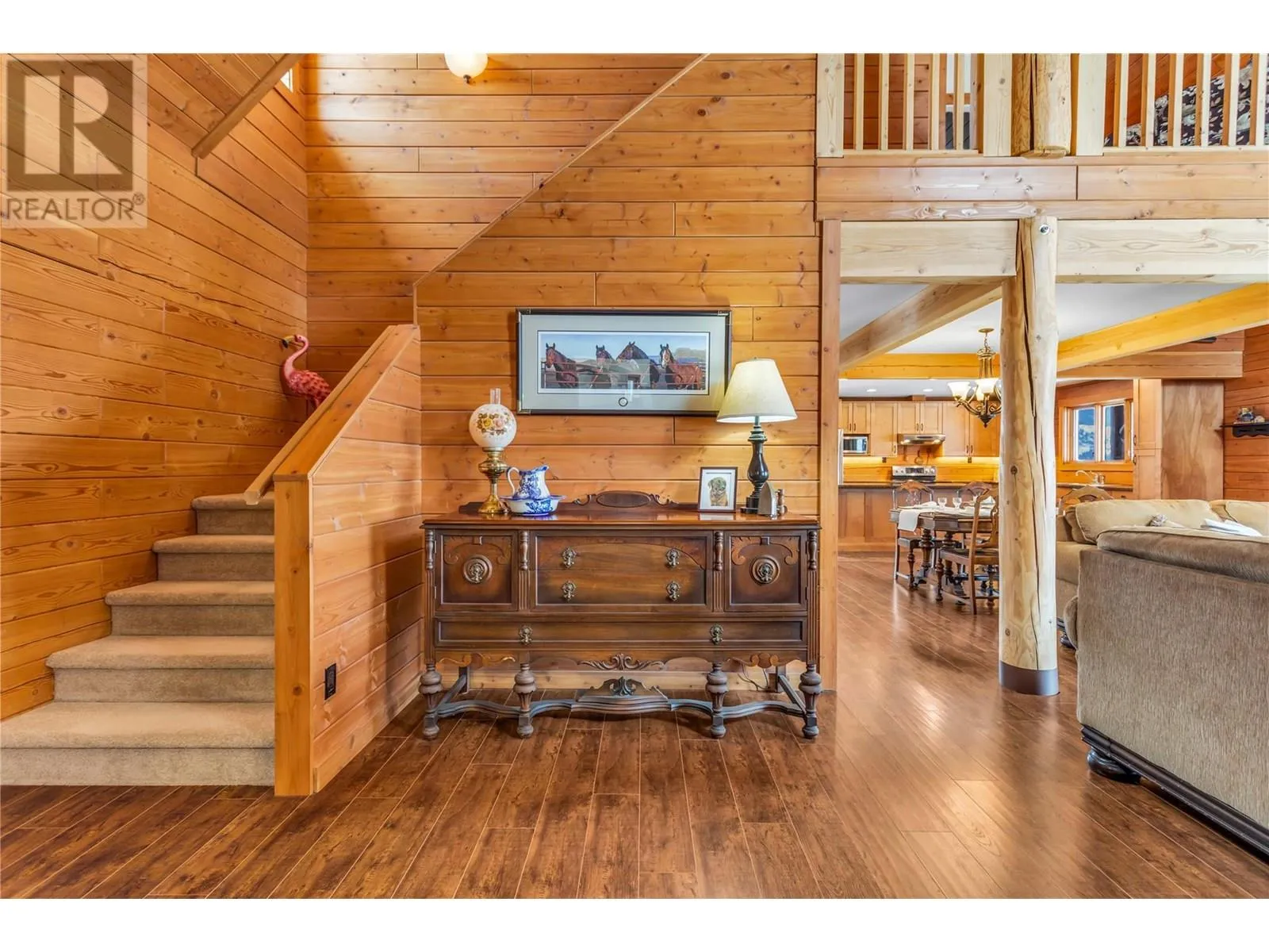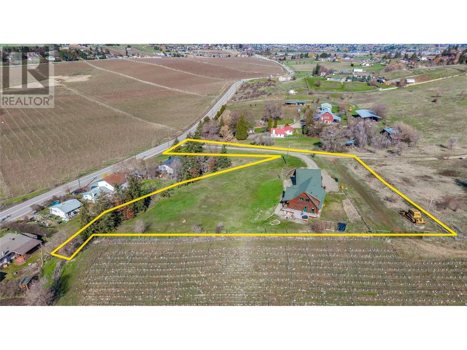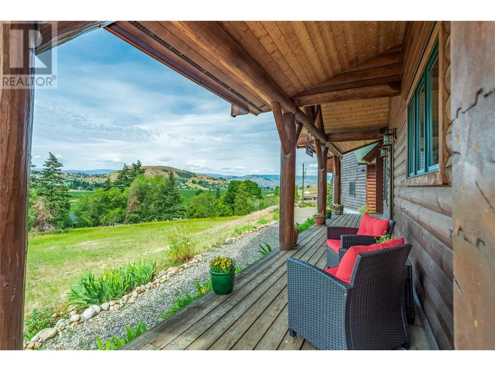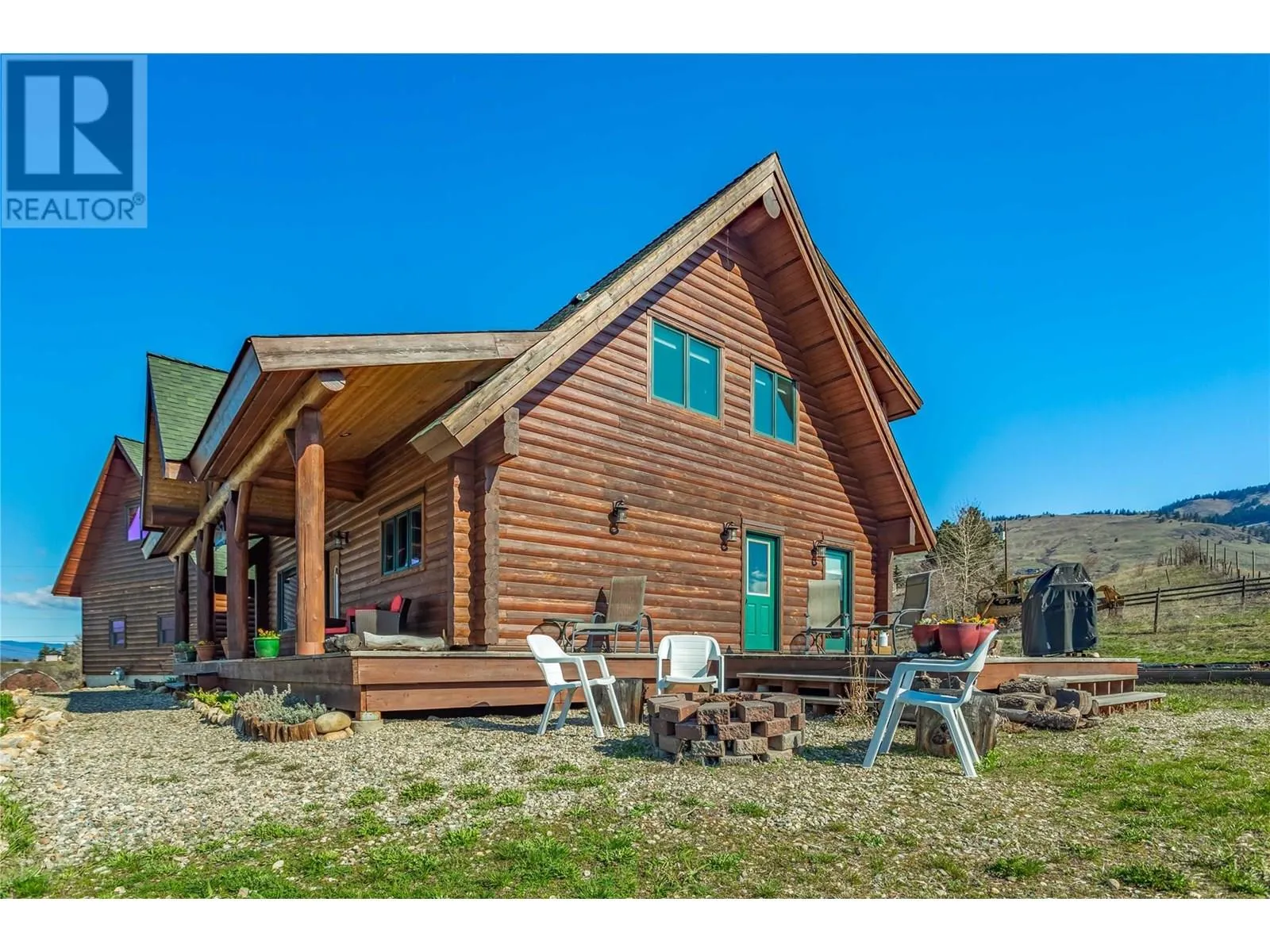 Welcome to your dream home, nestled on 2.47 acres of gently sloping pasture with breathtaking views across the Coldstream Valley. Crafted from eight-inch milled logs, this home combines timeless character along with excellent insulation, creating a warm and inviting living space. The open-concept main level features a bright and spacious living room with soaring vaulted ceilings. The dining area is ideal for hosting family and friends. The kitchen is complete with maple cabinetry, 8 ft island, under-cabinet lighting & ample storage. A large main-floor bedroom offers flexibility as a primary suite for convenient one level living or as a home office/den. A full bathroom and laundry room complete this level. Upstairs, a sunlit loft overlooks the living room below & leads to a spacious primary bedroom, a walk-thru full bathroom, and a third bedroom. The loft landing provides a cozy spot to relax with a book or enjoy the view. The unfinished basement offers endless potential to create a rec room, home gym, or additional living space, with a roughed-in bathroom ready for future expansion. A detached double garage (26â4 x 26â1) provides plenty of space for vehicles and storage and is connected to the main home via an enclosed breezeway. A private studio suite above the garage is perfect for guests, a home office, or a lucrative Airbnb rental. Take in the stunning views, with a neighboring organic vineyard adding to the charm. This property offers the perfect blend of rural tranquility and modern living, all while being just a short drive from local amenities. (id:27476)