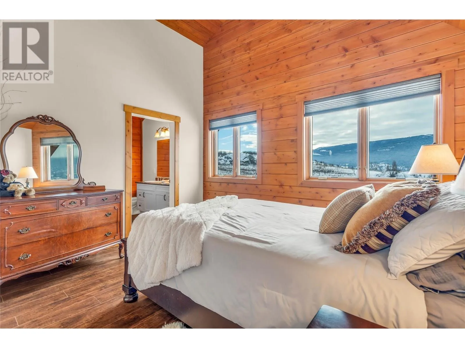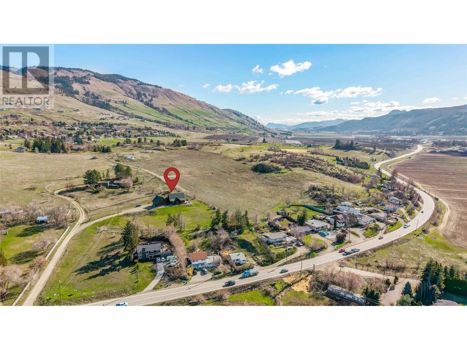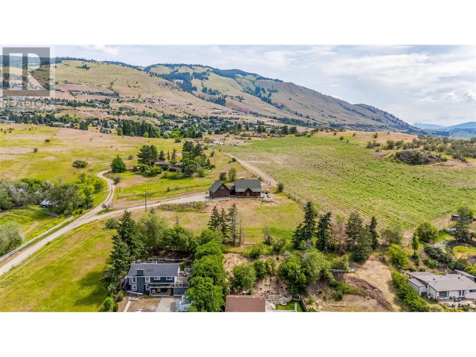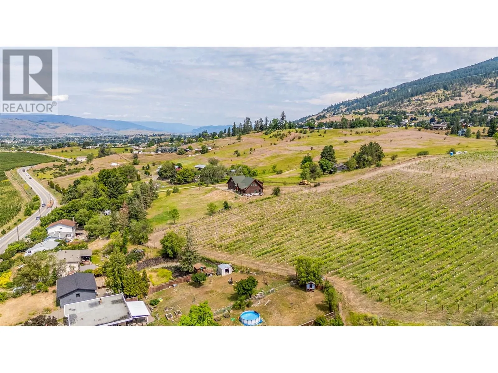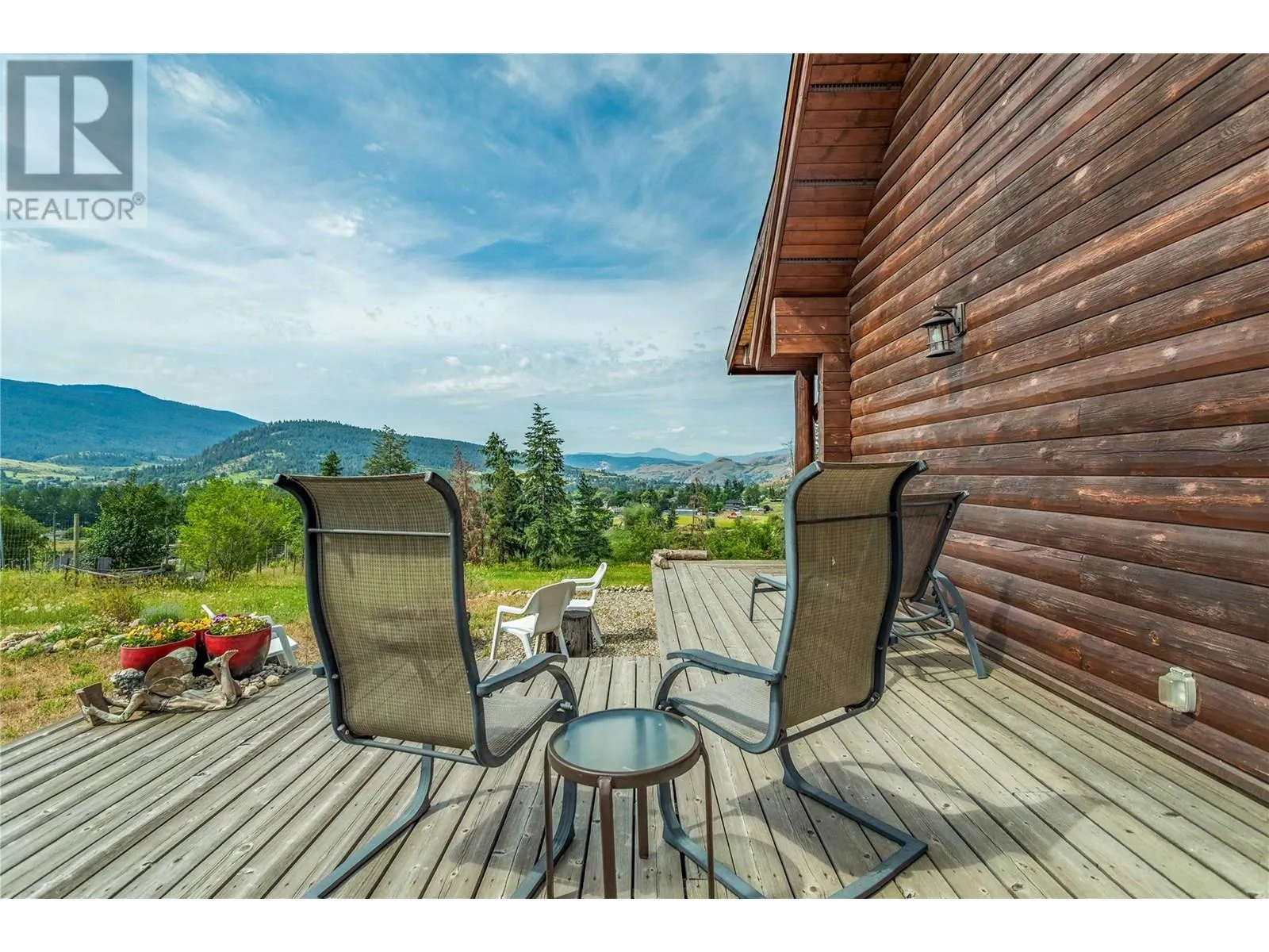 Welcome to your dream home, nestled on 2.47 acres of gently sloping pasture with breathtaking views across the Coldstream Valley. Crafted from eight-inch milled logs, this home combines timeless character along with excellent insulation, creating a warm and inviting living space. The open-concept main level features a bright and spacious living room with soaring vaulted ceilings. The dining area is ideal for hosting family and friends. The kitchen is complete with maple cabinetry, 8 ft island, under-cabinet lighting & ample storage. A large main-floor bedroom offers flexibility as a primary suite for convenient one level living or as a home office/den. A full bathroom and laundry room complete this level. Upstairs, a sunlit loft overlooks the living room below & leads to a spacious primary bedroom, a walk-thru full bathroom, and a third bedroom. The loft landing provides a cozy spot to relax with a book or enjoy the view. The unfinished basement offers endless potential to create a rec room, home gym, or additional living space, with a roughed-in bathroom ready for future expansion. A detached double garage (26â4 x 26â1) provides plenty of space for vehicles and storage and is connected to the main home via an enclosed breezeway. A private studio suite above the garage is perfect for guests, a home office, or a lucrative Airbnb rental. Take in the stunning views, with a neighboring organic vineyard adding to the charm. This property offers the perfect blend of rural tranquility and modern living, all while being just a short drive from local amenities. (id:27476)