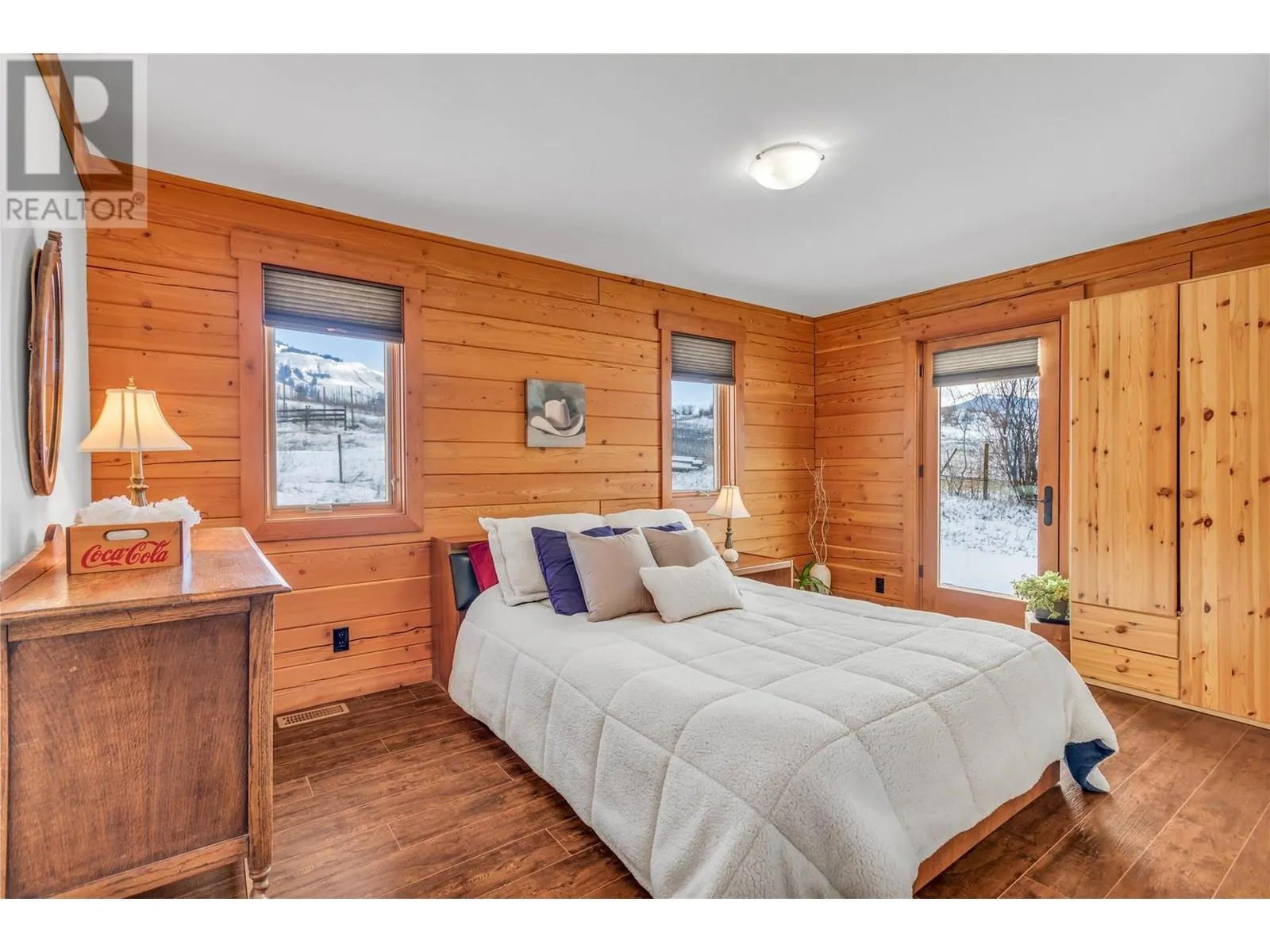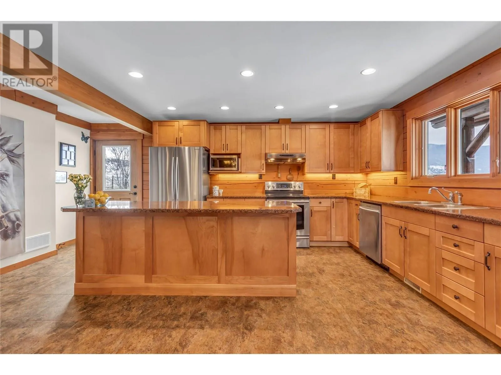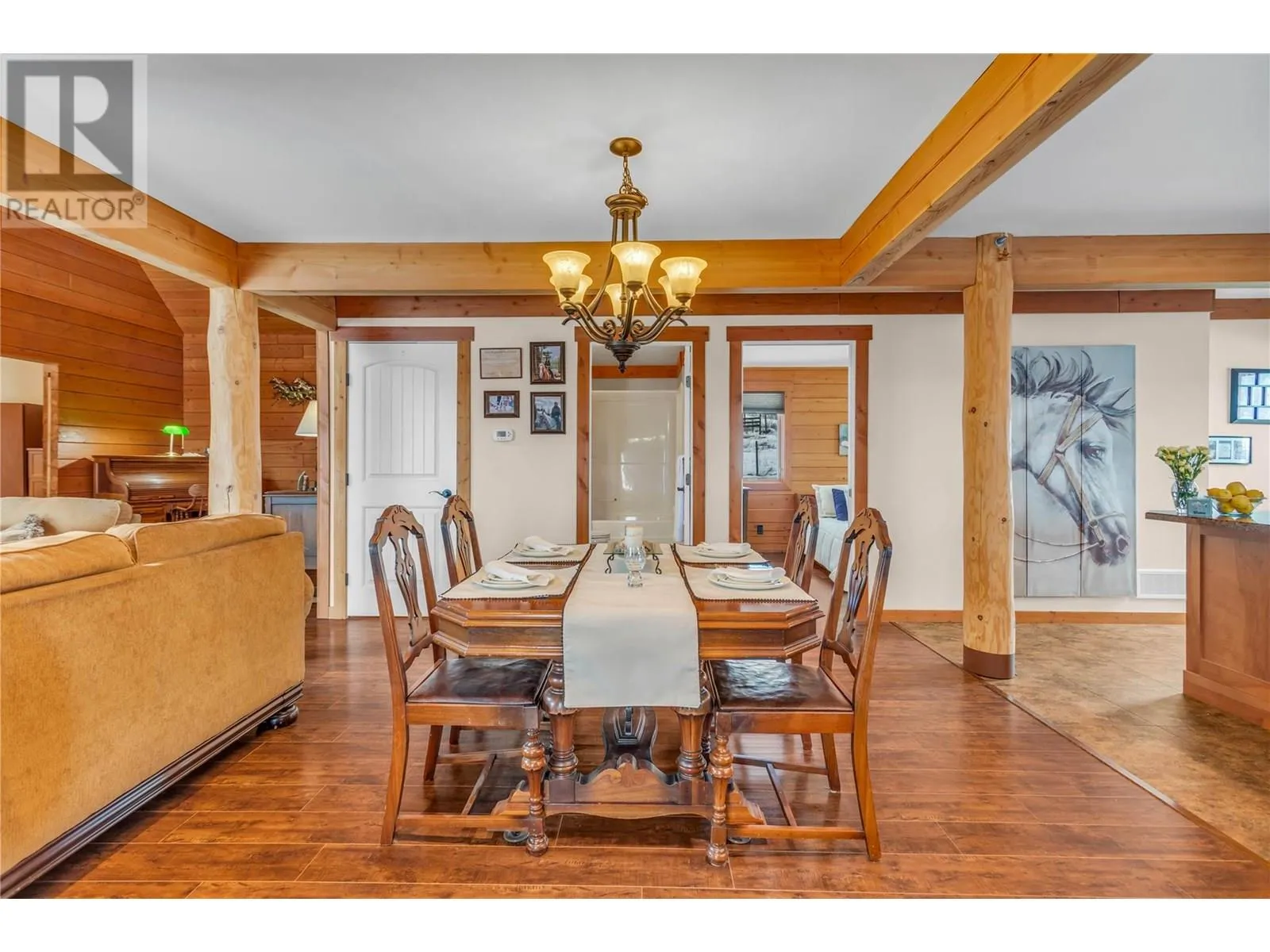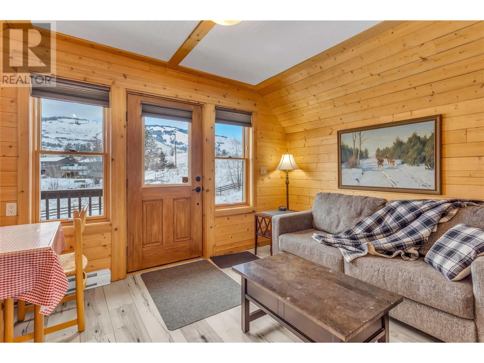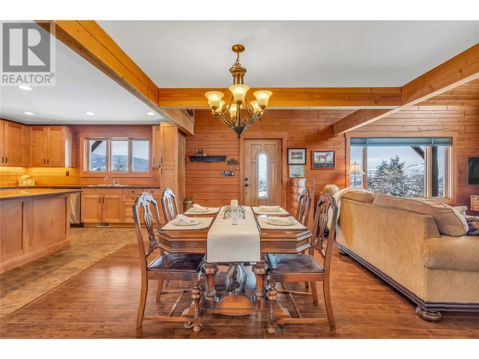 Welcome to your dream home, nestled on 2.47 acres of gently sloping pasture with breathtaking views across the Coldstream Valley. Crafted from eight-inch milled logs, this home combines timeless character along with excellent insulation, creating a warm and inviting living space. The open-concept main level features a bright and spacious living room with soaring vaulted ceilings. The dining area is ideal for hosting family and friends. The kitchen is complete with maple cabinetry, 8 ft island, under-cabinet lighting & ample storage. A large main-floor bedroom offers flexibility as a primary suite for convenient one level living or as a home office/den. A full bathroom and laundry room complete this level. Upstairs, a sunlit loft overlooks the living room below & leads to a spacious primary bedroom, a walk-thru full bathroom, and a third bedroom. The loft landing provides a cozy spot to relax with a book or enjoy the view. The unfinished basement offers endless potential to create a rec room, home gym, or additional living space, with a roughed-in bathroom ready for future expansion. A detached double garage (26â4 x 26â1) provides plenty of space for vehicles and storage and is connected to the main home via an enclosed breezeway. A private studio suite above the garage is perfect for guests, a home office, or a lucrative Airbnb rental. Take in the stunning views, with a neighboring organic vineyard adding to the charm. This property offers the perfect blend of rural tranquility and modern living, all while being just a short drive from local amenities. (id:27476)
