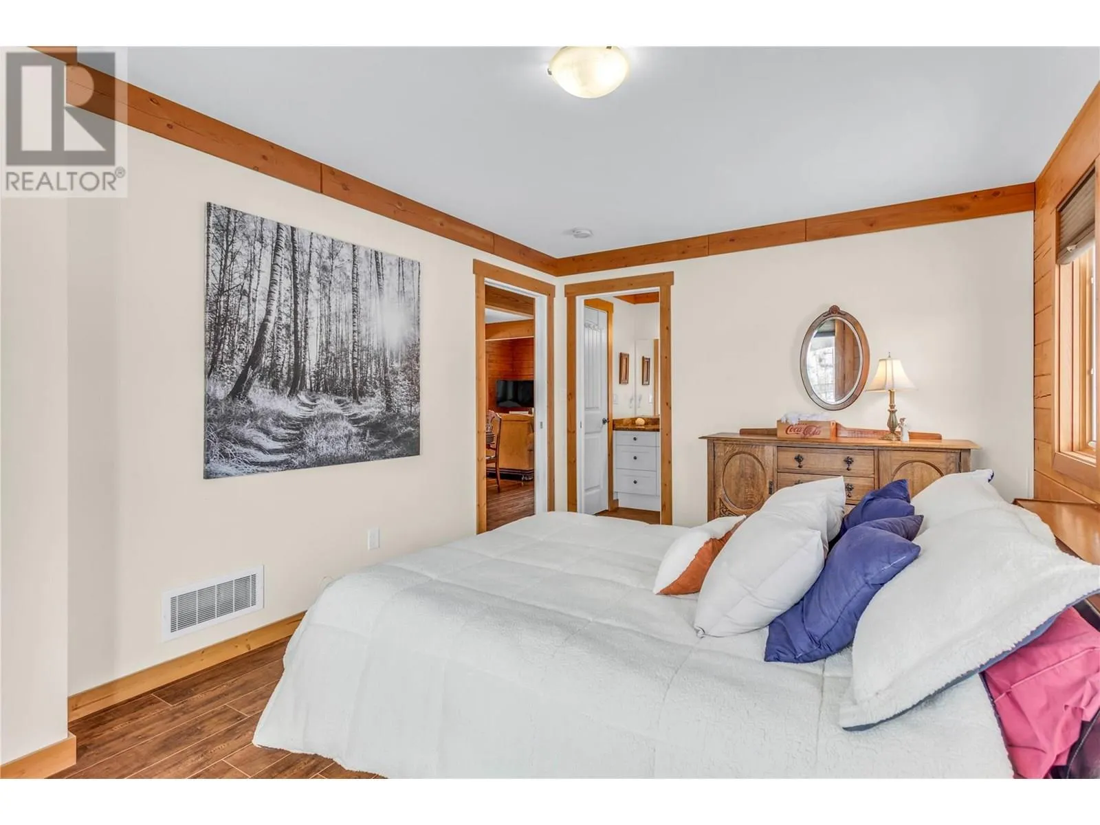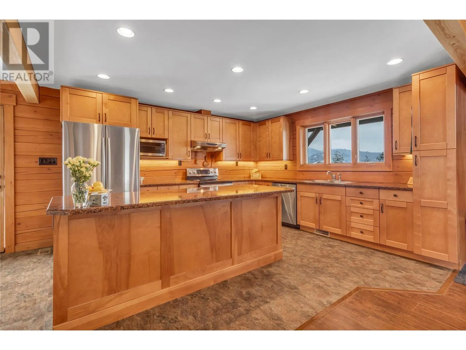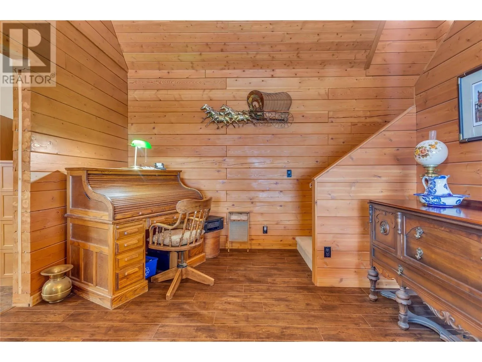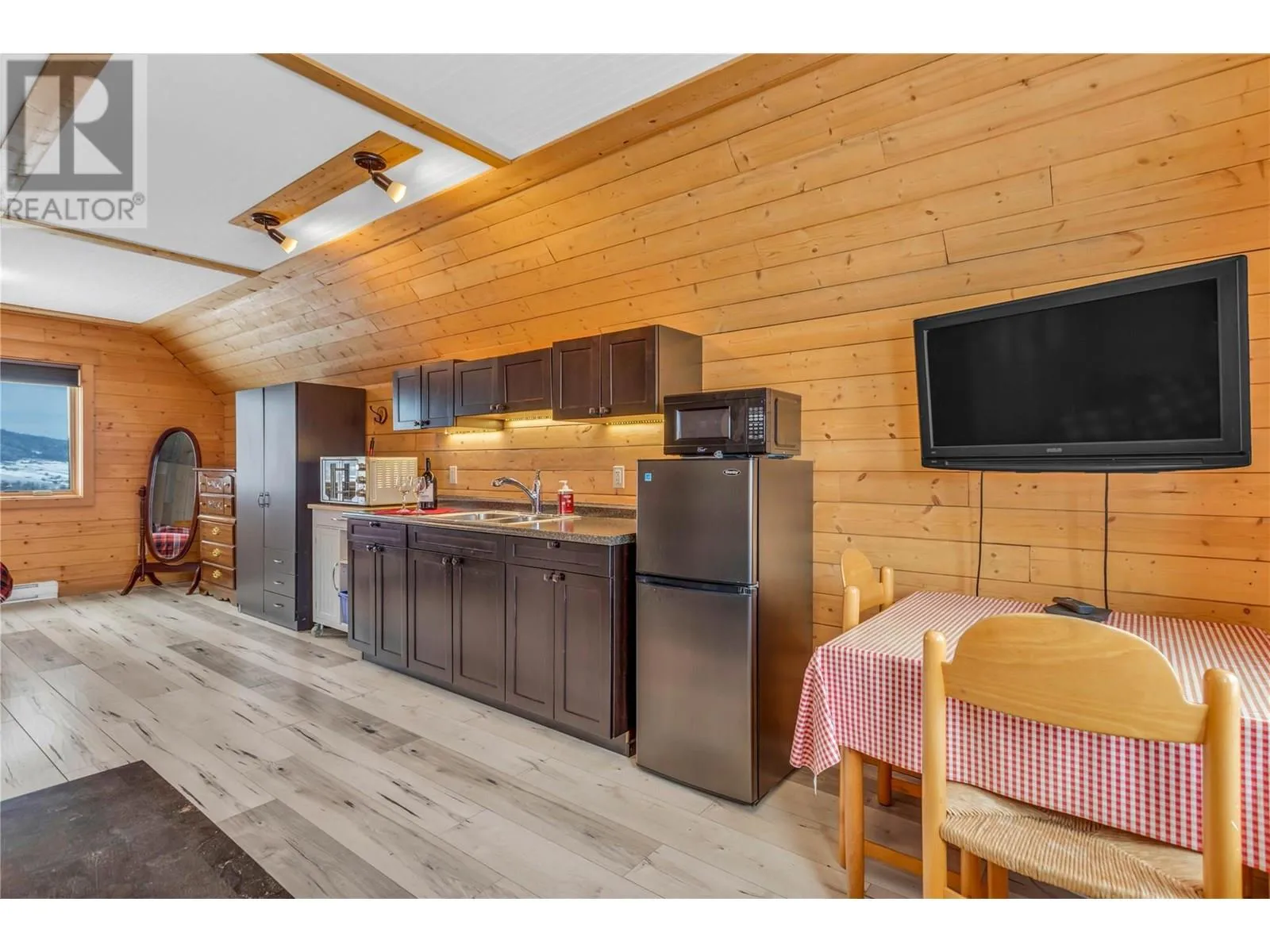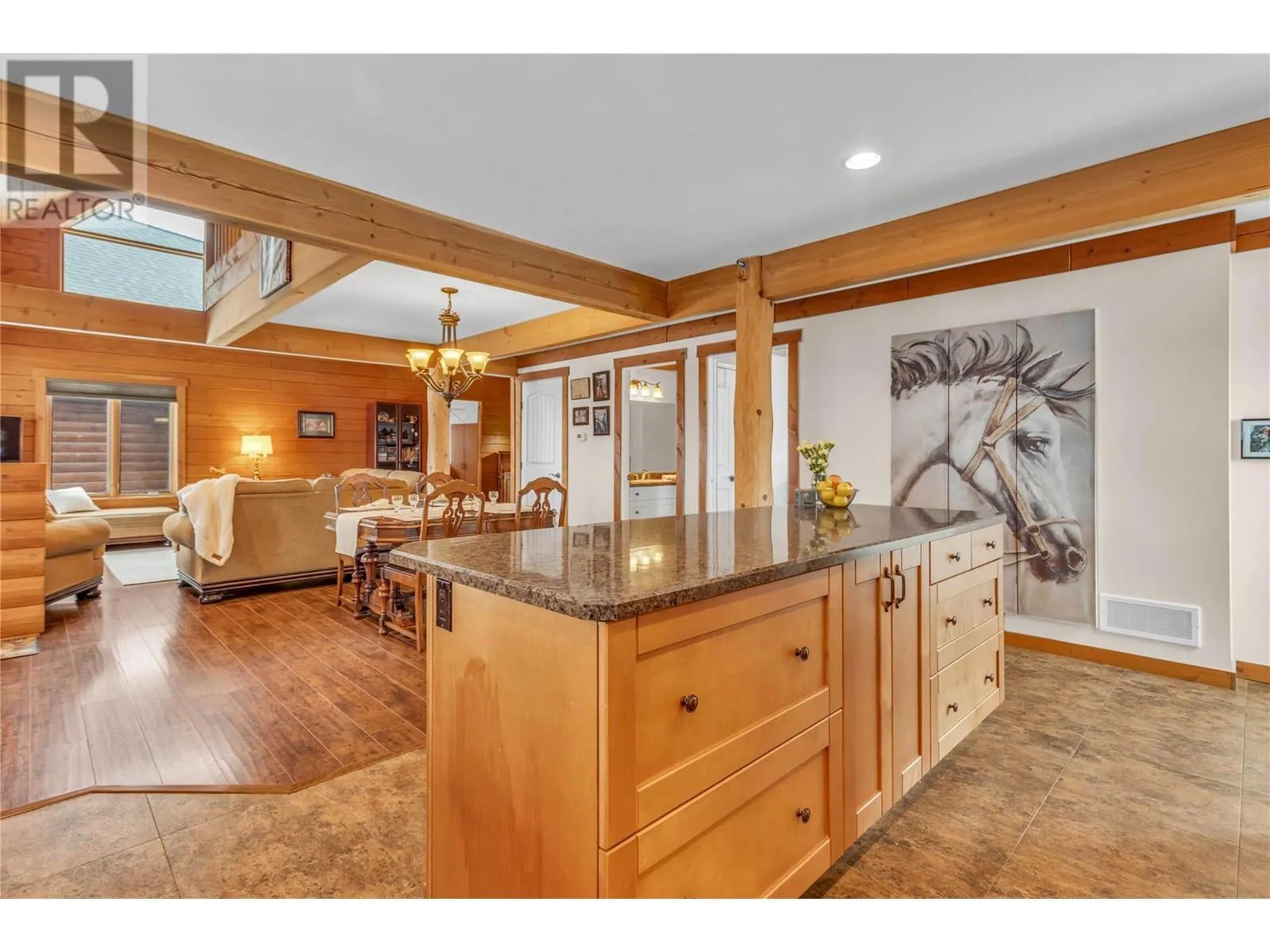 Welcome to your dream home, nestled on 2.47 acres of gently sloping pasture with breathtaking views across the Coldstream Valley. Crafted from eight-inch milled logs, this home combines timeless character along with excellent insulation, creating a warm and inviting living space. The open-concept main level features a bright and spacious living room with soaring vaulted ceilings. The dining area is ideal for hosting family and friends. The kitchen is complete with maple cabinetry, 8 ft island, under-cabinet lighting & ample storage. A large main-floor bedroom offers flexibility as a primary suite for convenient one level living or as a home office/den. A full bathroom and laundry room complete this level. Upstairs, a sunlit loft overlooks the living room below & leads to a spacious primary bedroom, a walk-thru full bathroom, and a third bedroom. The loft landing provides a cozy spot to relax with a book or enjoy the view. The unfinished basement offers endless potential to create a rec room, home gym, or additional living space, with a roughed-in bathroom ready for future expansion. A detached double garage (26â4 x 26â1) provides plenty of space for vehicles and storage and is connected to the main home via an enclosed breezeway. A private studio suite above the garage is perfect for guests, a home office, or a lucrative Airbnb rental. Take in the stunning views, with a neighboring organic vineyard adding to the charm. This property offers the perfect blend of rural tranquility and modern living, all while being just a short drive from local amenities. (id:27476)
