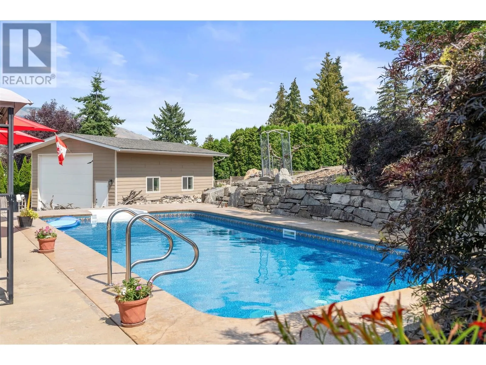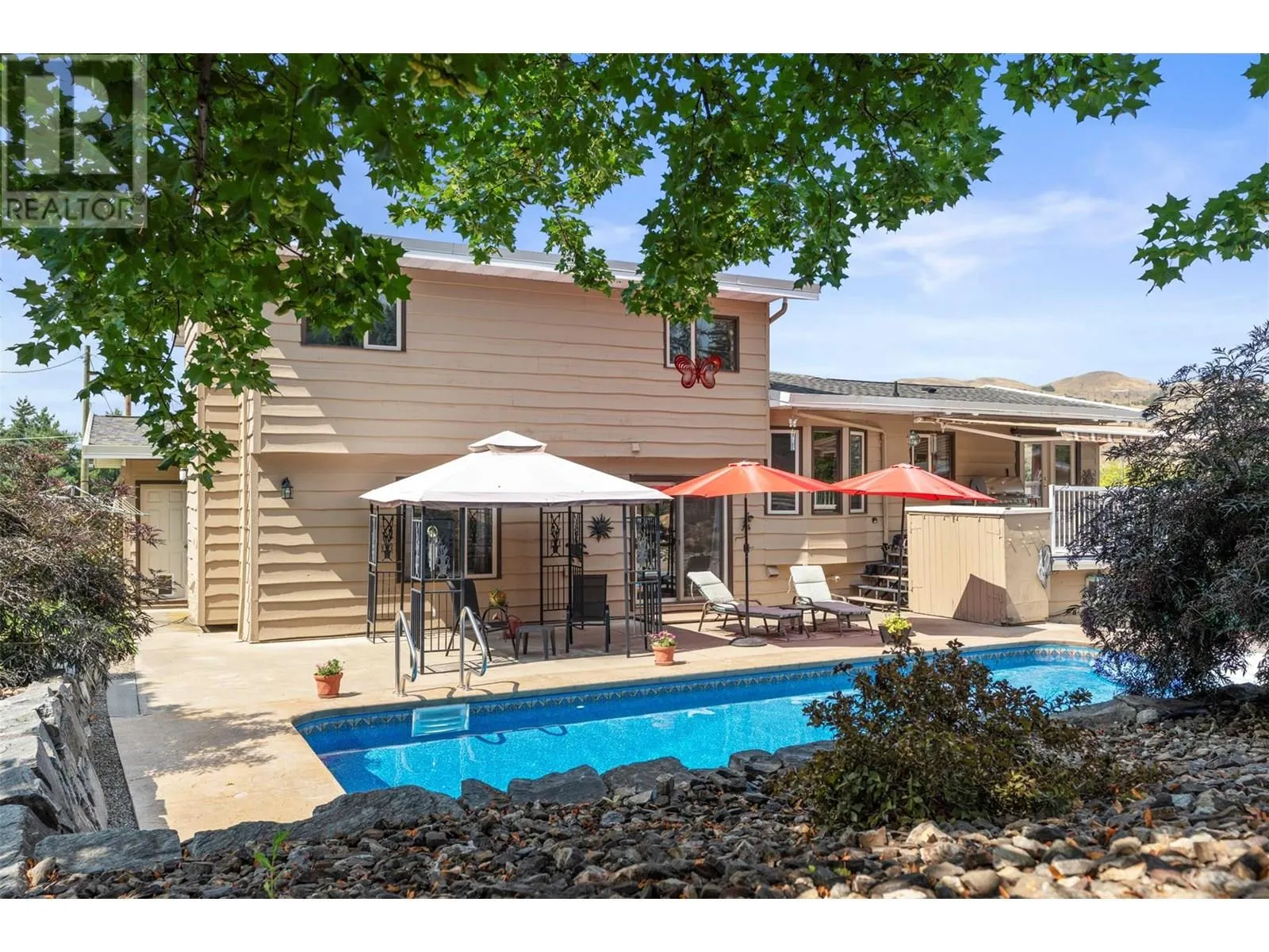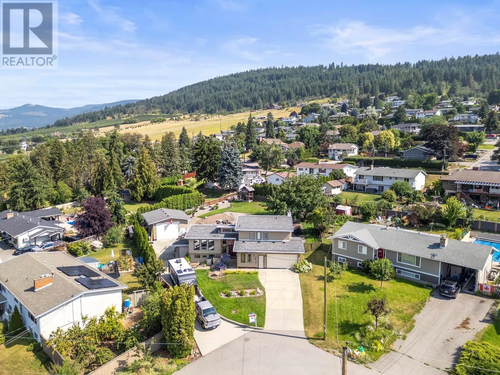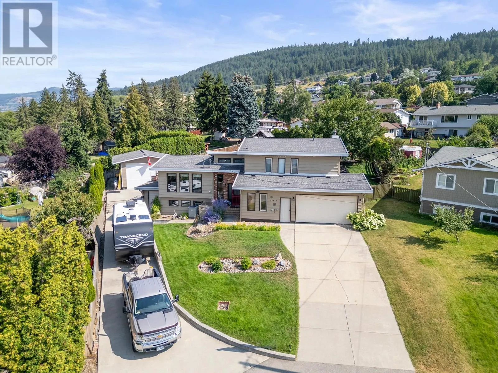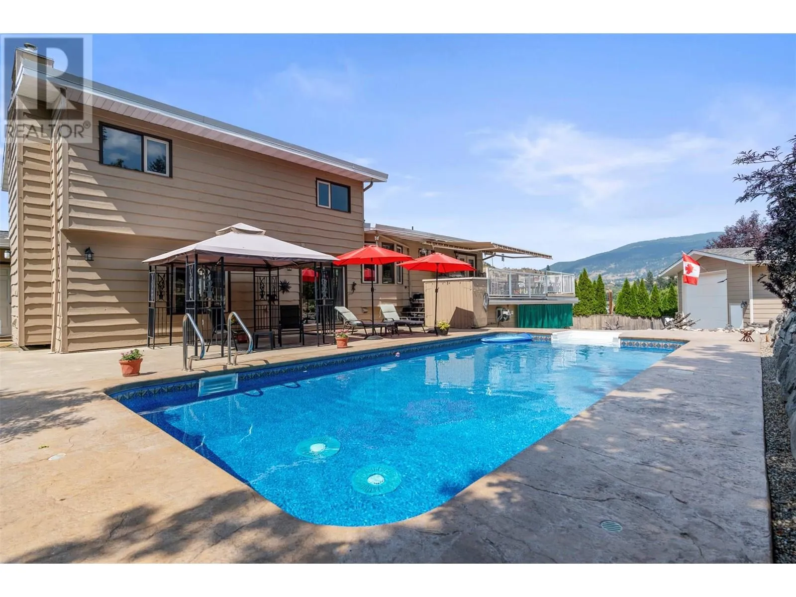 *Price reduced* Coldstream family home. Spacious 4-bed, 3-full bath family home is set on a private 0.46-acre lot in the heart of Coldstream. A true standout feature is the 31' x 23' x 14' detached workshop, ideal for hobbies, trades, or a small business. Two additional garages with a separate entrance provide even more flexibility. With 200-amp service to the home, 100 amps to the shop, and a 140-foot driveway with RV parking, there is no shortage of space for vehicles, storage, and projects. Outdoors, summer days are made for the heated saltwater pool, evenings can be enjoyed around the fire pit, and year-round relaxation comes with multiple decks overlooking mountain views. The backyard also features irrigation, low-maintenance landscaping, and a rock waterfall, with room to grow your own vegetables and enjoy the natural setting. Inside, cedar board accents add warmth and character, while the flexible floor plan includes a den or office that can easily serve as an additional bedroom. The layout is designed to suit families or those who need space for both work and play. Located close to both Kidston Elementary and Kalamalka Highschool, Coldstream Creek Park, Kalamalka Provincial Park, and Kalamalka Lake, this home and location offers a rare blend of practicality, recreation, and lifestyle in one of the most desirable communities in the Okanagan. Must see in person! (id:27476)