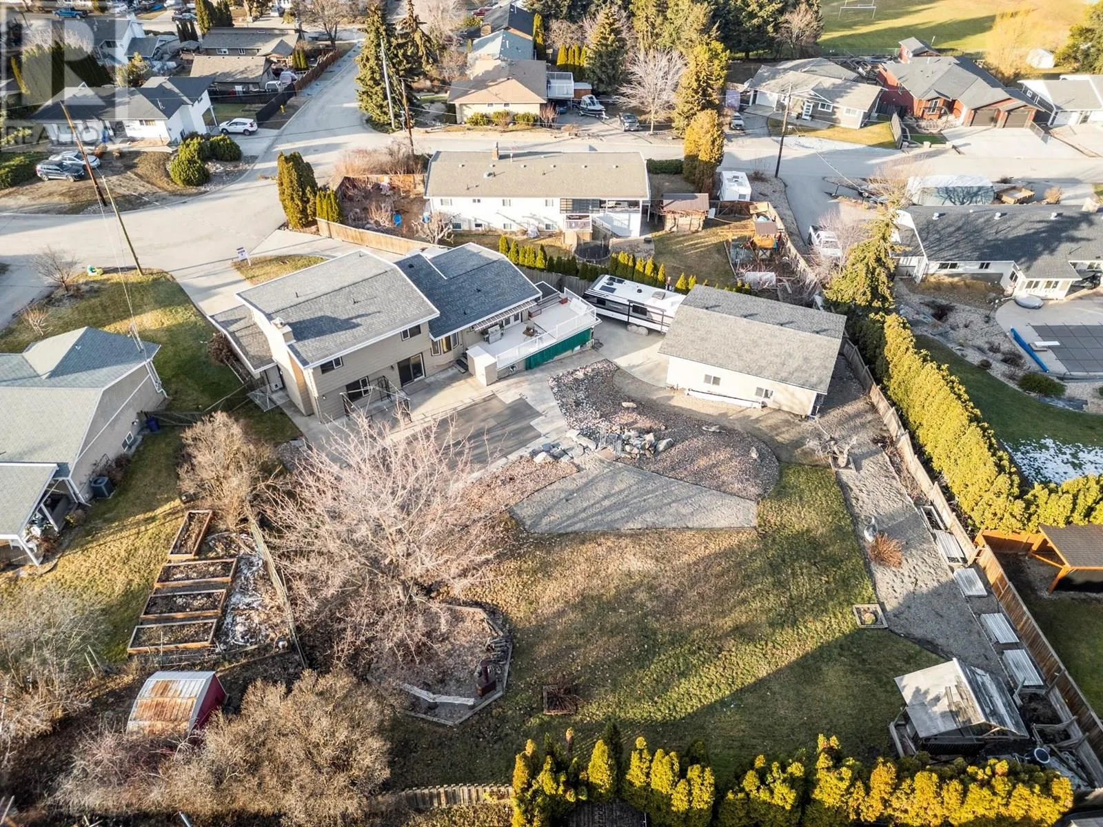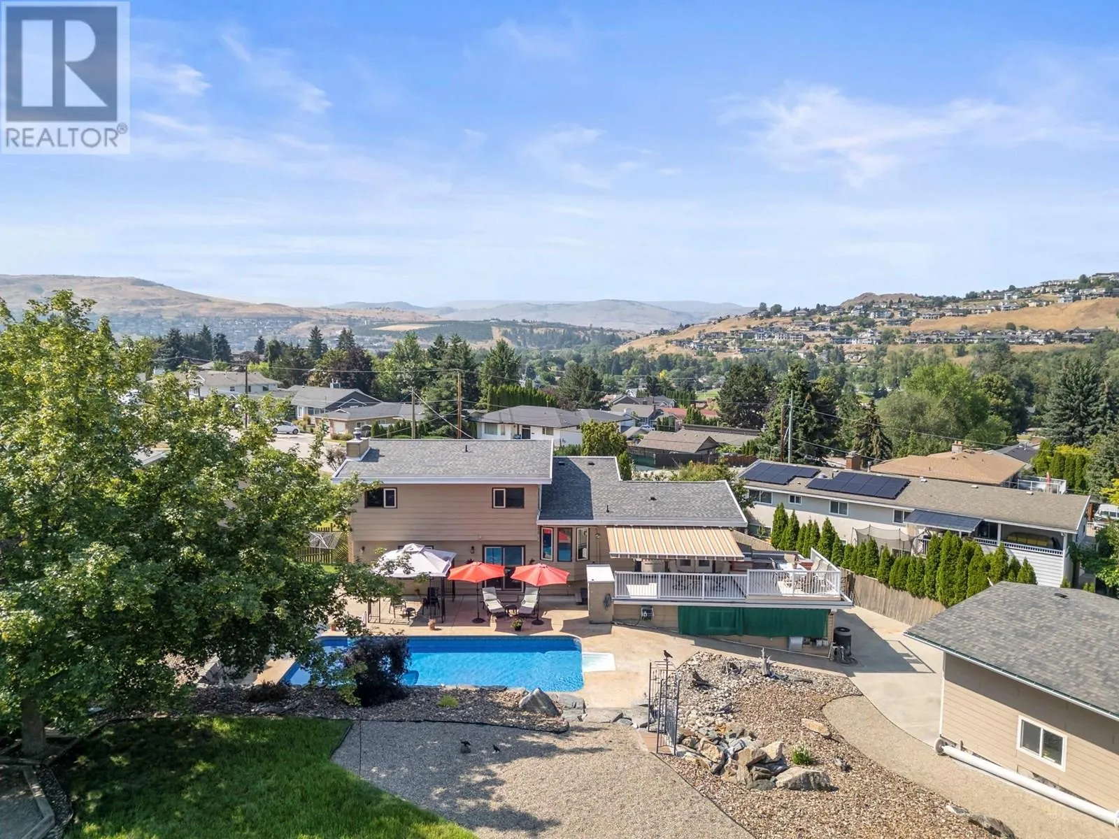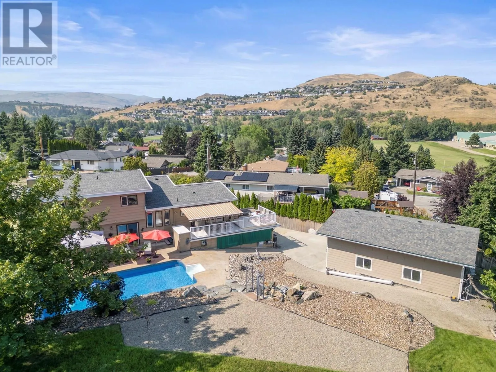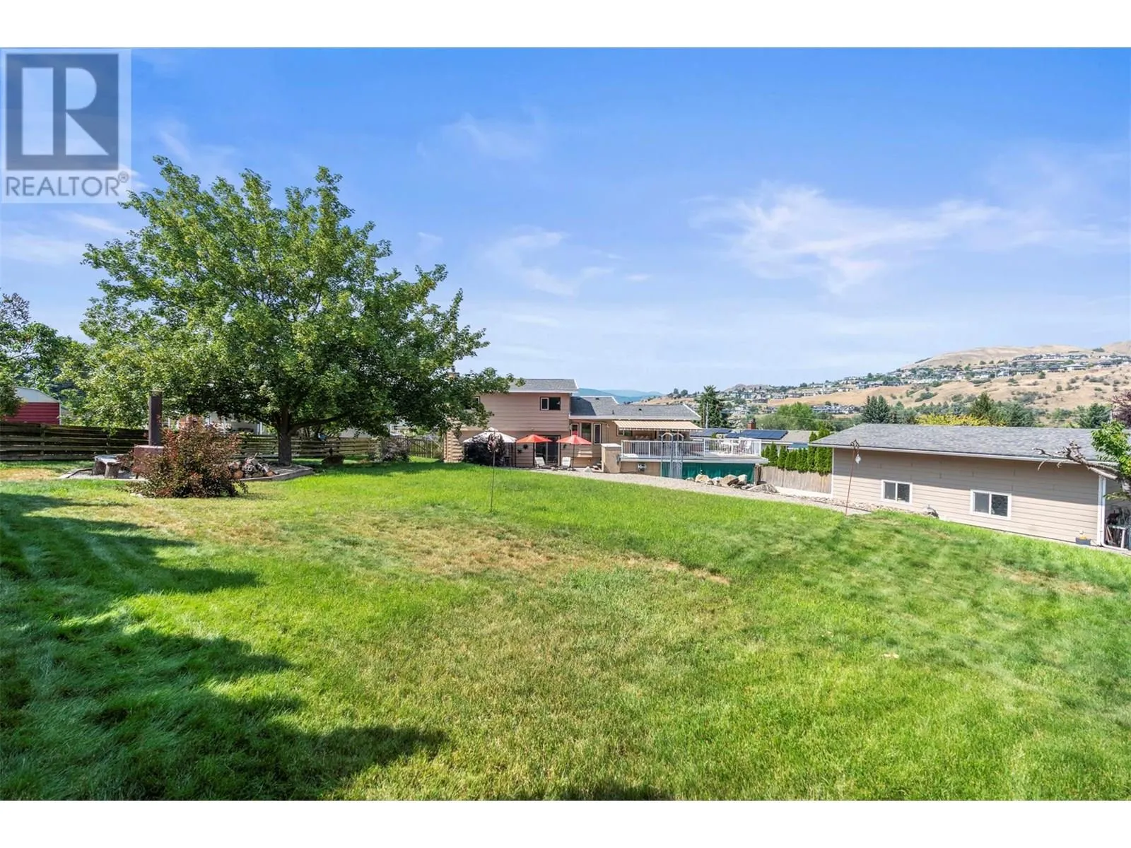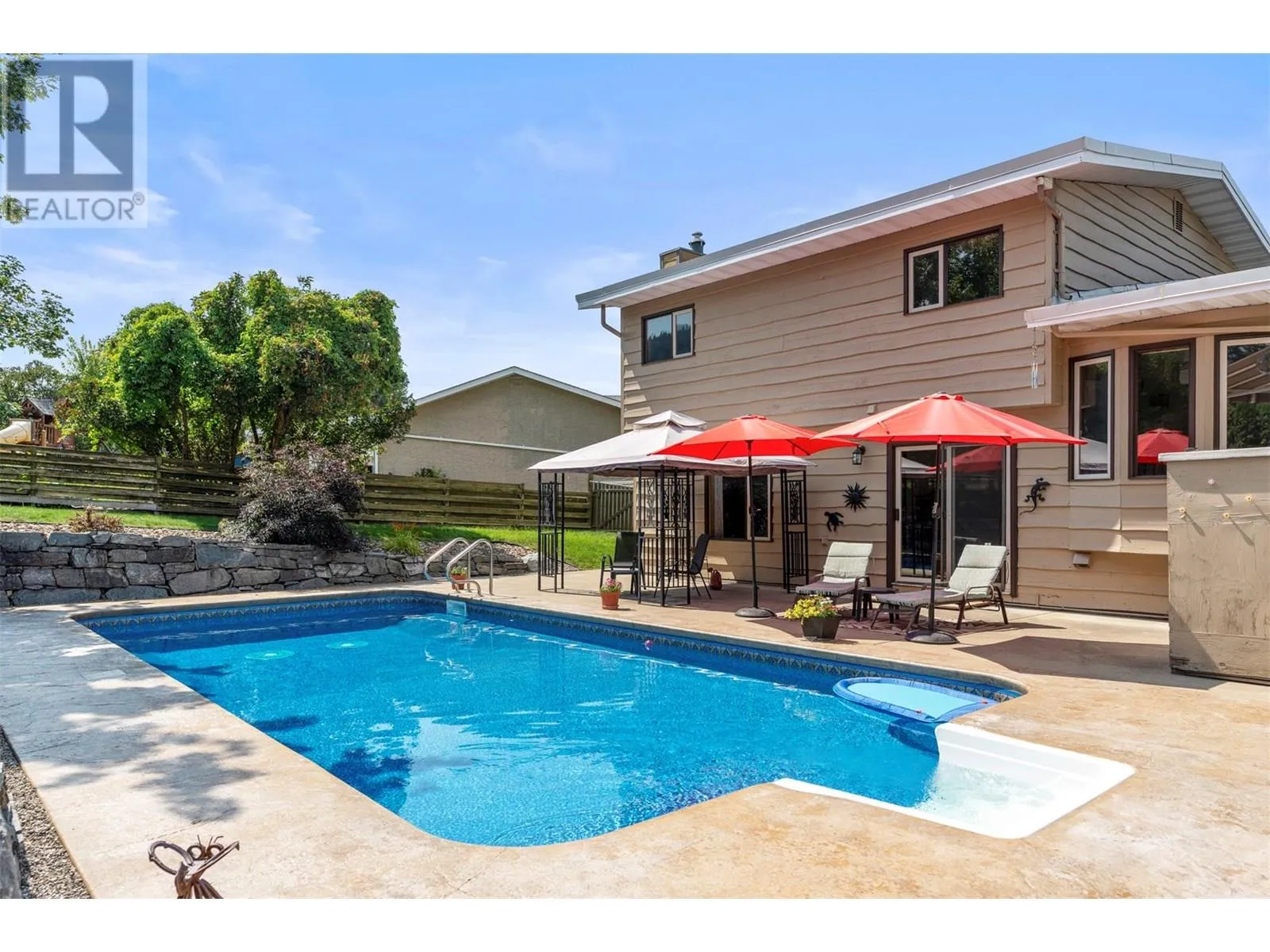 *Price reduced* Coldstream family home. Spacious 4-bed, 3-full bath family home is set on a private 0.46-acre lot in the heart of Coldstream. A true standout feature is the 31' x 23' x 14' detached workshop, ideal for hobbies, trades, or a small business. Two additional garages with a separate entrance provide even more flexibility. With 200-amp service to the home, 100 amps to the shop, and a 140-foot driveway with RV parking, there is no shortage of space for vehicles, storage, and projects. Outdoors, summer days are made for the heated saltwater pool, evenings can be enjoyed around the fire pit, and year-round relaxation comes with multiple decks overlooking mountain views. The backyard also features irrigation, low-maintenance landscaping, and a rock waterfall, with room to grow your own vegetables and enjoy the natural setting. Inside, cedar board accents add warmth and character, while the flexible floor plan includes a den or office that can easily serve as an additional bedroom. The layout is designed to suit families or those who need space for both work and play. Located close to both Kidston Elementary and Kalamalka Highschool, Coldstream Creek Park, Kalamalka Provincial Park, and Kalamalka Lake, this home and location offers a rare blend of practicality, recreation, and lifestyle in one of the most desirable communities in the Okanagan. Must see in person! (id:27476)