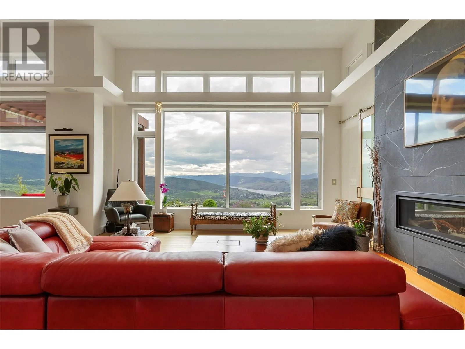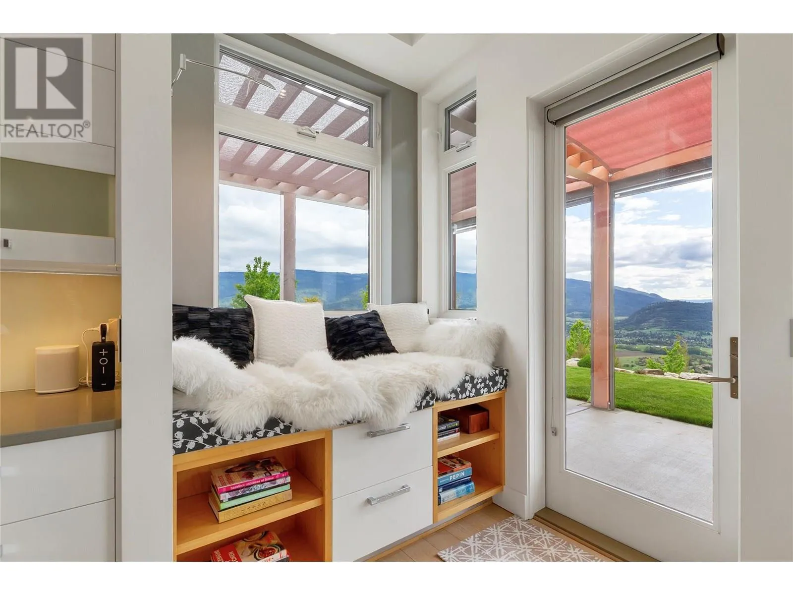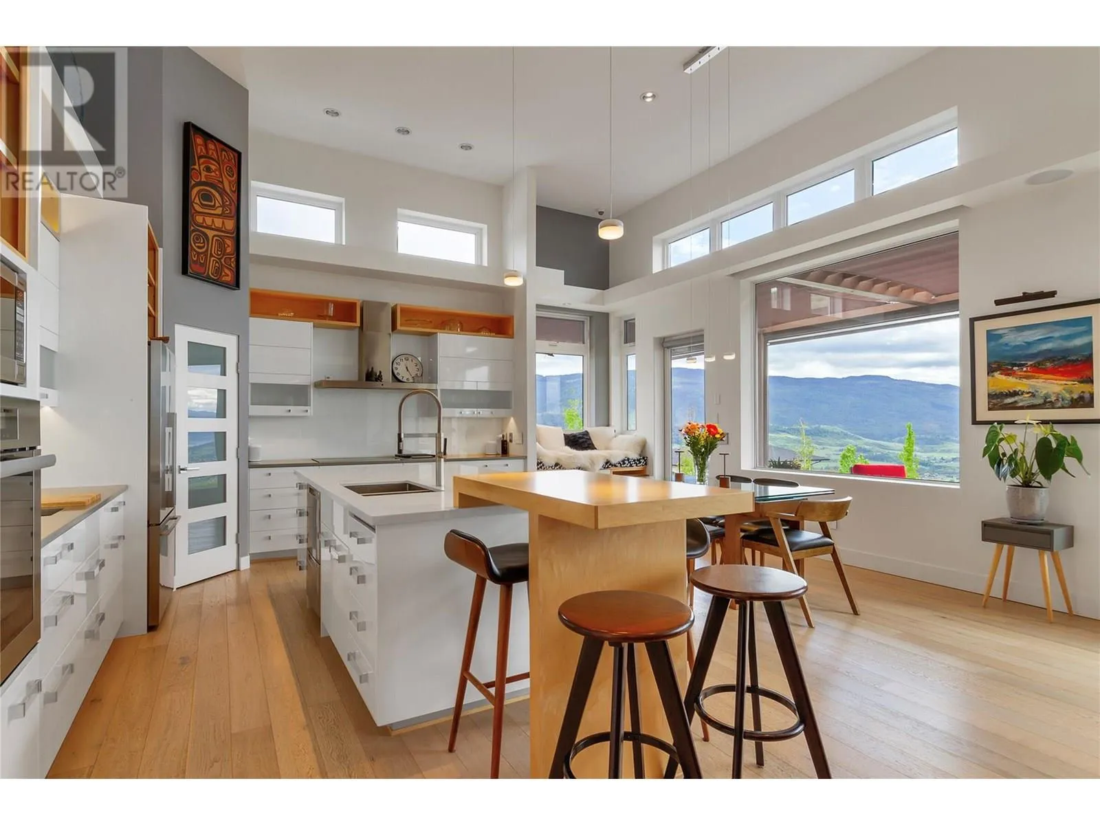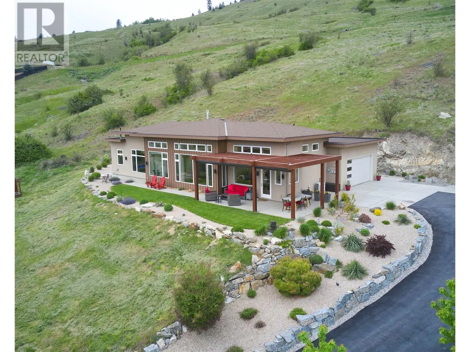 Welcome to 56 Ravine Driveâwhere luxury meets sustainability on 5.48 private acres with breathtaking over 180-degree views of Kalamalka Lake and the Coldstream Valley. This 2017 Tommie Award-winning custom rancher, built by Keith Construction, is rated Built Green Platinum and designed for energy efficiency and comfort. All your living is on one level with 3 bedrooms, 3 bathrooms, plus a dedicated office space and bonus flex room. Soaring 14â ceilings, southwest exposure, and expansive windows flood the home with natural light and showcase the stunning scenery. Enjoy in-floor radiant heat beneath engineered hardwood flooring throughout. The chef-inspired kitchen, perfect for entertaining, features high-gloss European cabinetry, sleek quartz countertops, and top of the line appliances including an induction cooktop, indoor electric grill, and a double-drawer Fisher Paykel dishwasher. Built with R32 exterior walls, passive solar features, and motorized window coverings plus exterior sun shades, this home is a comfortable, peaceful, and modern retreat. Step outside to beautifully landscaped grounds (room for a pool) with 6-zone irrigation, a custom water feature, and a gated entry. Enjoy an extra detached double garage for all your toys! Direct access to the Coldstream Ranchlands and Grey Canal trails offers an unmatched lifestyle for nature lovers within a 10-minute drive to downtown Vernon. (id:27476)