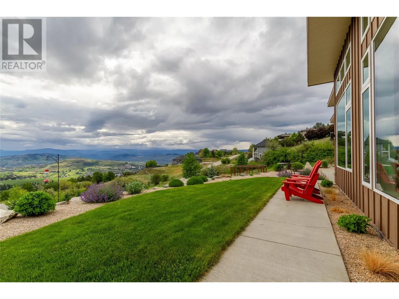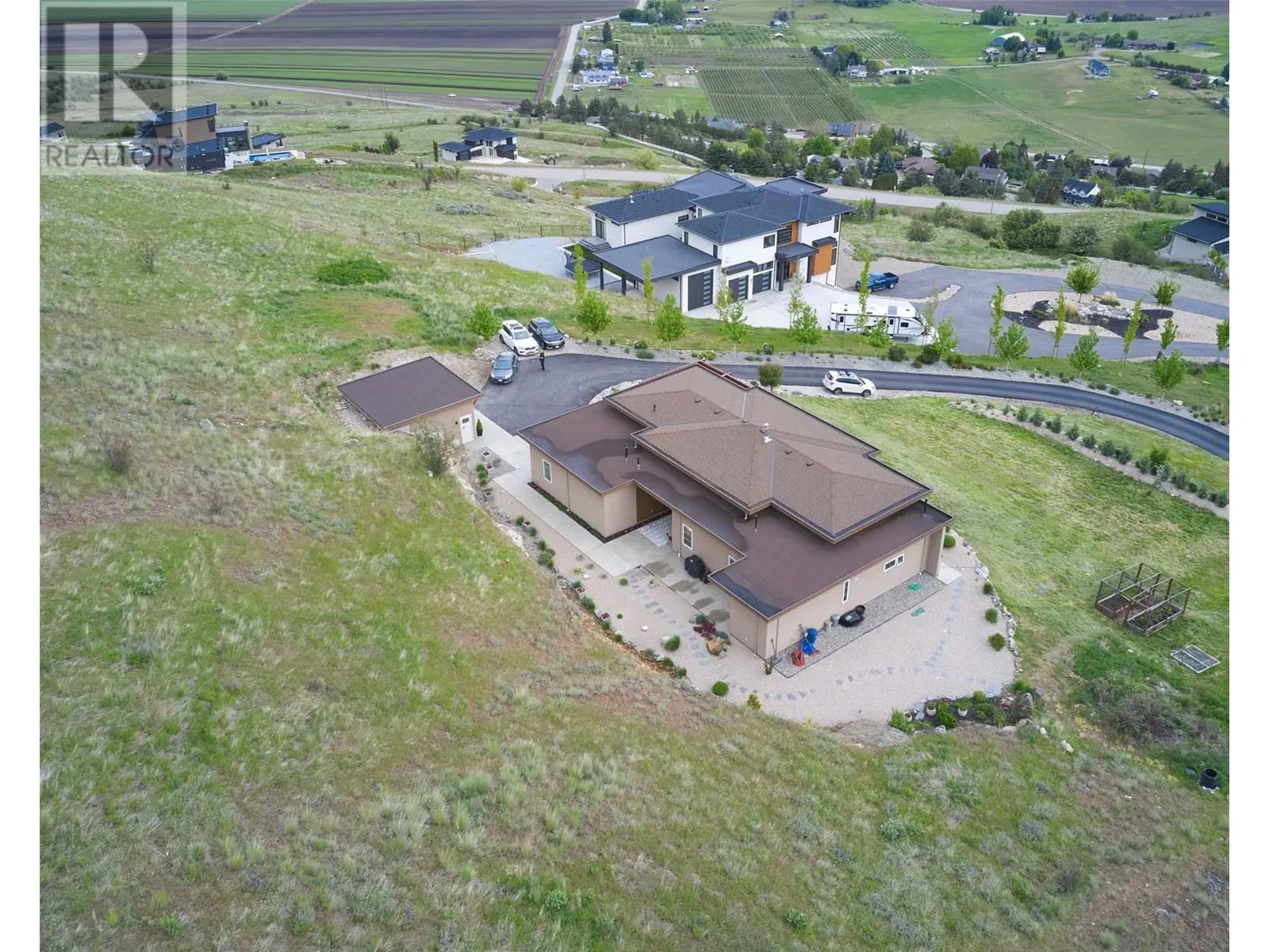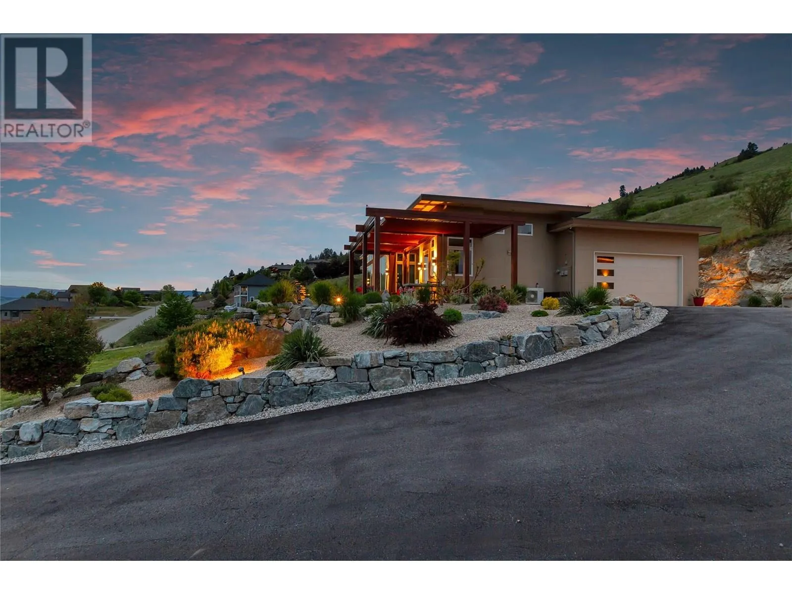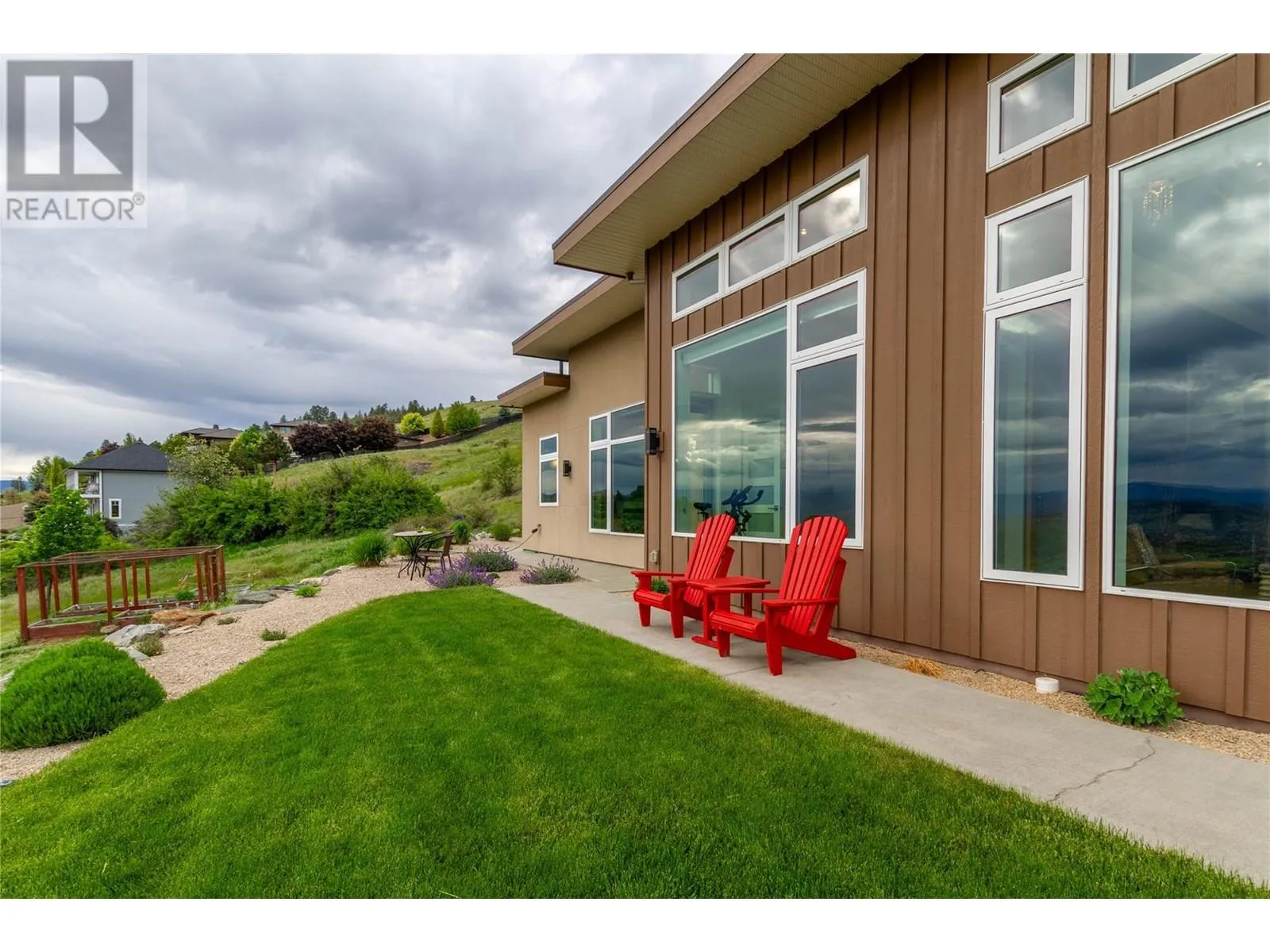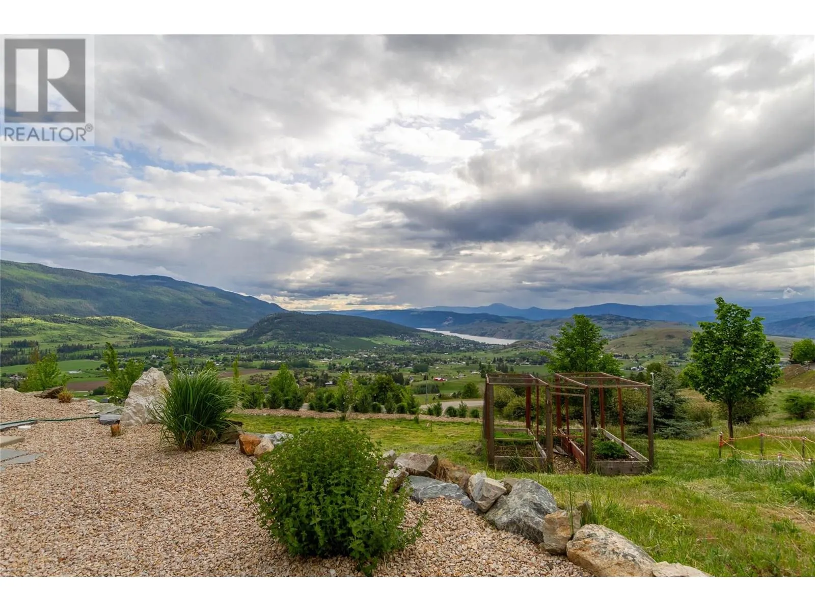 Welcome to 56 Ravine Driveâwhere luxury meets sustainability on 5.48 private acres with breathtaking over 180-degree views of Kalamalka Lake and the Coldstream Valley. This 2017 Tommie Award-winning custom rancher, built by Keith Construction, is rated Built Green Platinum and designed for energy efficiency and comfort. All your living is on one level with 3 bedrooms, 3 bathrooms, plus a dedicated office space and bonus flex room. Soaring 14â ceilings, southwest exposure, and expansive windows flood the home with natural light and showcase the stunning scenery. Enjoy in-floor radiant heat beneath engineered hardwood flooring throughout. The chef-inspired kitchen, perfect for entertaining, features high-gloss European cabinetry, sleek quartz countertops, and top of the line appliances including an induction cooktop, indoor electric grill, and a double-drawer Fisher Paykel dishwasher. Built with R32 exterior walls, passive solar features, and motorized window coverings plus exterior sun shades, this home is a comfortable, peaceful, and modern retreat. Step outside to beautifully landscaped grounds (room for a pool) with 6-zone irrigation, a custom water feature, and a gated entry. Enjoy an extra detached double garage for all your toys! Direct access to the Coldstream Ranchlands and Grey Canal trails offers an unmatched lifestyle for nature lovers within a 10-minute drive to downtown Vernon. (id:27476)