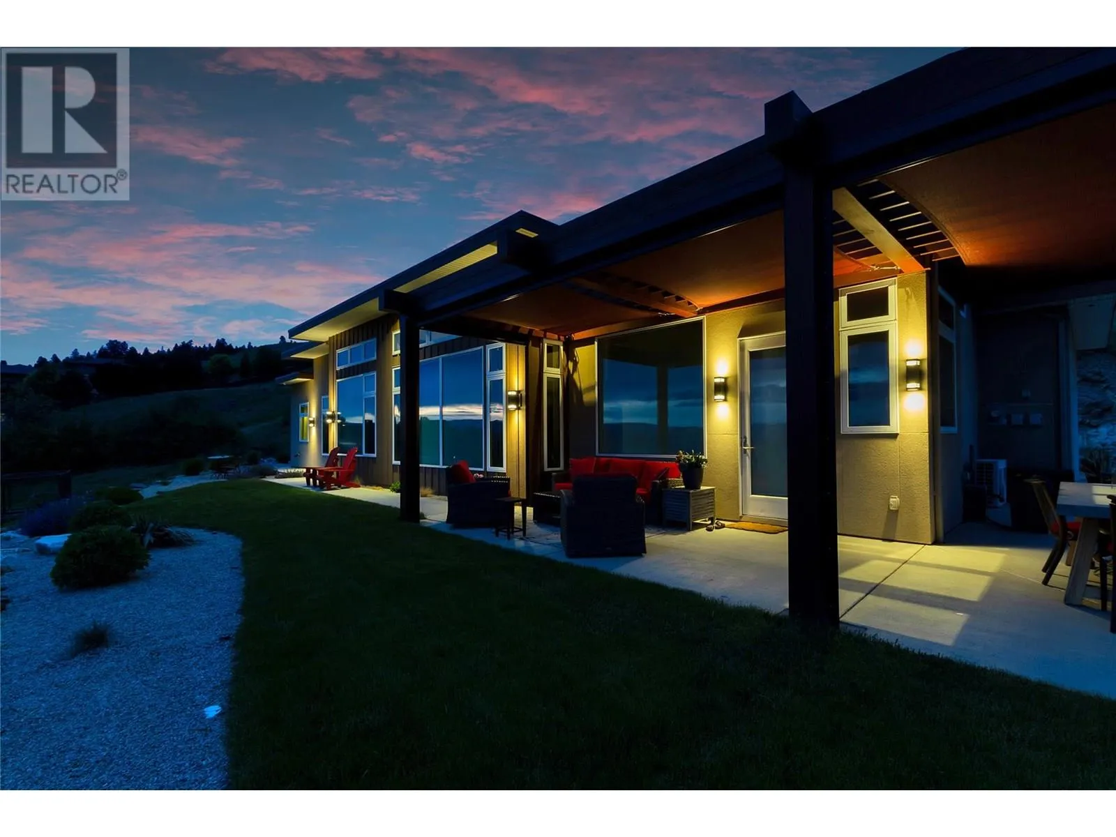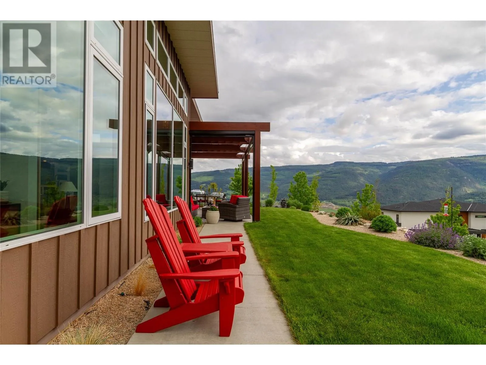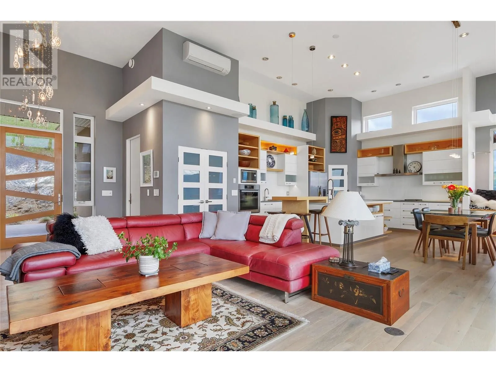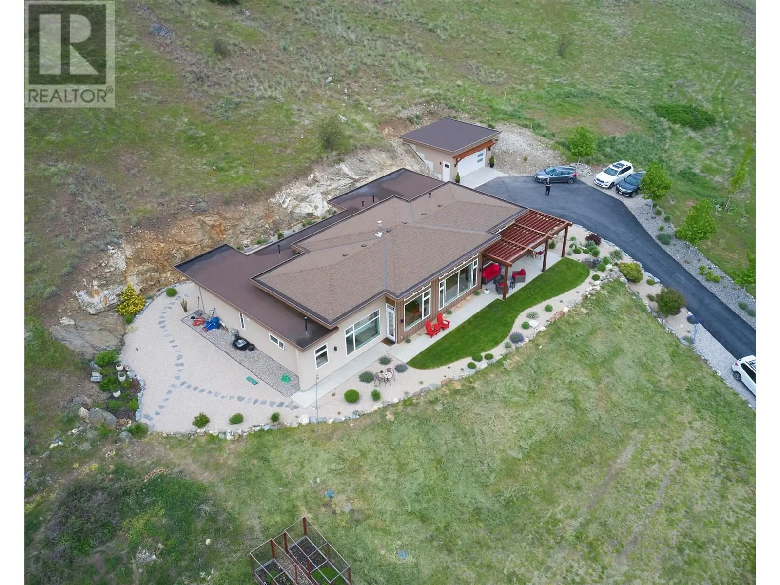Welcome to 56 Ravine Driveâwhere luxury meets sustainability on 5.48 private acres with breathtaking over 180-degree views of Kalamalka Lake and the Coldstream Valley. This 2017 Tommie Award-winning custom rancher, built by Keith Construction, is rated Built Green Platinum and designed for energy efficiency and comfort. All your living is on one level with 3 bedrooms, 3 bathrooms, plus a dedicated office space and bonus flex room. Soaring 14â ceilings, southwest exposure, and expansive windows flood the home with natural light and showcase the stunning scenery. Enjoy in-floor radiant heat beneath engineered hardwood flooring throughout. The chef-inspired kitchen, perfect for entertaining, features high-gloss European cabinetry, sleek quartz countertops, and top of the line appliances including an induction cooktop, indoor electric grill, and a double-drawer Fisher Paykel dishwasher. Built with R32 exterior walls, passive solar features, and motorized window coverings plus exterior sun shades, this home is a comfortable, peaceful, and modern retreat. Step outside to beautifully landscaped grounds (room for a pool) with 6-zone irrigation, a custom water feature, and a gated entry. Enjoy an extra detached double garage for all your toys! Direct access to the Coldstream Ranchlands and Grey Canal trails offers an unmatched lifestyle for nature lovers within a 10-minute drive to downtown Vernon. (id:27476)