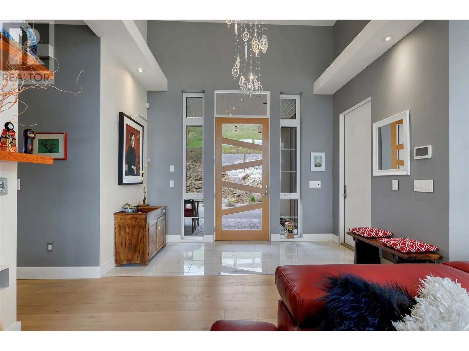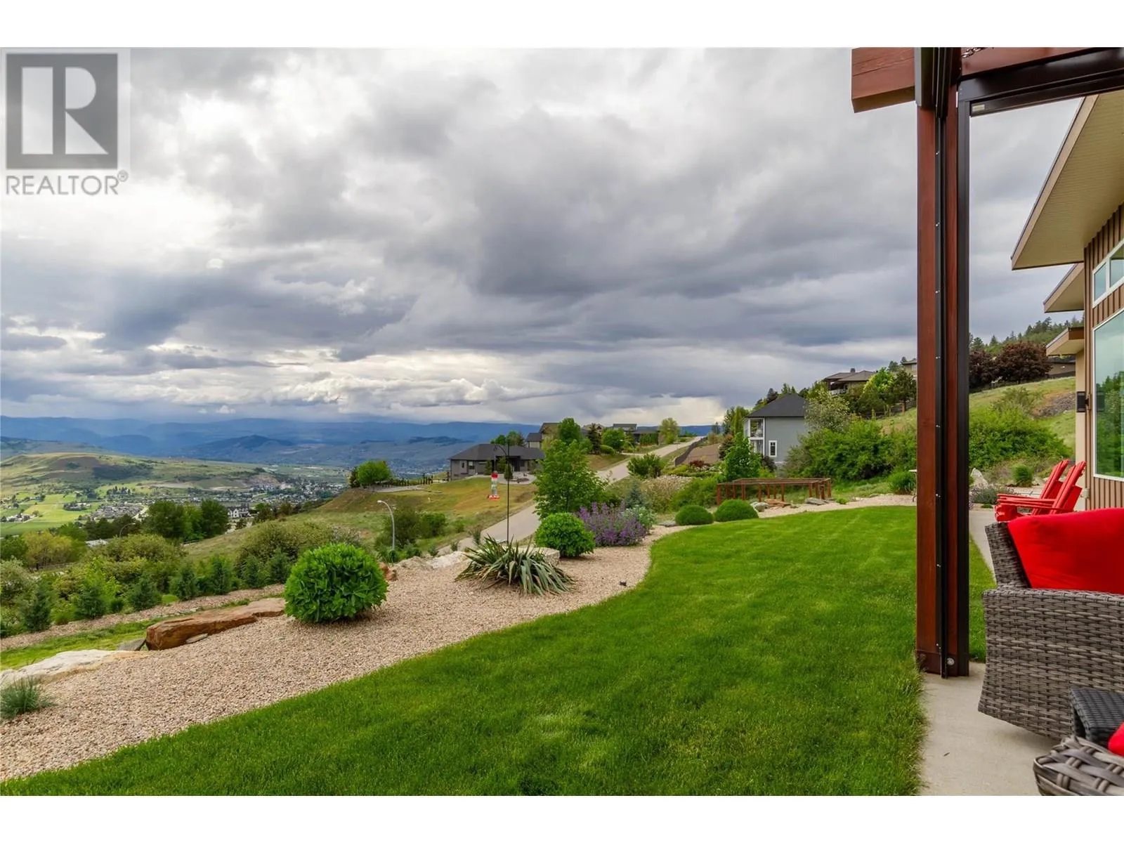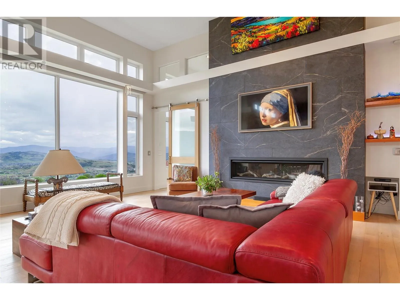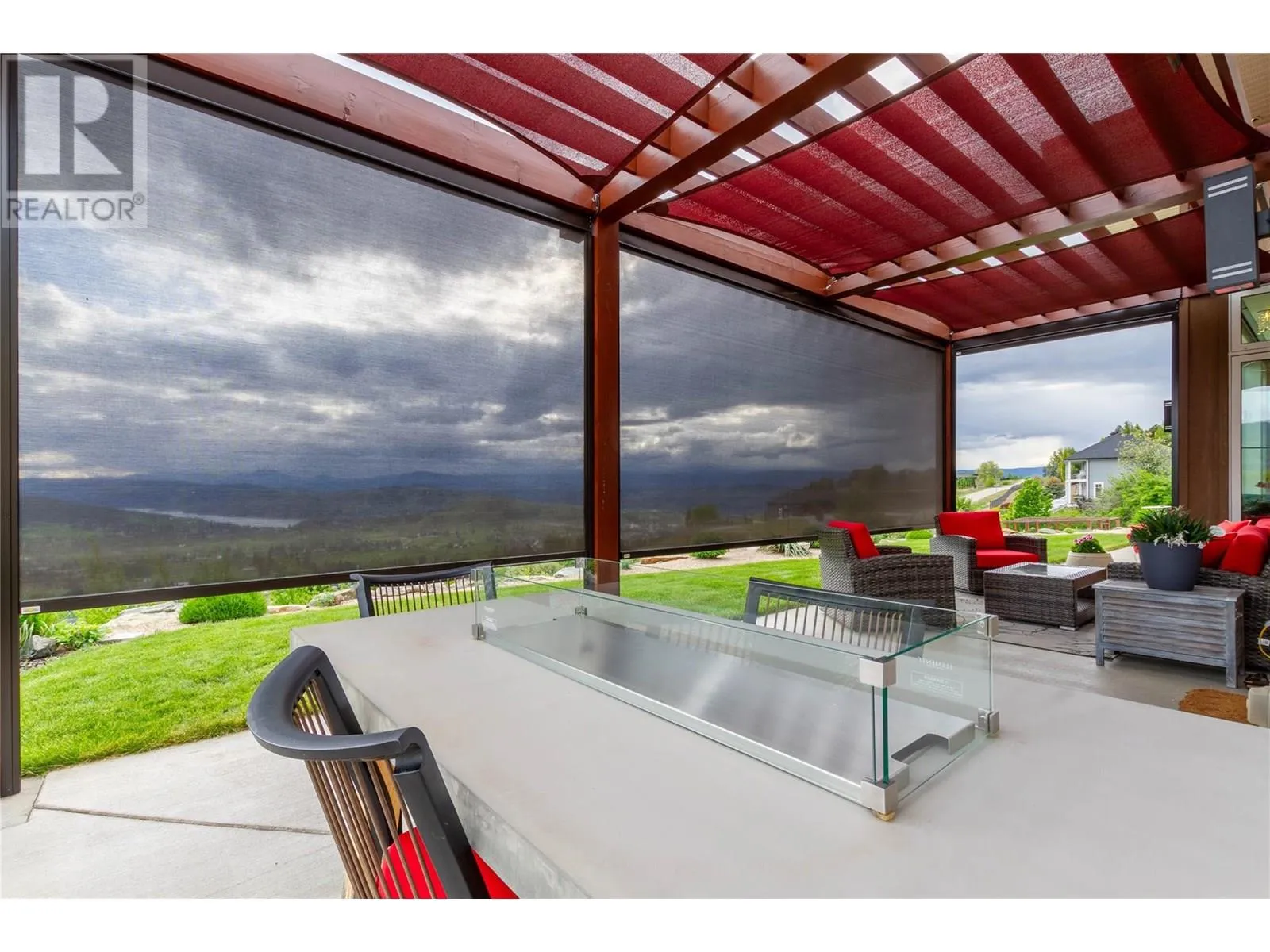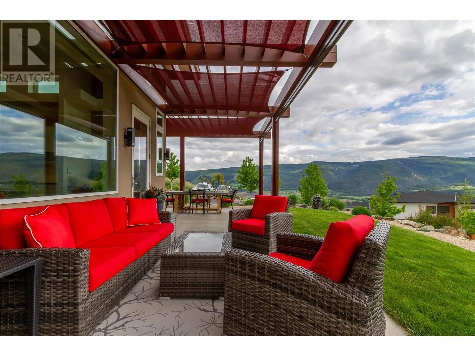 Welcome to 56 Ravine Driveâwhere luxury meets sustainability on 5.48 private acres with breathtaking over 180-degree views of Kalamalka Lake and the Coldstream Valley. This 2017 Tommie Award-winning custom rancher, built by Keith Construction, is rated Built Green Platinum and designed for energy efficiency and comfort. All your living is on one level with 3 bedrooms, 3 bathrooms, plus a dedicated office space and bonus flex room. Soaring 14â ceilings, southwest exposure, and expansive windows flood the home with natural light and showcase the stunning scenery. Enjoy in-floor radiant heat beneath engineered hardwood flooring throughout. The chef-inspired kitchen, perfect for entertaining, features high-gloss European cabinetry, sleek quartz countertops, and top of the line appliances including an induction cooktop, indoor electric grill, and a double-drawer Fisher Paykel dishwasher. Built with R32 exterior walls, passive solar features, and motorized window coverings plus exterior sun shades, this home is a comfortable, peaceful, and modern retreat. Step outside to beautifully landscaped grounds (room for a pool) with 6-zone irrigation, a custom water feature, and a gated entry. Enjoy an extra detached double garage for all your toys! Direct access to the Coldstream Ranchlands and Grey Canal trails offers an unmatched lifestyle for nature lovers within a 10-minute drive to downtown Vernon. (id:27476)