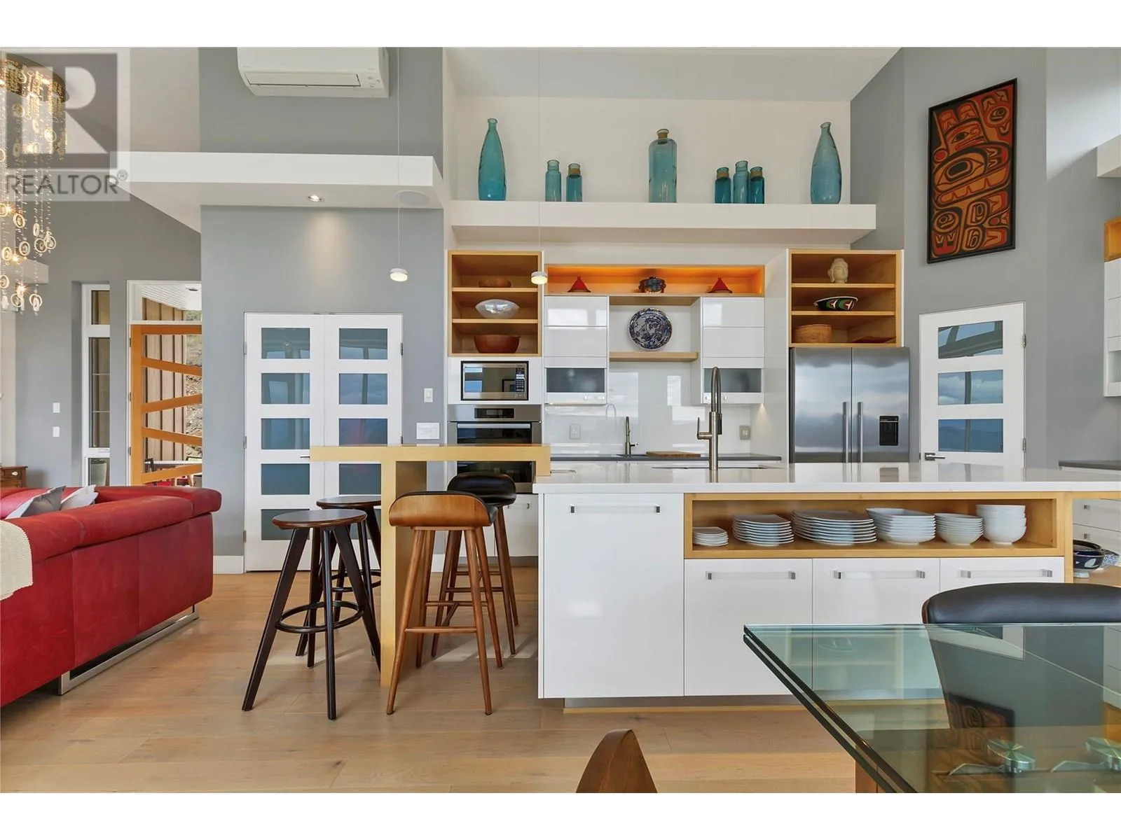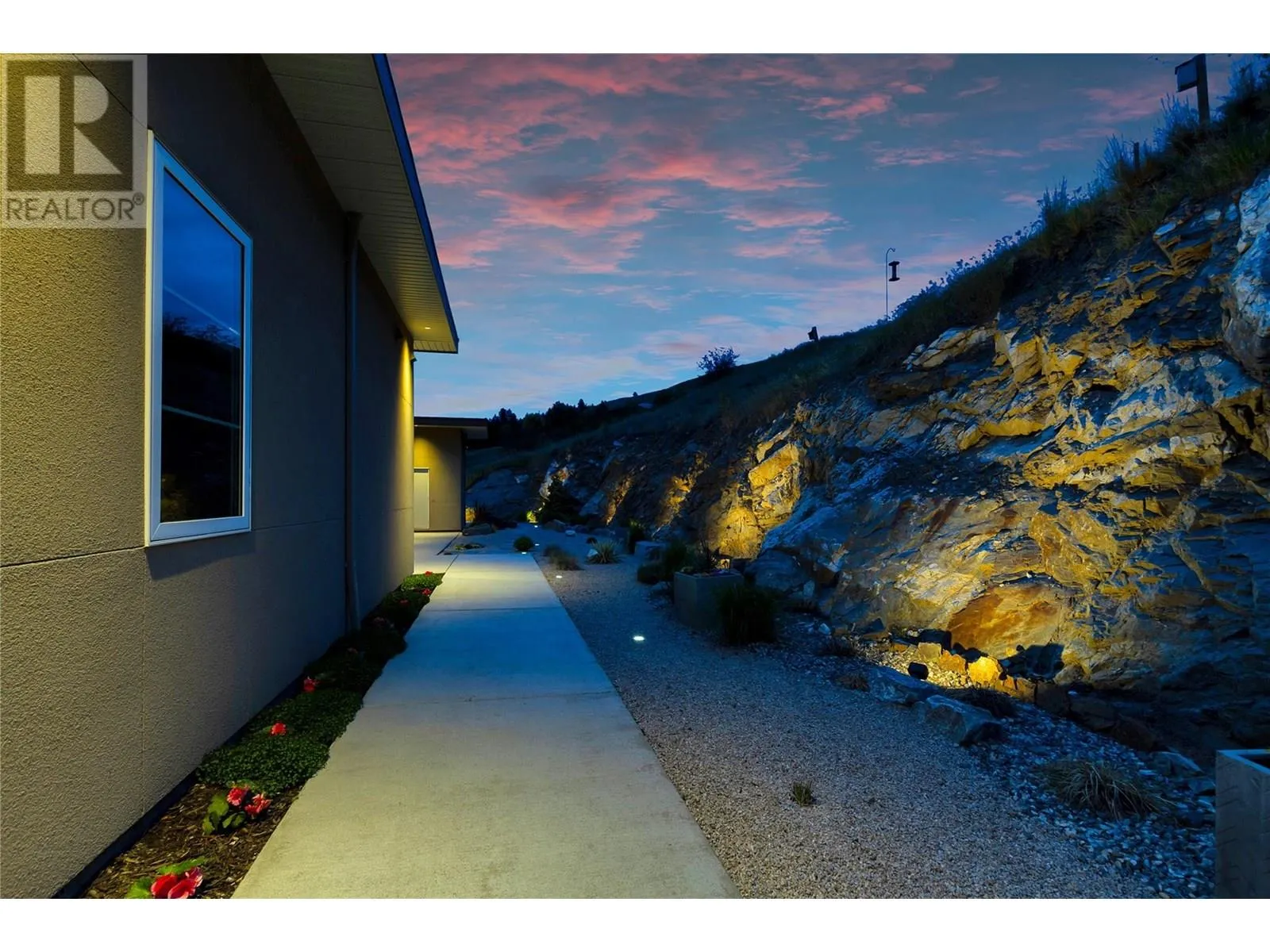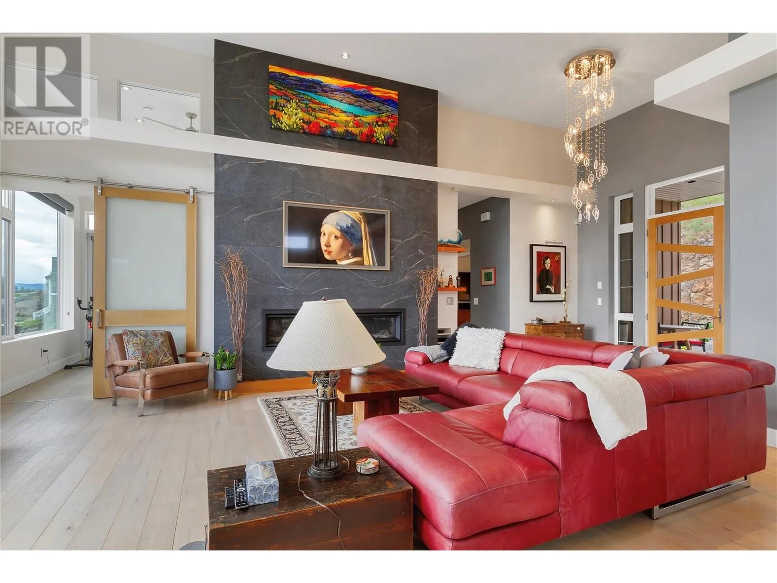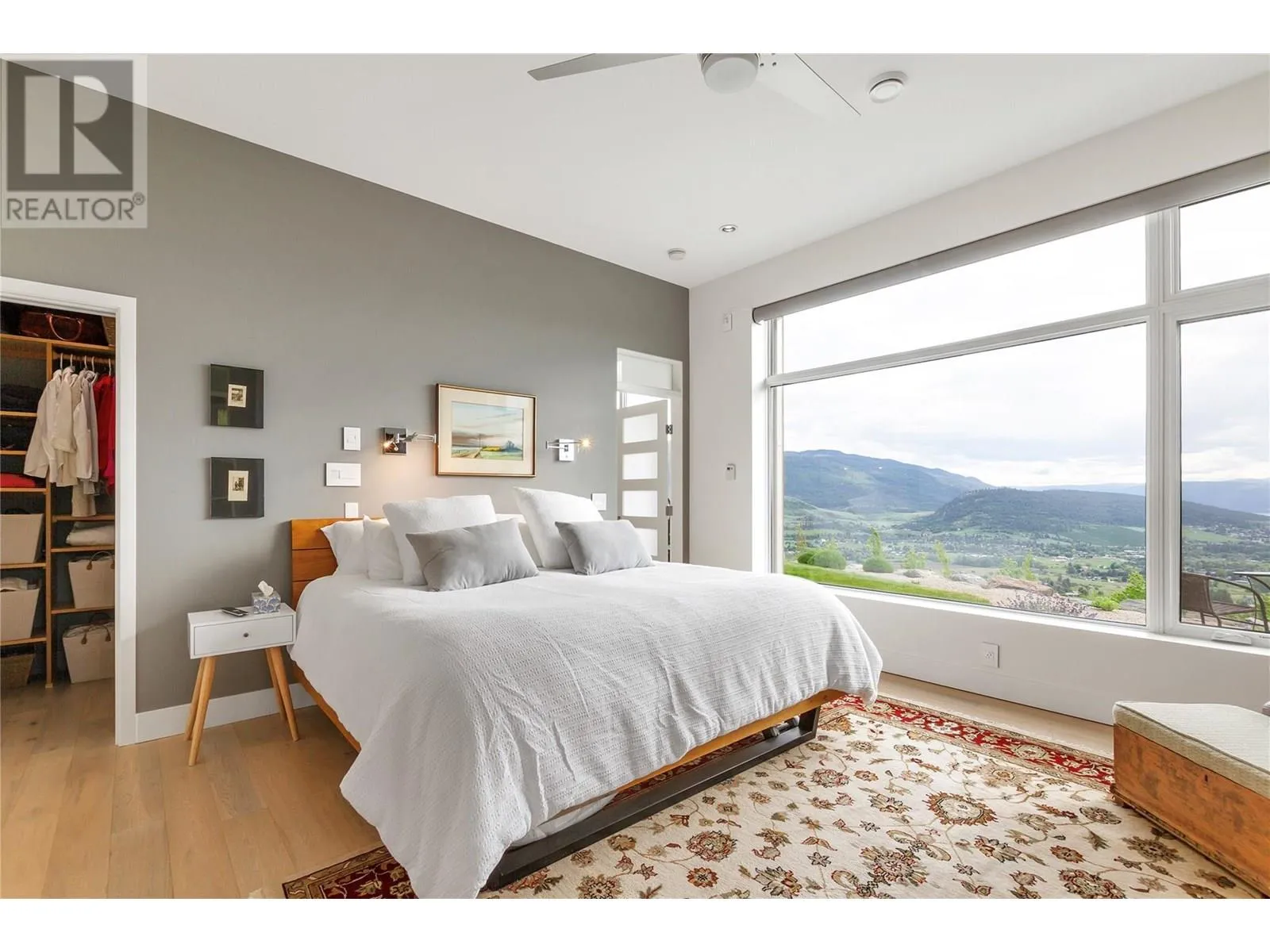 Welcome to 56 Ravine Driveâwhere luxury meets sustainability on 5.48 private acres with breathtaking over 180-degree views of Kalamalka Lake and the Coldstream Valley. This 2017 Tommie Award-winning custom rancher, built by Keith Construction, is rated Built Green Platinum and designed for energy efficiency and comfort. All your living is on one level with 3 bedrooms, 3 bathrooms, plus a dedicated office space and bonus flex room. Soaring 14â ceilings, southwest exposure, and expansive windows flood the home with natural light and showcase the stunning scenery. Enjoy in-floor radiant heat beneath engineered hardwood flooring throughout. The chef-inspired kitchen, perfect for entertaining, features high-gloss European cabinetry, sleek quartz countertops, and top of the line appliances including an induction cooktop, indoor electric grill, and a double-drawer Fisher Paykel dishwasher. Built with R32 exterior walls, passive solar features, and motorized window coverings plus exterior sun shades, this home is a comfortable, peaceful, and modern retreat. Step outside to beautifully landscaped grounds (room for a pool) with 6-zone irrigation, a custom water feature, and a gated entry. Enjoy an extra detached double garage for all your toys! Direct access to the Coldstream Ranchlands and Grey Canal trails offers an unmatched lifestyle for nature lovers within a 10-minute drive to downtown Vernon. (id:27476)
