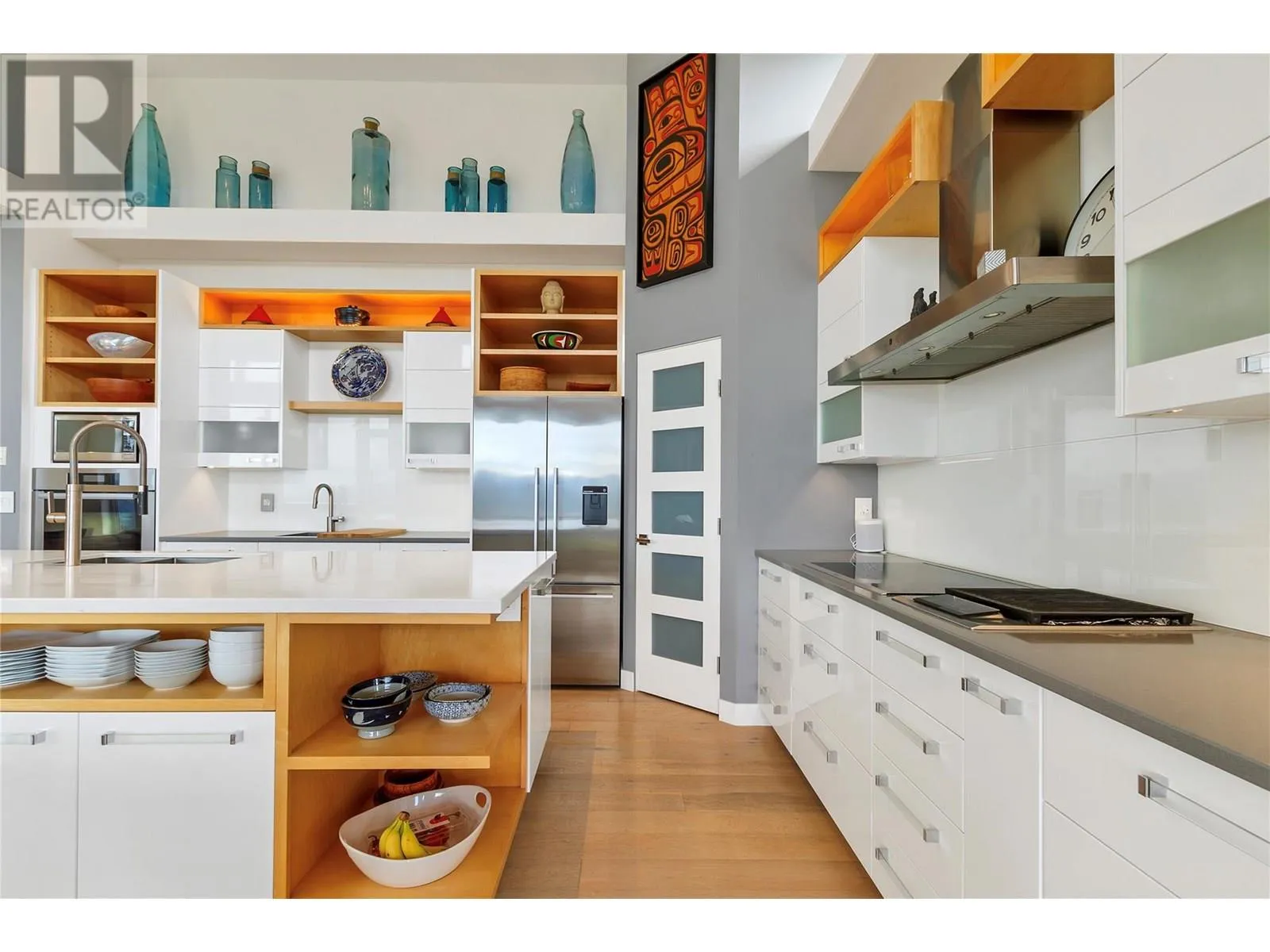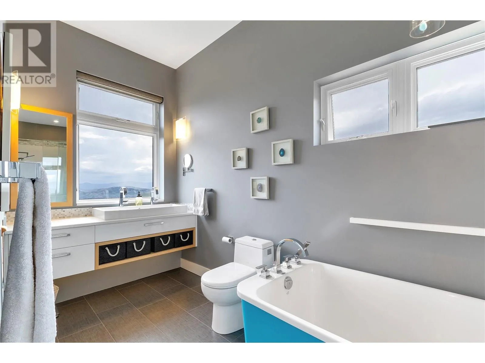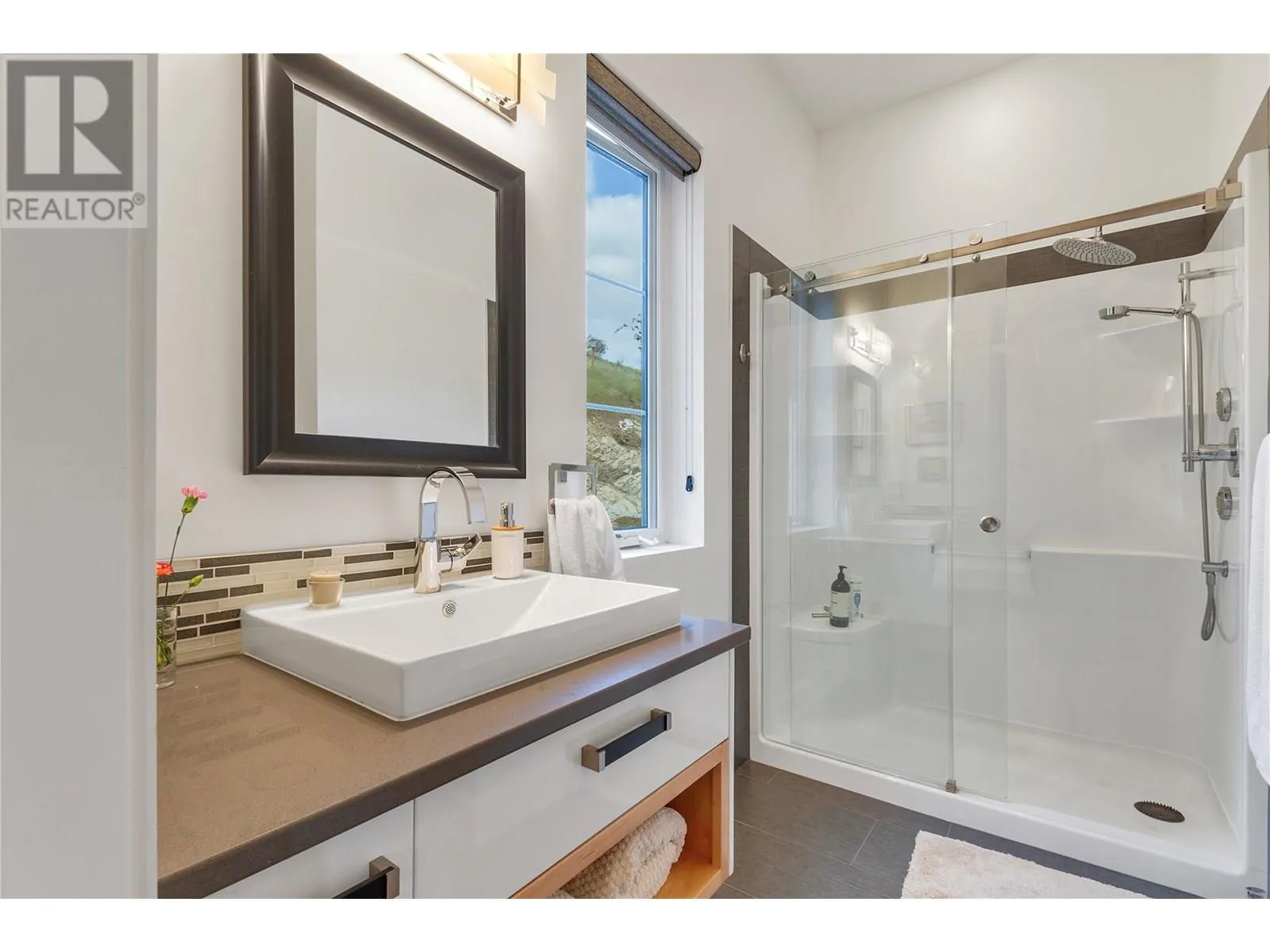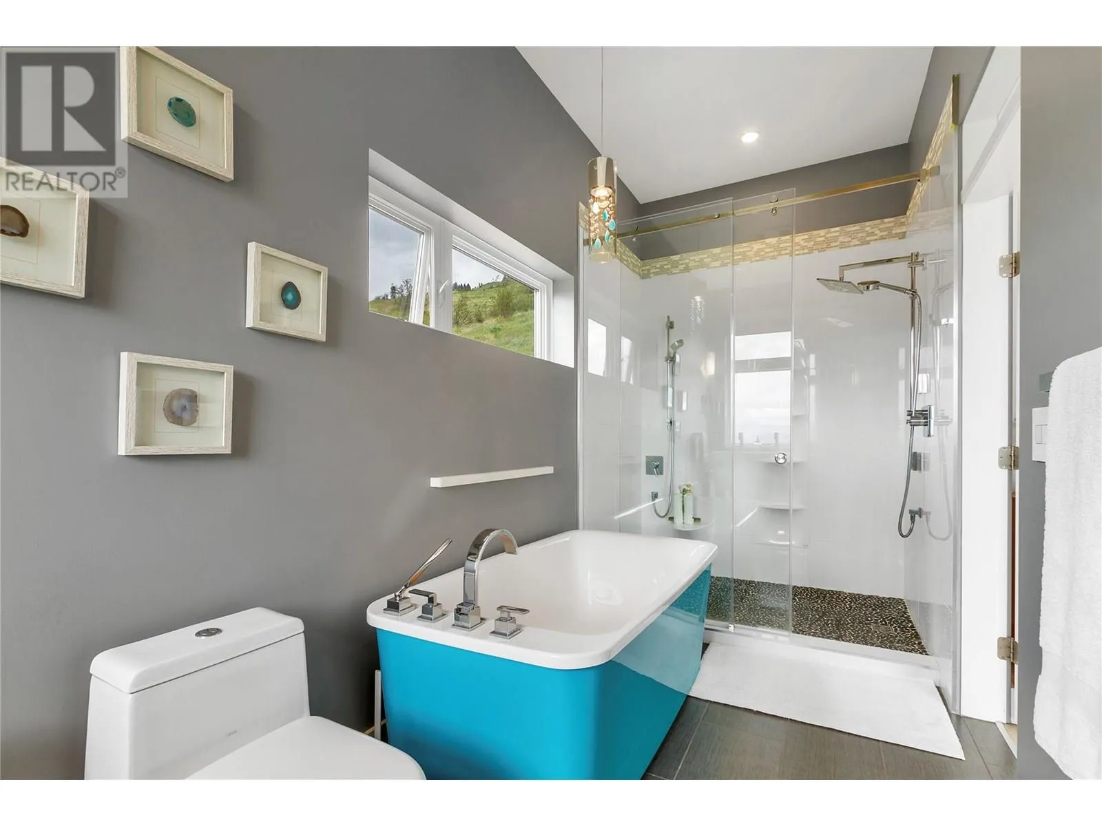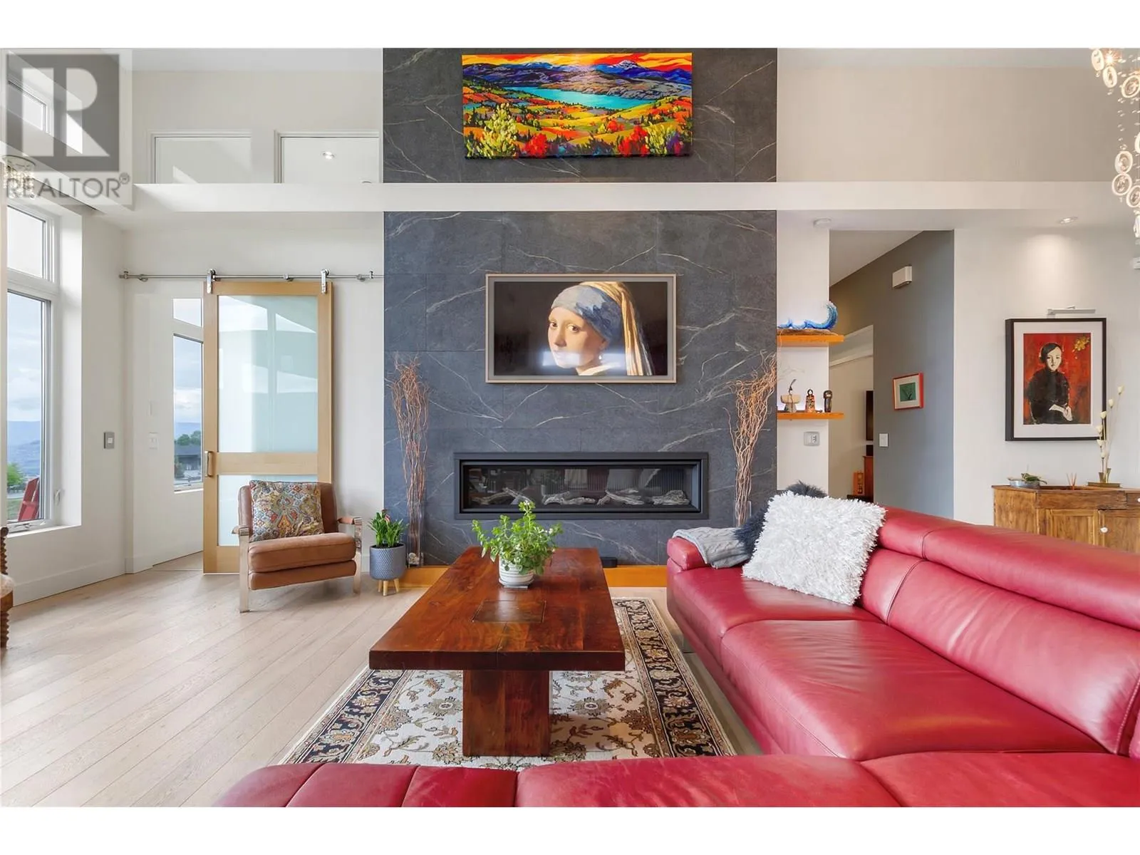 Welcome to 56 Ravine Driveâwhere luxury meets sustainability on 5.48 private acres with breathtaking over 180-degree views of Kalamalka Lake and the Coldstream Valley. This 2017 Tommie Award-winning custom rancher, built by Keith Construction, is rated Built Green Platinum and designed for energy efficiency and comfort. All your living is on one level with 3 bedrooms, 3 bathrooms, plus a dedicated office space and bonus flex room. Soaring 14â ceilings, southwest exposure, and expansive windows flood the home with natural light and showcase the stunning scenery. Enjoy in-floor radiant heat beneath engineered hardwood flooring throughout. The chef-inspired kitchen, perfect for entertaining, features high-gloss European cabinetry, sleek quartz countertops, and top of the line appliances including an induction cooktop, indoor electric grill, and a double-drawer Fisher Paykel dishwasher. Built with R32 exterior walls, passive solar features, and motorized window coverings plus exterior sun shades, this home is a comfortable, peaceful, and modern retreat. Step outside to beautifully landscaped grounds (room for a pool) with 6-zone irrigation, a custom water feature, and a gated entry. Enjoy an extra detached double garage for all your toys! Direct access to the Coldstream Ranchlands and Grey Canal trails offers an unmatched lifestyle for nature lovers within a 10-minute drive to downtown Vernon. (id:27476)