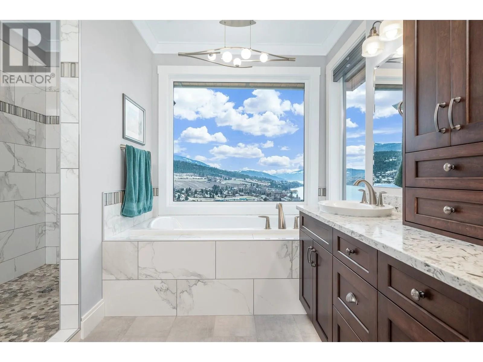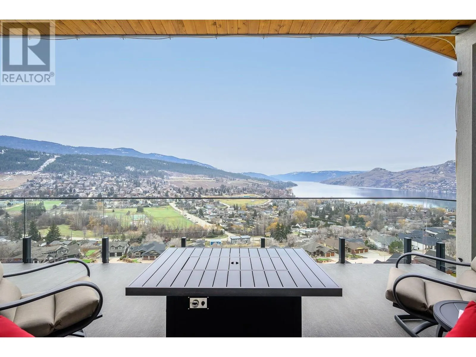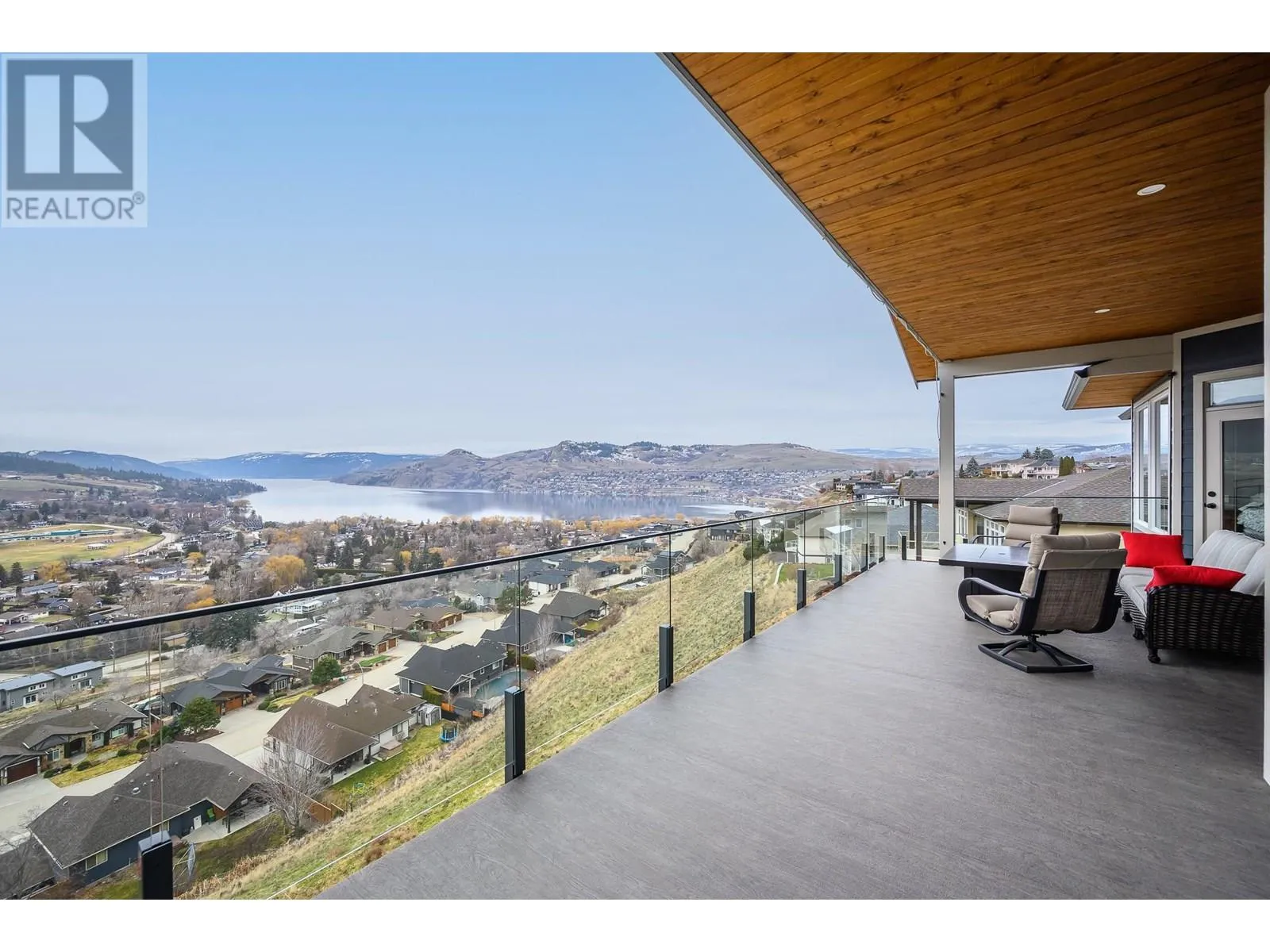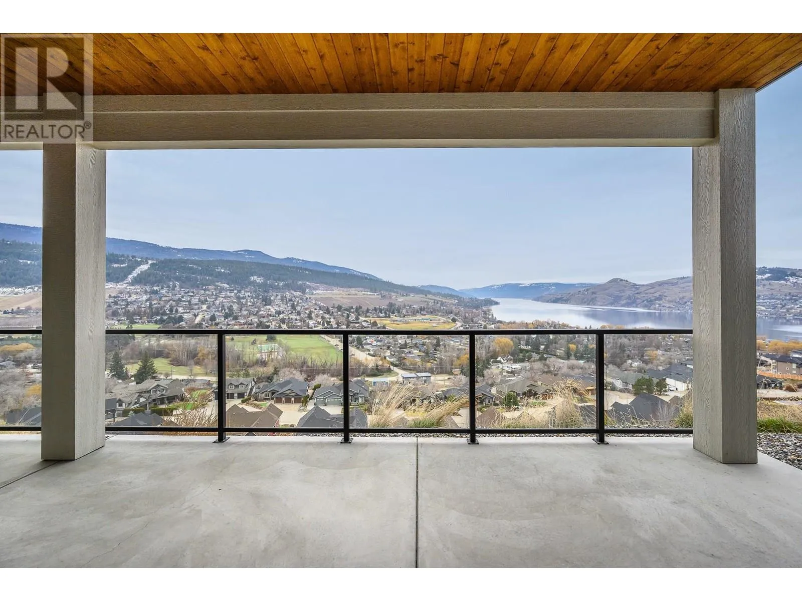 Welcome to your dream home in the heart of Coldstream, where jaw-dropping views of Kalamalka Lake take center stage. Thoughtfully designed and built in 2020, this 5-bedroom walkout rancher perfectly blends modern elegance with relaxed comfort, making it ideal for families, entertainers, and anyone who loves the outdoors. From the moment you walk through the door, youâre greeted with wall-to-wall windows that capture panoramic lake views and flood the space with natural light. The open-concept main floor showcases a stunning chefâs kitchen with quartz countertops, custom cabinetry, a large island, and a gas rangeâideal for cooking, hosting, or just hanging out with family. The living area is anchored by a floor-to-ceiling stone fireplace, creating warmth and ambiance year-round. The main floor primary suite is a true retreat with a spa-like ensuite featuring double vanities, a tiled walk-in shower, a soaker tub with lake views, and a spacious walk-in closet. Two additional bedrooms (or home office/flex space) and elevated details throughoutâlike engineered hardwood flooring, crown moldings, and designer lightingâadd to the refined but comfortable feel. Step outside to your covered deck and take in the unobstructed lake and valley viewsâperfect for morning coffee or sunset wine. Downstairs, the bright walkout level is packed with potential. With a roughed-in kitchen, itâs ideal for a future suite or multigenerational living. It includes a second gas fireplace, full bathroom with double vanity, large rec room, and two more generously sized bedroomsâeach with double closets. Other standout features include: Hot water on demand High-efficiency two-stage furnace Oversized double garage with lift-height ceilings RV/boat parking Quiet, desirable location close to Kal Lake, great schools, and the Okanagan Rail Trail If youâve been searching for a modern home with unbeatable views and everyday functionality, this is the one. Come experience Coldstream living at its finest. (id:27476)