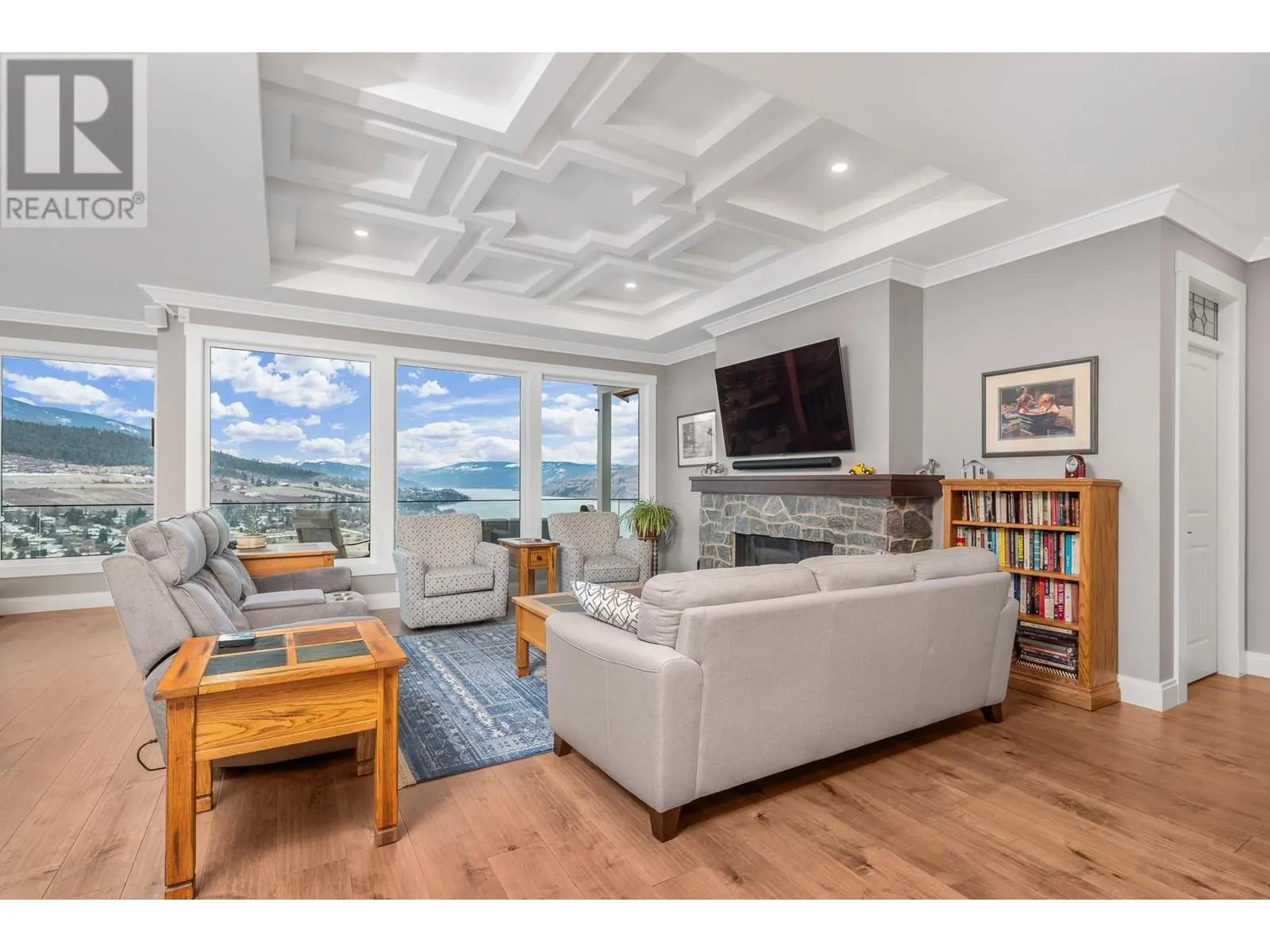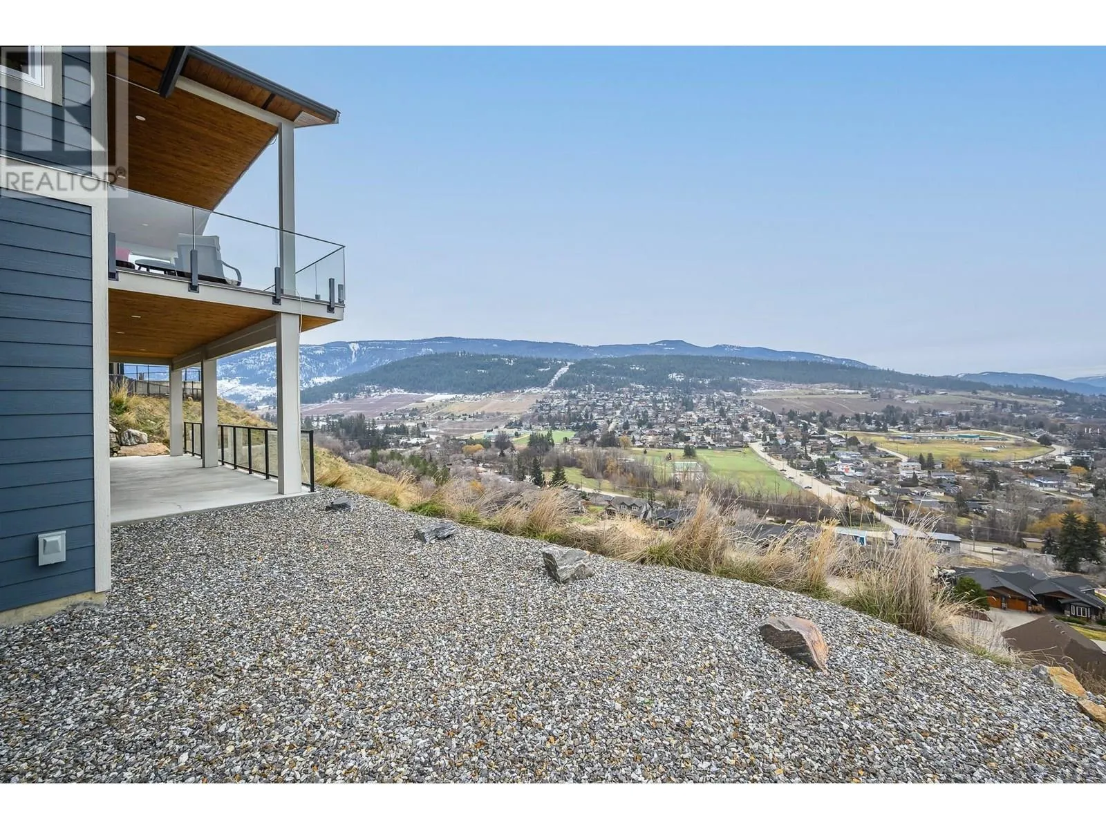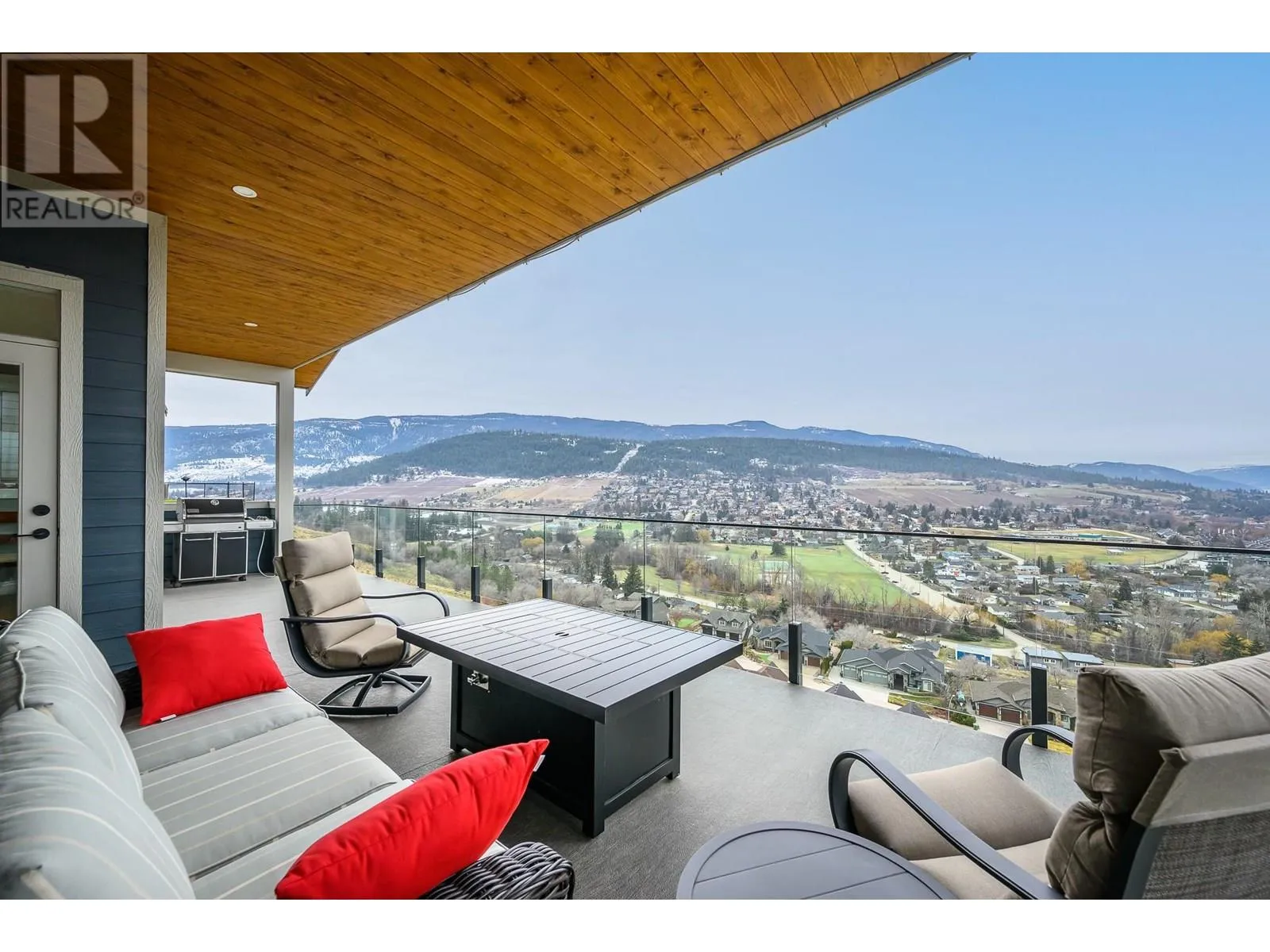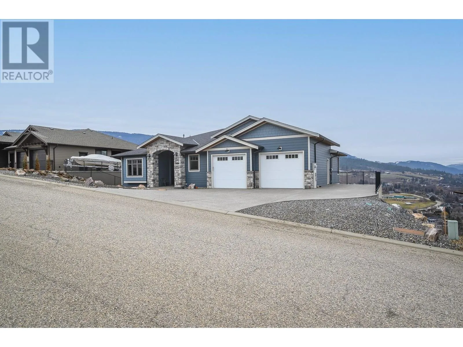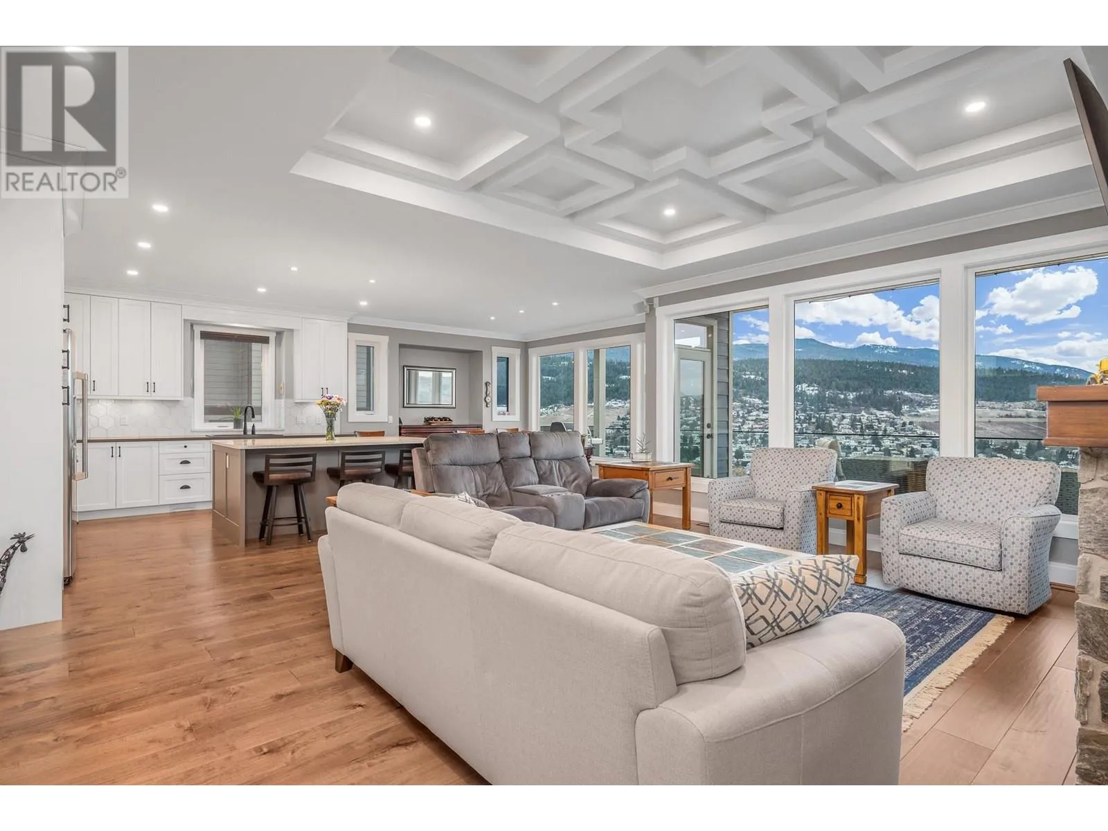 Welcome to your dream home in the heart of Coldstream, where jaw-dropping views of Kalamalka Lake take center stage. Thoughtfully designed and built in 2020, this 5-bedroom walkout rancher perfectly blends modern elegance with relaxed comfort, making it ideal for families, entertainers, and anyone who loves the outdoors. From the moment you walk through the door, youâre greeted with wall-to-wall windows that capture panoramic lake views and flood the space with natural light. The open-concept main floor showcases a stunning chefâs kitchen with quartz countertops, custom cabinetry, a large island, and a gas rangeâideal for cooking, hosting, or just hanging out with family. The living area is anchored by a floor-to-ceiling stone fireplace, creating warmth and ambiance year-round. The main floor primary suite is a true retreat with a spa-like ensuite featuring double vanities, a tiled walk-in shower, a soaker tub with lake views, and a spacious walk-in closet. Two additional bedrooms (or home office/flex space) and elevated details throughoutâlike engineered hardwood flooring, crown moldings, and designer lightingâadd to the refined but comfortable feel. Step outside to your covered deck and take in the unobstructed lake and valley viewsâperfect for morning coffee or sunset wine. Downstairs, the bright walkout level is packed with potential. With a roughed-in kitchen, itâs ideal for a future suite or multigenerational living. It includes a second gas fireplace, full bathroom with double vanity, large rec room, and two more generously sized bedroomsâeach with double closets. Other standout features include: Hot water on demand High-efficiency two-stage furnace Oversized double garage with lift-height ceilings RV/boat parking Quiet, desirable location close to Kal Lake, great schools, and the Okanagan Rail Trail If youâve been searching for a modern home with unbeatable views and everyday functionality, this is the one. Come experience Coldstream living at its finest. (id:27476)