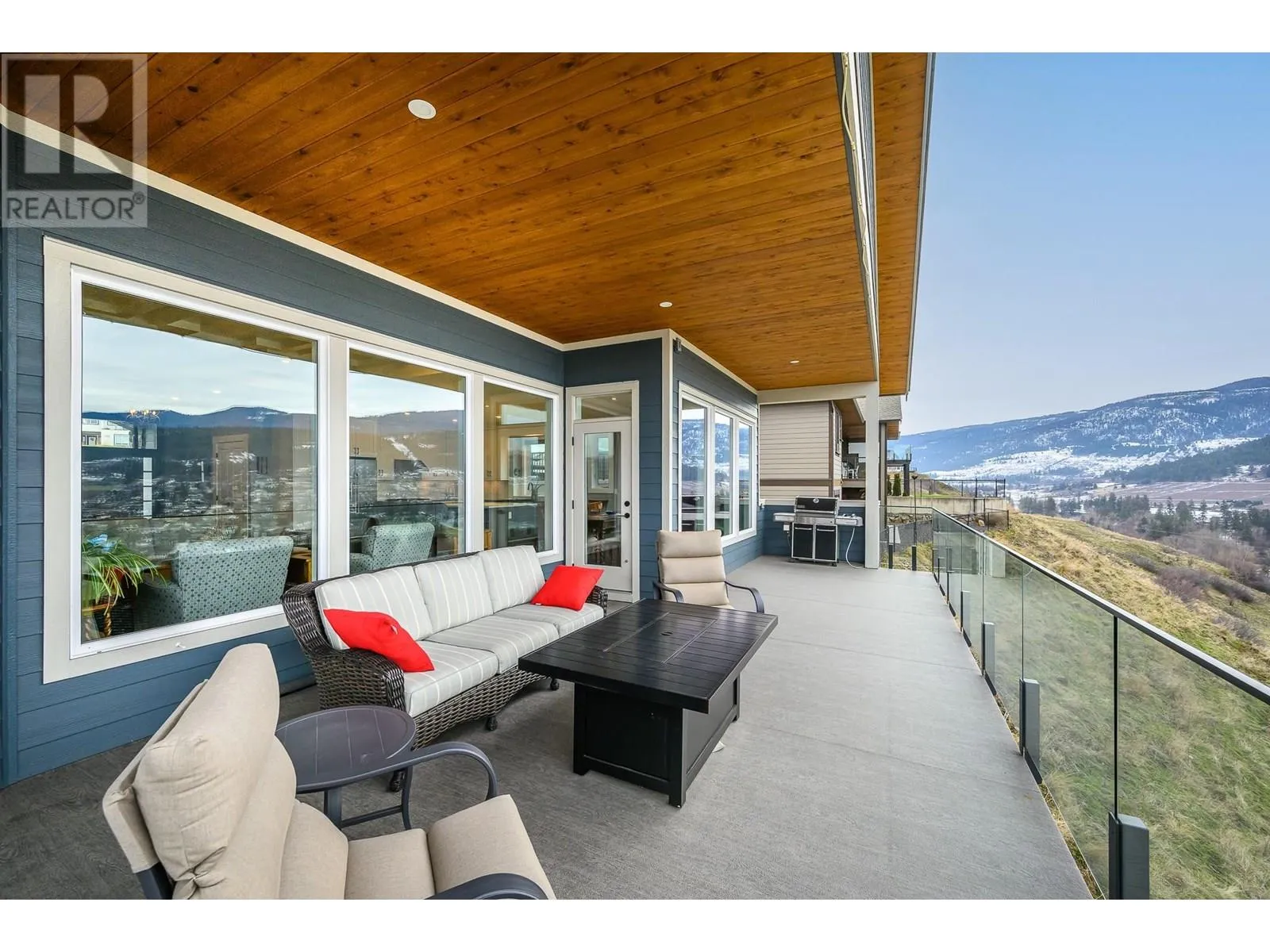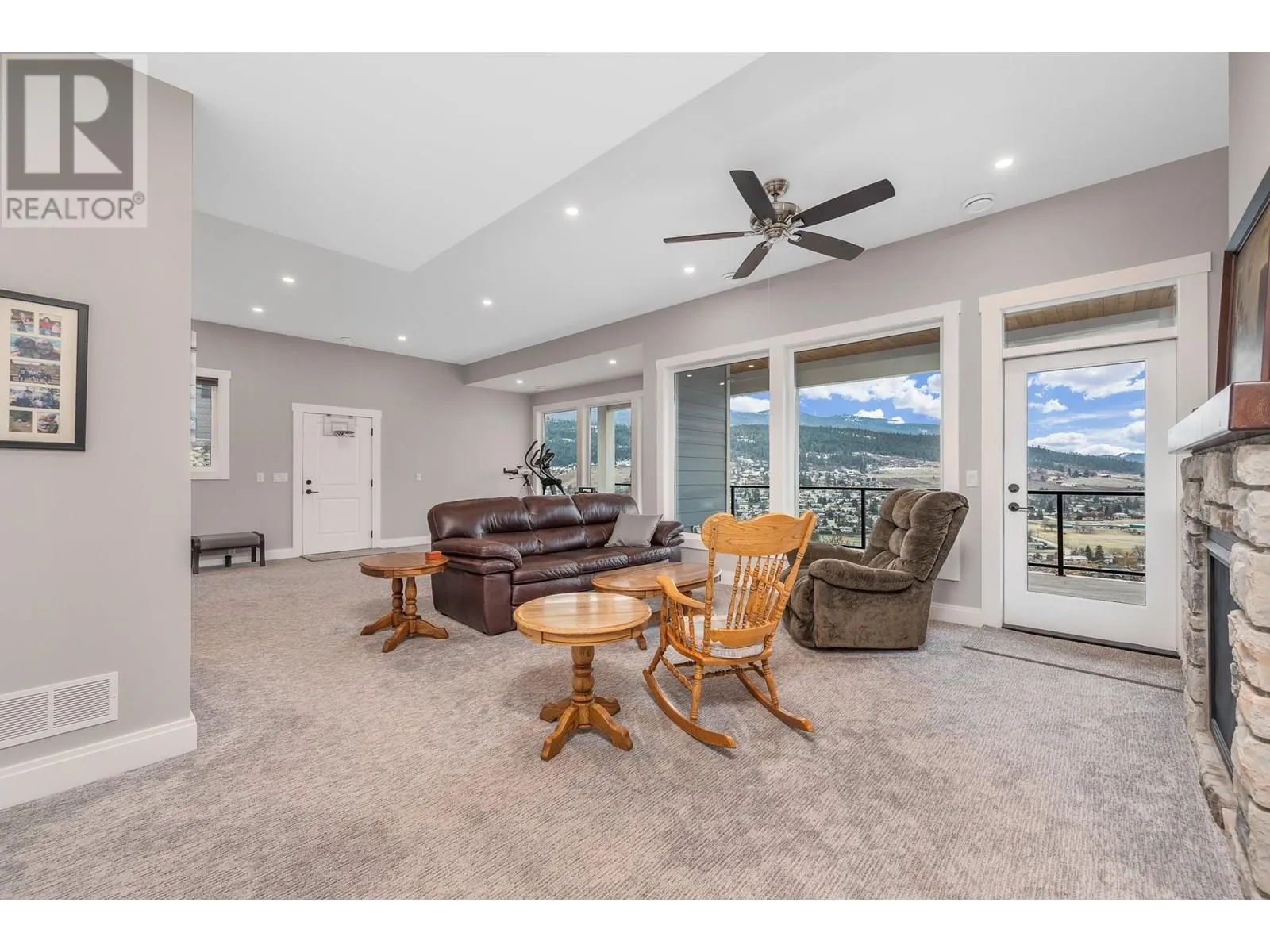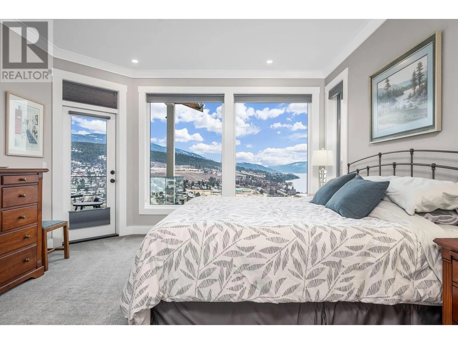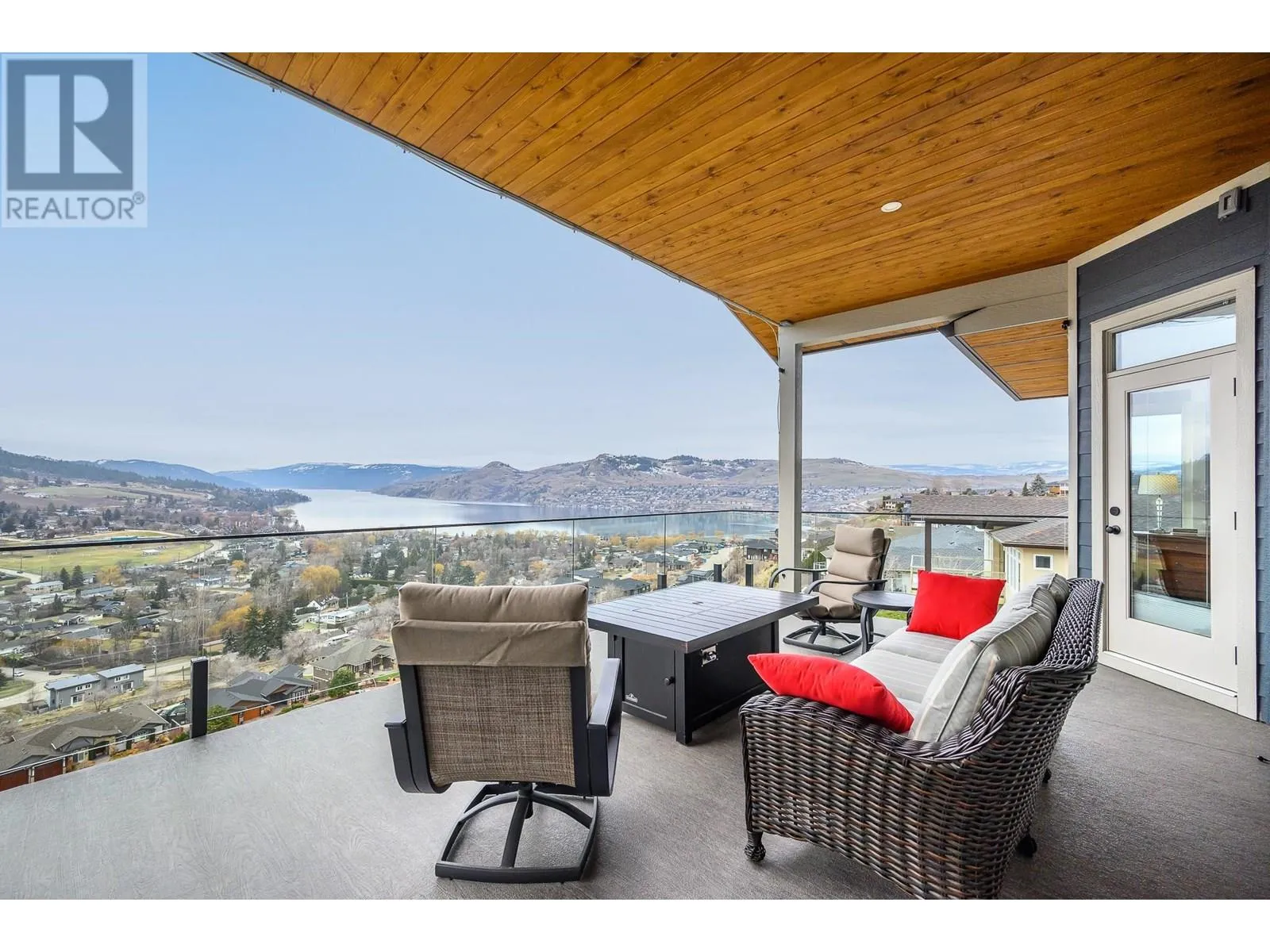 Welcome to your dream home in the heart of Coldstream, where jaw-dropping views of Kalamalka Lake take center stage. Thoughtfully designed and built in 2020, this 5-bedroom walkout rancher perfectly blends modern elegance with relaxed comfort, making it ideal for families, entertainers, and anyone who loves the outdoors. From the moment you walk through the door, youâre greeted with wall-to-wall windows that capture panoramic lake views and flood the space with natural light. The open-concept main floor showcases a stunning chefâs kitchen with quartz countertops, custom cabinetry, a large island, and a gas rangeâideal for cooking, hosting, or just hanging out with family. The living area is anchored by a floor-to-ceiling stone fireplace, creating warmth and ambiance year-round. The main floor primary suite is a true retreat with a spa-like ensuite featuring double vanities, a tiled walk-in shower, a soaker tub with lake views, and a spacious walk-in closet. Two additional bedrooms (or home office/flex space) and elevated details throughoutâlike engineered hardwood flooring, crown moldings, and designer lightingâadd to the refined but comfortable feel. Step outside to your covered deck and take in the unobstructed lake and valley viewsâperfect for morning coffee or sunset wine. Downstairs, the bright walkout level is packed with potential. With a roughed-in kitchen, itâs ideal for a future suite or multigenerational living. It includes a second gas fireplace, full bathroom with double vanity, large rec room, and two more generously sized bedroomsâeach with double closets. Other standout features include: Hot water on demand High-efficiency two-stage furnace Oversized double garage with lift-height ceilings RV/boat parking Quiet, desirable location close to Kal Lake, great schools, and the Okanagan Rail Trail If youâve been searching for a modern home with unbeatable views and everyday functionality, this is the one. Come experience Coldstream living at its finest. (id:27476)