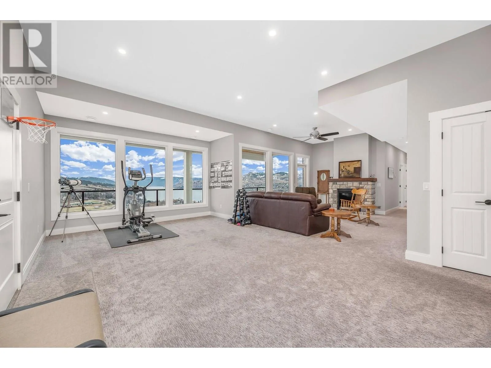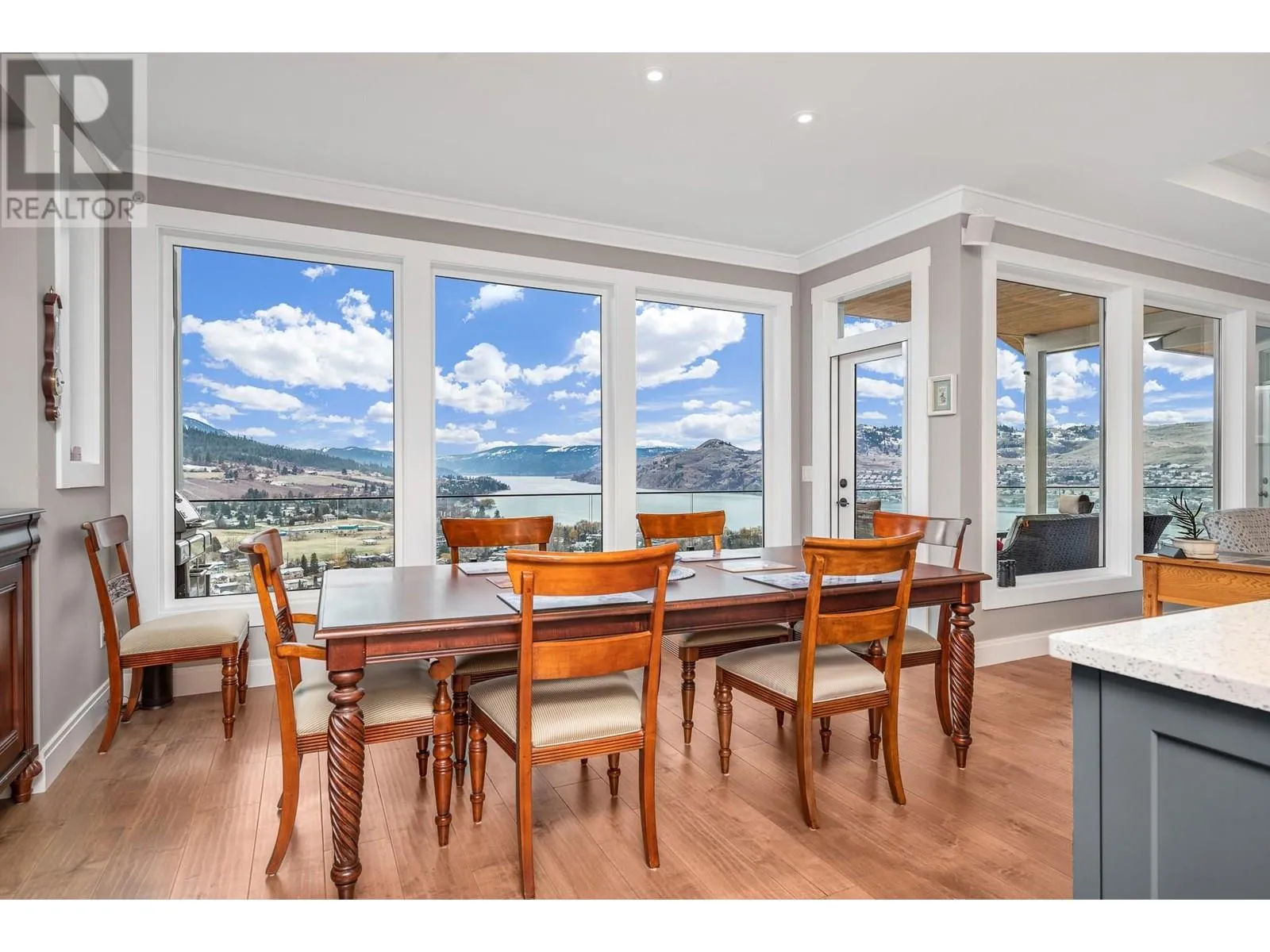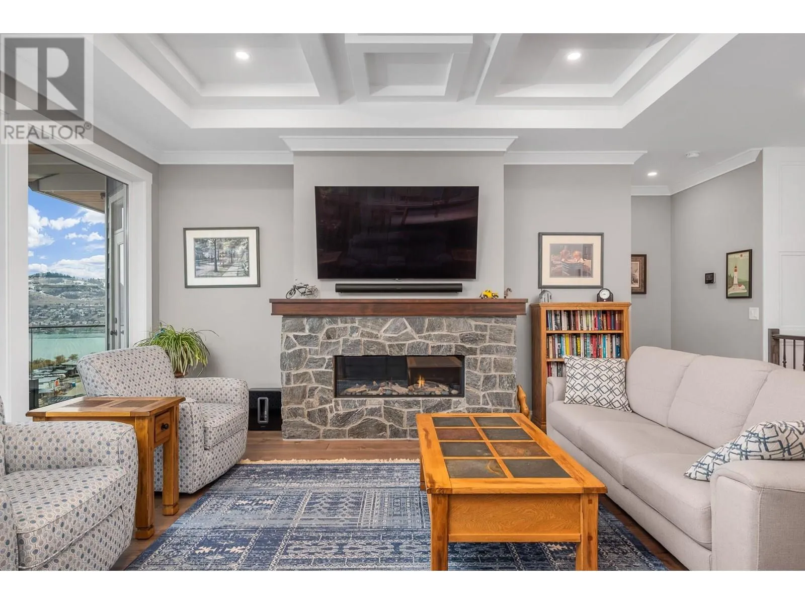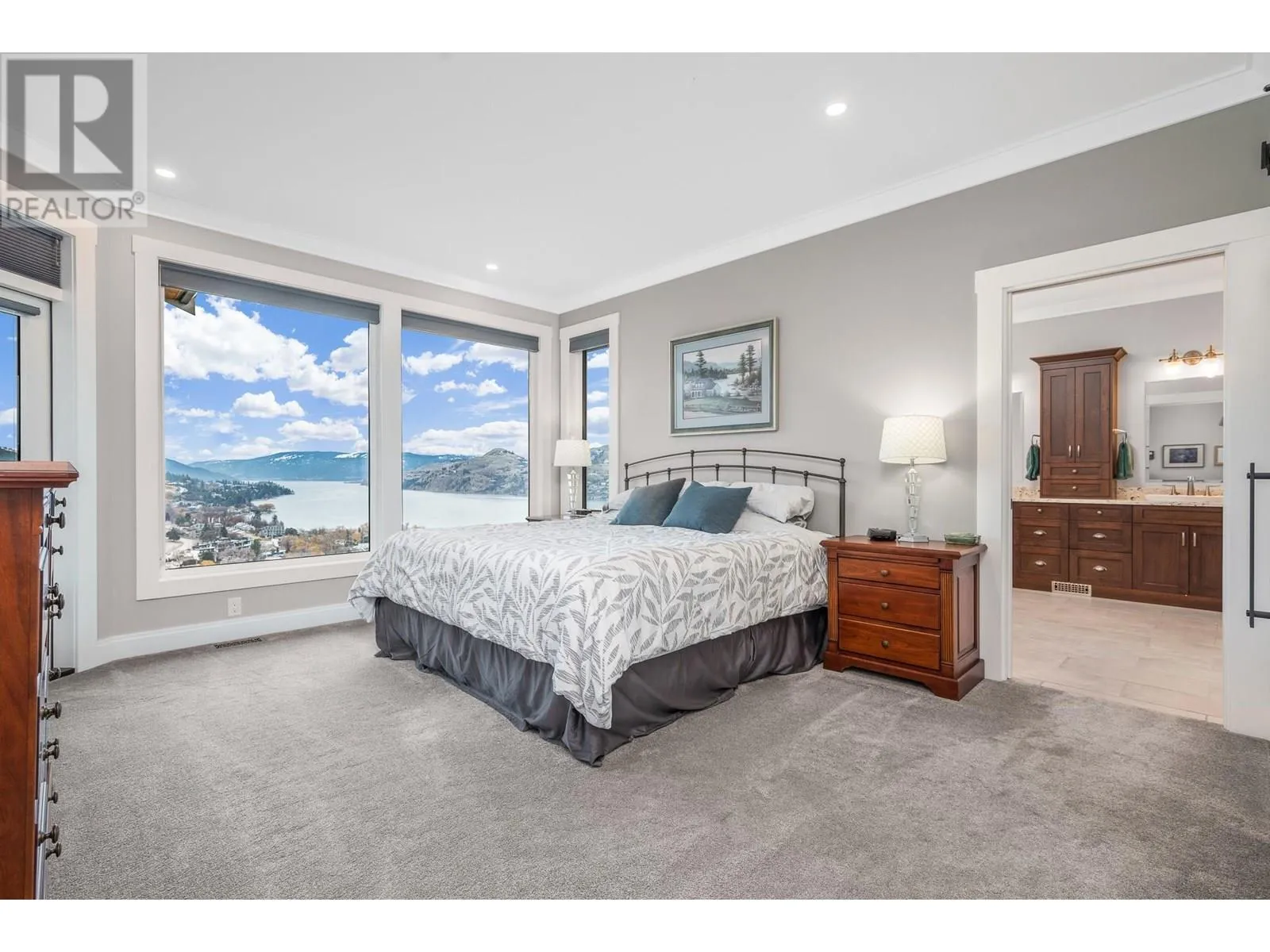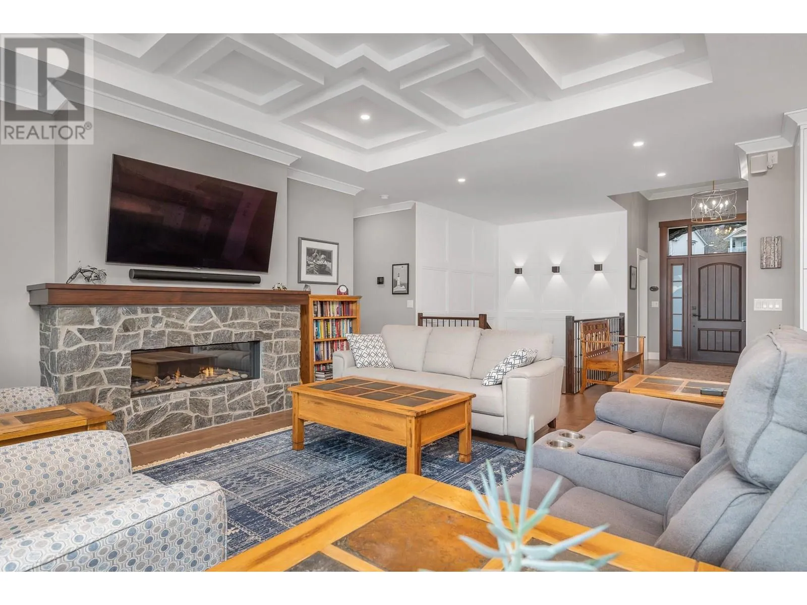 Welcome to your dream home in the heart of Coldstream, where jaw-dropping views of Kalamalka Lake take center stage. Thoughtfully designed and built in 2020, this 5-bedroom walkout rancher perfectly blends modern elegance with relaxed comfort, making it ideal for families, entertainers, and anyone who loves the outdoors. From the moment you walk through the door, youâre greeted with wall-to-wall windows that capture panoramic lake views and flood the space with natural light. The open-concept main floor showcases a stunning chefâs kitchen with quartz countertops, custom cabinetry, a large island, and a gas rangeâideal for cooking, hosting, or just hanging out with family. The living area is anchored by a floor-to-ceiling stone fireplace, creating warmth and ambiance year-round. The main floor primary suite is a true retreat with a spa-like ensuite featuring double vanities, a tiled walk-in shower, a soaker tub with lake views, and a spacious walk-in closet. Two additional bedrooms (or home office/flex space) and elevated details throughoutâlike engineered hardwood flooring, crown moldings, and designer lightingâadd to the refined but comfortable feel. Step outside to your covered deck and take in the unobstructed lake and valley viewsâperfect for morning coffee or sunset wine. Downstairs, the bright walkout level is packed with potential. With a roughed-in kitchen, itâs ideal for a future suite or multigenerational living. It includes a second gas fireplace, full bathroom with double vanity, large rec room, and two more generously sized bedroomsâeach with double closets. Other standout features include: Hot water on demand High-efficiency two-stage furnace Oversized double garage with lift-height ceilings RV/boat parking Quiet, desirable location close to Kal Lake, great schools, and the Okanagan Rail Trail If youâve been searching for a modern home with unbeatable views and everyday functionality, this is the one. Come experience Coldstream living at its finest. (id:27476)