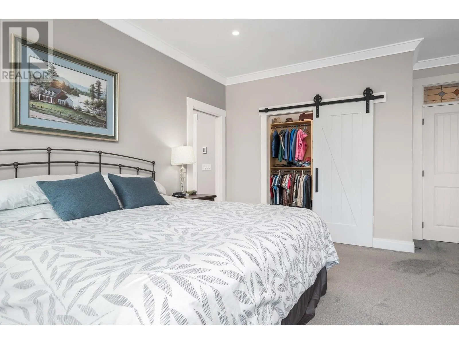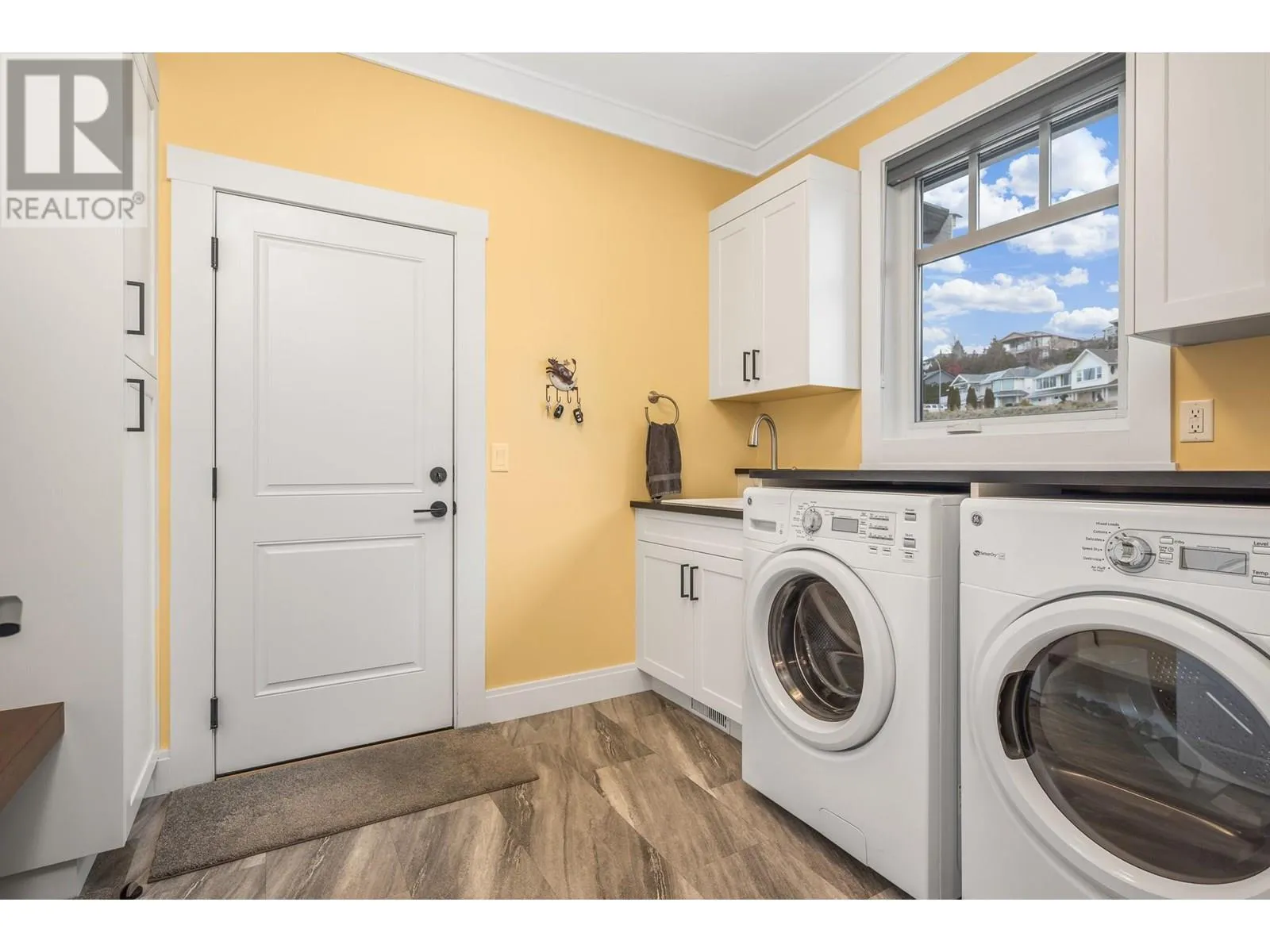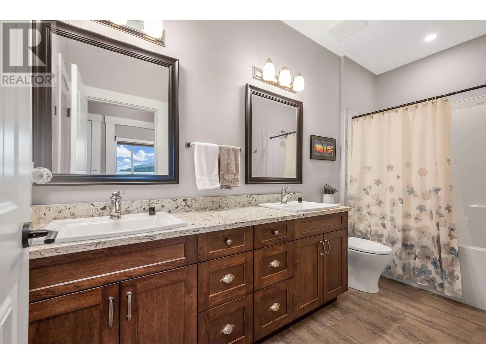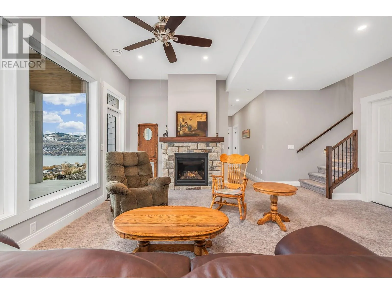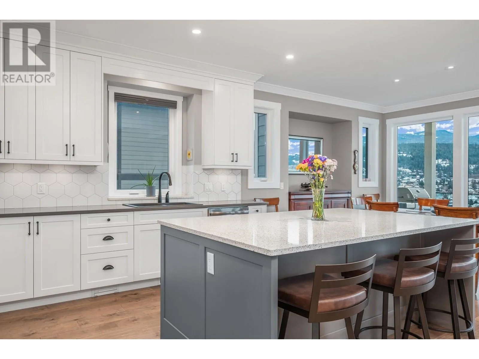 Welcome to your dream home in the heart of Coldstream, where jaw-dropping views of Kalamalka Lake take center stage. Thoughtfully designed and built in 2020, this 5-bedroom walkout rancher perfectly blends modern elegance with relaxed comfort, making it ideal for families, entertainers, and anyone who loves the outdoors. From the moment you walk through the door, youâre greeted with wall-to-wall windows that capture panoramic lake views and flood the space with natural light. The open-concept main floor showcases a stunning chefâs kitchen with quartz countertops, custom cabinetry, a large island, and a gas rangeâideal for cooking, hosting, or just hanging out with family. The living area is anchored by a floor-to-ceiling stone fireplace, creating warmth and ambiance year-round. The main floor primary suite is a true retreat with a spa-like ensuite featuring double vanities, a tiled walk-in shower, a soaker tub with lake views, and a spacious walk-in closet. Two additional bedrooms (or home office/flex space) and elevated details throughoutâlike engineered hardwood flooring, crown moldings, and designer lightingâadd to the refined but comfortable feel. Step outside to your covered deck and take in the unobstructed lake and valley viewsâperfect for morning coffee or sunset wine. Downstairs, the bright walkout level is packed with potential. With a roughed-in kitchen, itâs ideal for a future suite or multigenerational living. It includes a second gas fireplace, full bathroom with double vanity, large rec room, and two more generously sized bedroomsâeach with double closets. Other standout features include: Hot water on demand High-efficiency two-stage furnace Oversized double garage with lift-height ceilings RV/boat parking Quiet, desirable location close to Kal Lake, great schools, and the Okanagan Rail Trail If youâve been searching for a modern home with unbeatable views and everyday functionality, this is the one. Come experience Coldstream living at its finest. (id:27476)