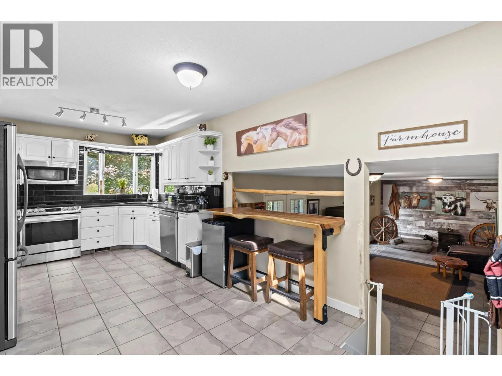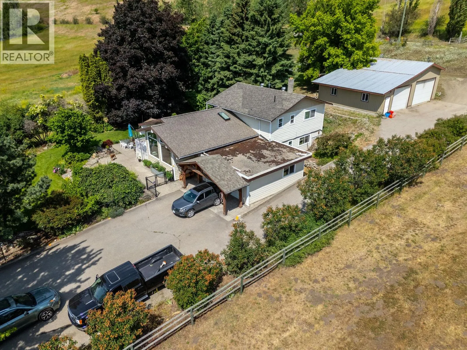 10.04 acre parcel in the Coldstream area of the Okanagan Valley. This residence boasts over 3,100 square feet of living space, featuring four bedrooms, three bathrooms, a double car garage, and renovations throughout. The living room offers vaulted ceilings to get excess natural light in from your valley views ahead, while your kitchen has stainless steel appliances. Off your deck, you can overlook your private garden/yard area, fenced in for convenience for any dogs. While you drive up the tree lined driveway, you pass by your extensive hay fields, irrigated with dedicated irrigation water; the land could be suitable for a variety of crops. The property is set up perfectly for equestrian uses, with a large barn (with hay loft), extensive cross fencing, and a flat, sanded riding arena (uncovered) at the top of the property. There are two dedicated paddocks with shelters. The insulated three bay workshop (with one pass-through stall) is perfect for a home based business, storage, extra covered parking, and more. This is a perfect hobby-farm or equestrian retreat, with significant dollars invested into the land, the home, and the two large outbuildings to help service any agricultural uses. The equipment/irrigation equipment may be negotiable. (id:27476)