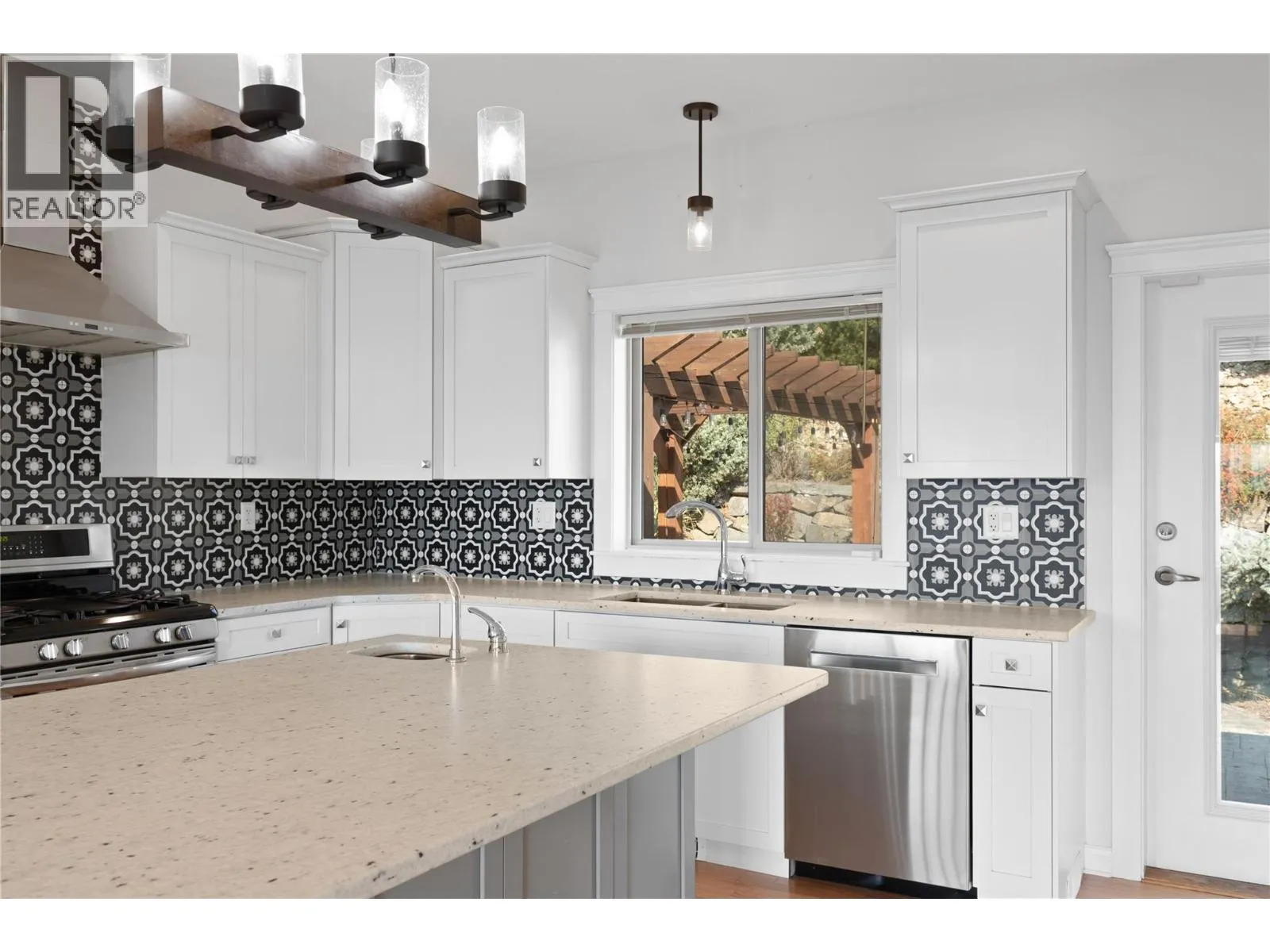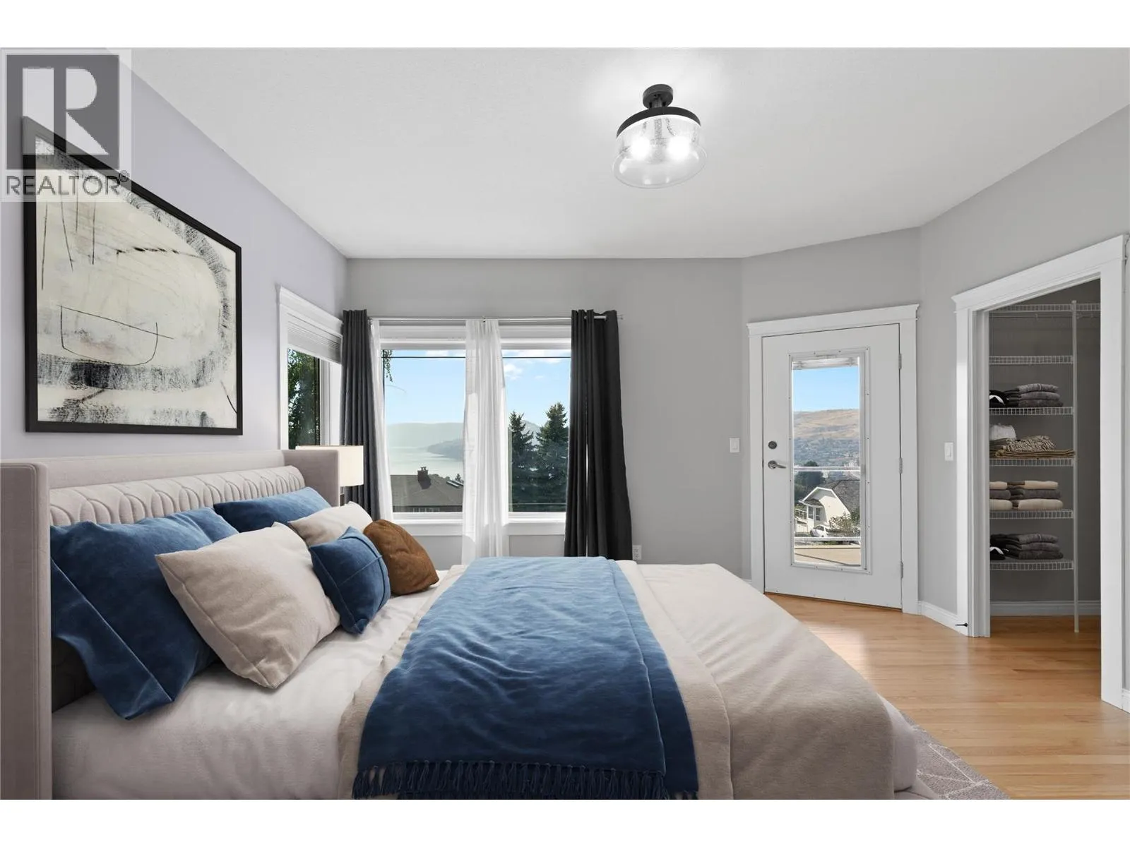 Quick possession possible!! Experience breathtaking, unobstructed views of the shimmering turquoise waters of Kalamalka Lake and the surrounding mountains from this exceptional Okanagan home in sought after Coldstream. This stunning 4 bedroom, 3 bathroom residence, plus a versatile den, is designed to maximize natural light and showcase the picturesque scenery. The bright white kitchen features stainless steel appliances, Island, a gas range, and a spacious pantry, with seamless access to the fenced backyard, perfect for entertaining. Large windows throughout the home frame the lake, offering a view that feels like a living masterpiece. The primary suite is a true retreat, boasting a spa like ensuite with his and hers sinks and a luxurious glass-enclosed shower. On chilly evenings, cozy up by the gas fireplace, which adds warmth and ambiance to the open living space. Outside, the beautifully landscaped backyard is an oasis, complete with a pergola covered patio and a tranquil waterfall feature. Separate entrance to the lower level rec room space gives this home potential for a future suite. A double garage and drip irrigation, complete this Okanagan gem. Don't miss out, book your viewing today! (id:27476)