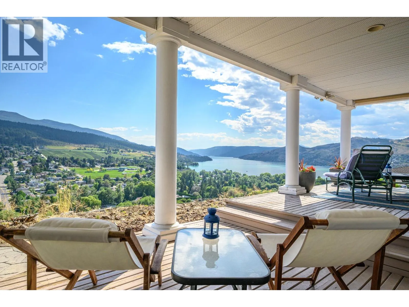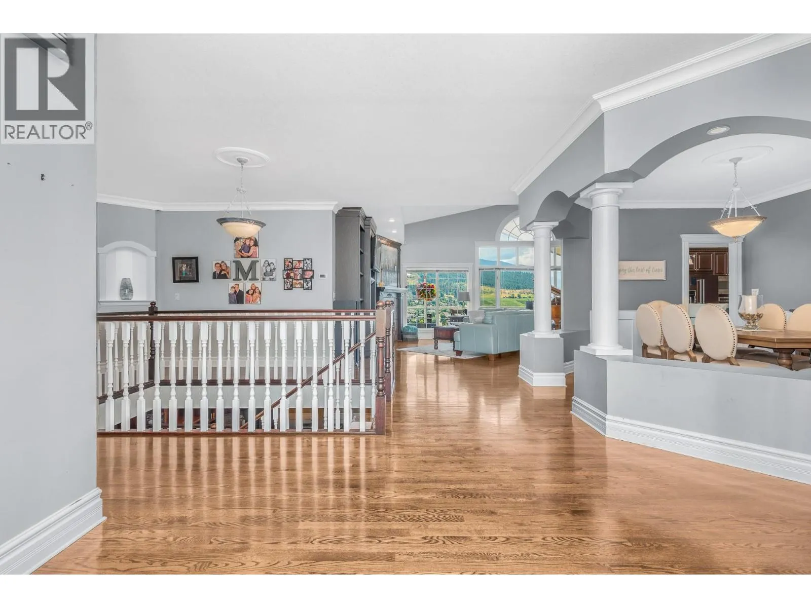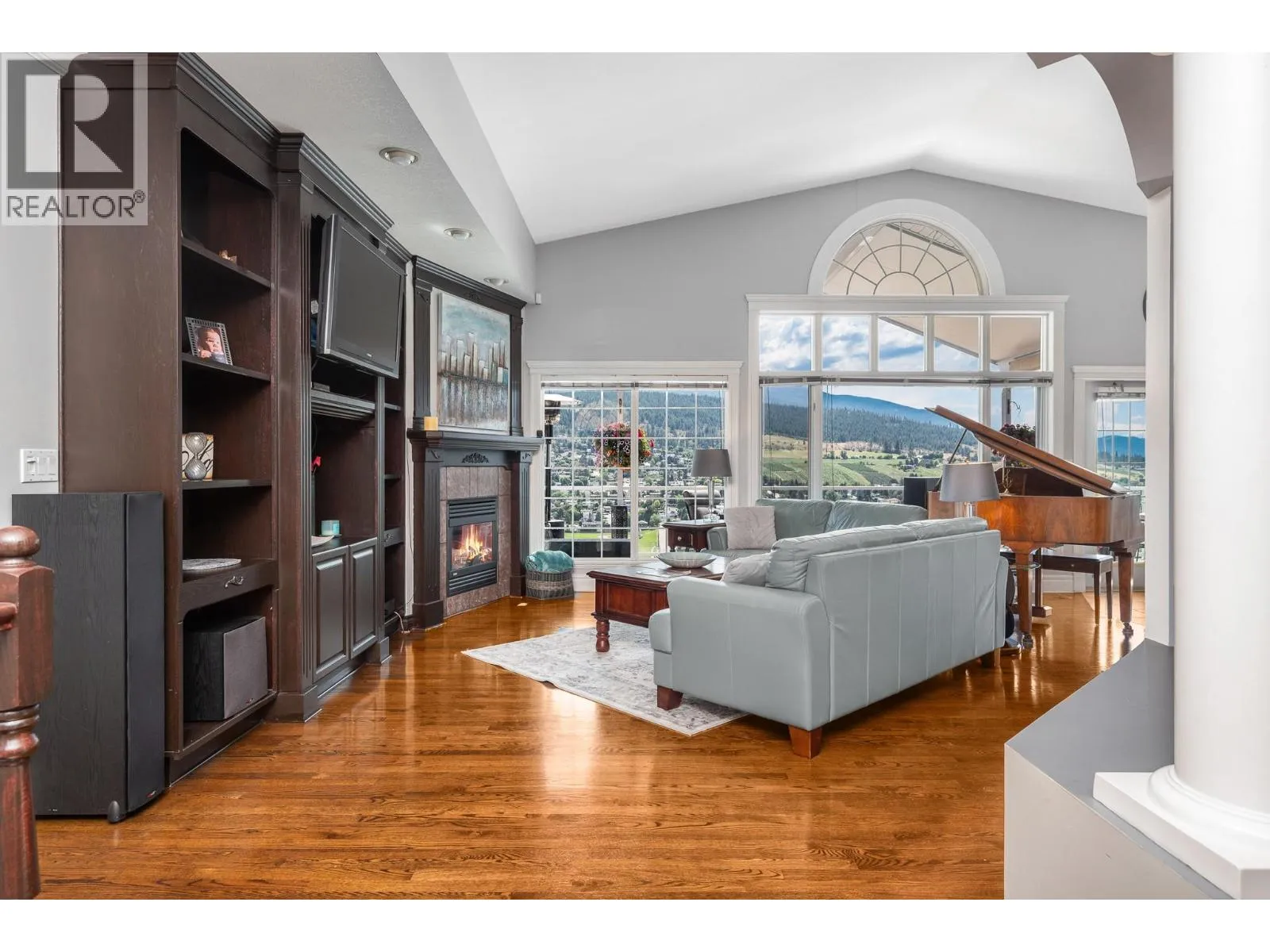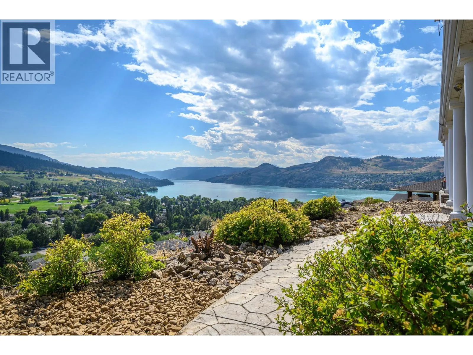 Welcome to 8853 Braeburn Drive, a stunning custom-built 5 bedroom plus office/den 3 bathroom home of over 4500 sq. ft. in the desirable Coldstream Valley Estates. Positioned on a non-thru road to take in panoramic views of Kalamalka Lake and the surrounding hills, this residence blends elegant design with modern comfort. The open-concept main floor starts with the spacious foyer with views to the living room and the spectacular lake view, and just gets better. The main living area is filled with natural light and features soaring ceilings, rich hardwood floors, and large windows framing the spectacular scenery. The chefâs kitchen is equipped with high-end appliances, a mix of tile and granite counters, a large island, and wet bar/coffee station ideal for entertaining. Step outside to the expansive covered deck and enjoy seamless indoor-outdoor living. There are three large bedrooms on the main floor including the spacious primary suite with a luxurious ensuite and a large walk-in closet. Downstairs offers more living space with 2 bedrooms, a huge family room, a media room, a flex room and walkout access to a beautifully landscaped backyard and hot tub area. Suite potential, and just minutes from Vernon, world-class beaches, Silverstar Mtn, golf, hiking and biking trails and more, this outstanding home offers the Okanagan lifestyle at its finest. Lots of parking as well with a large double garage and four outside parking spaces. Take advantage of this rare opportunity today! (id:27476)