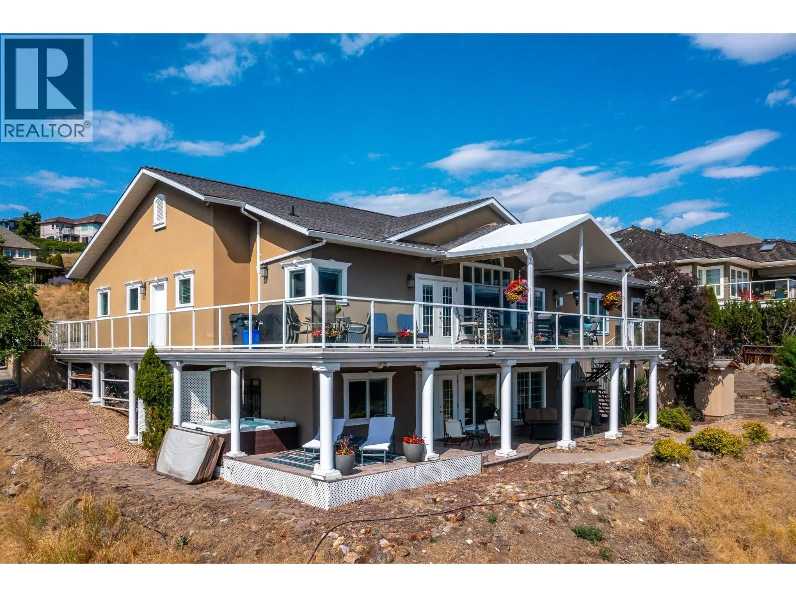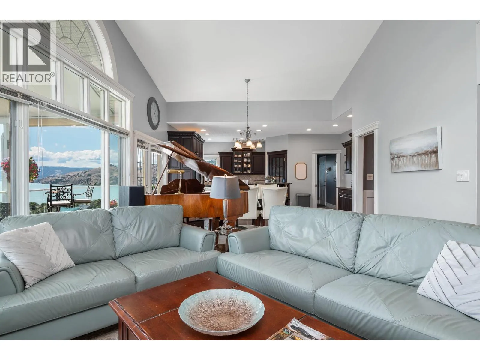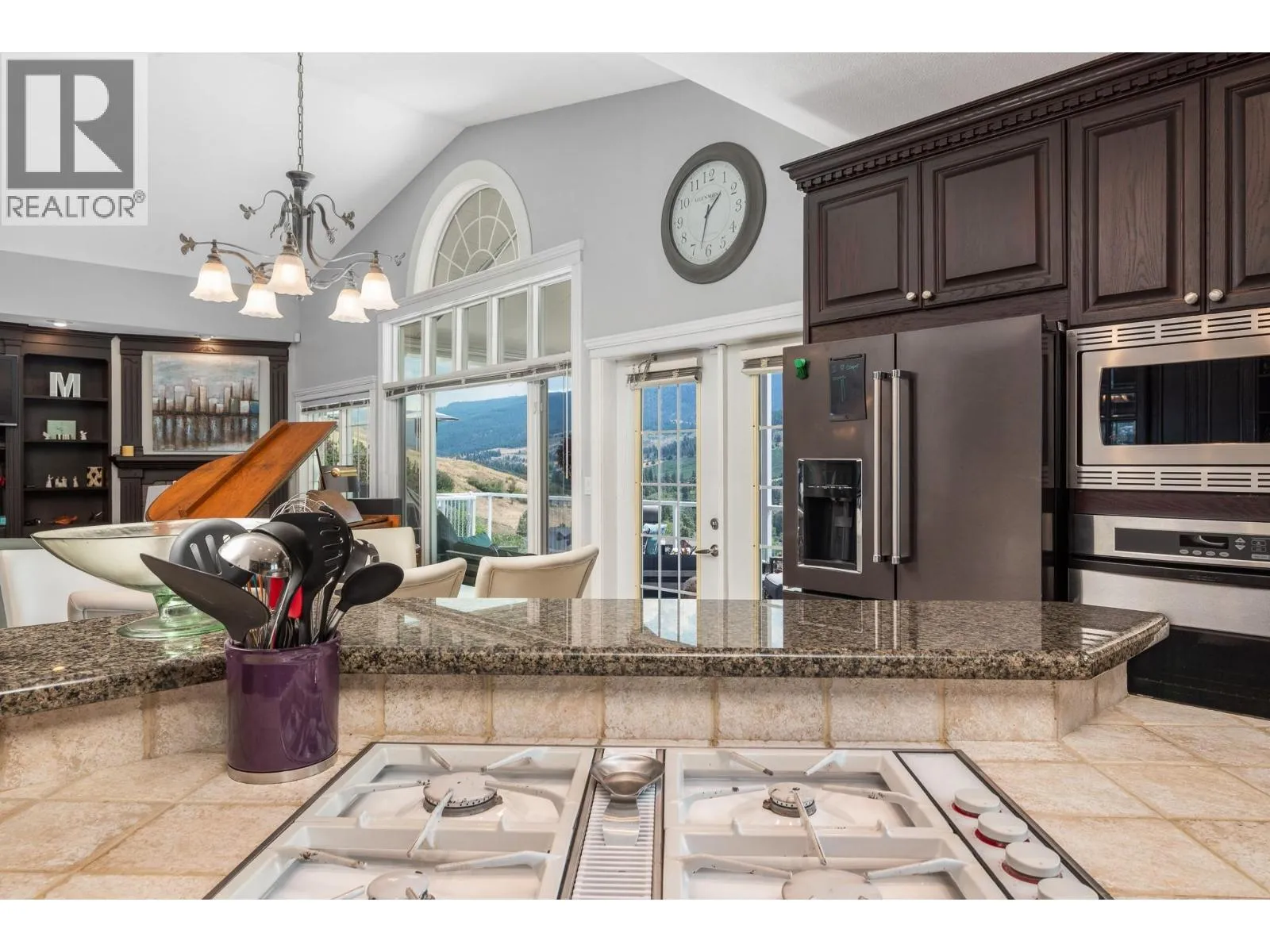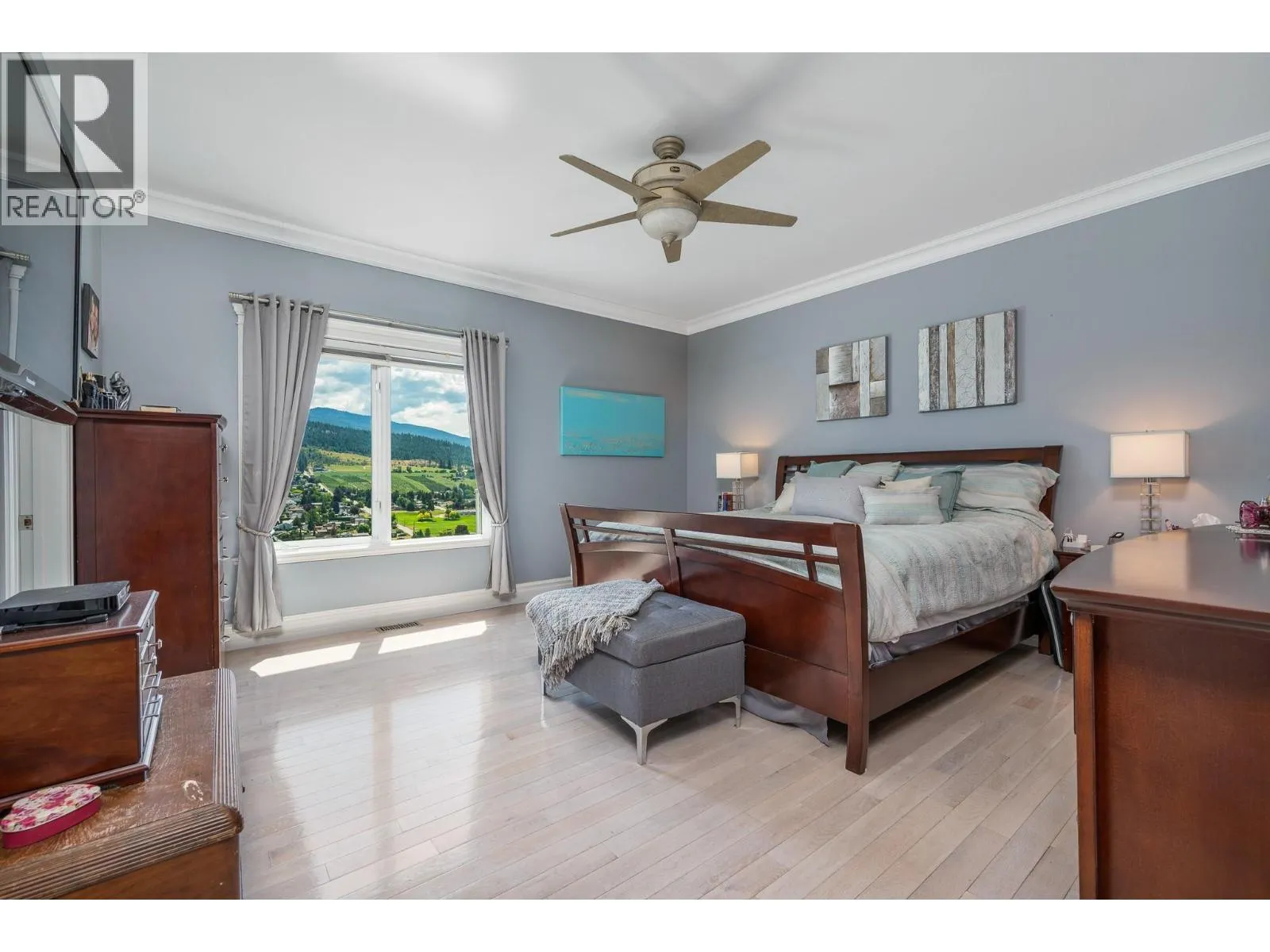 Welcome to 8853 Braeburn Drive, a stunning custom-built 5 bedroom plus office/den 3 bathroom home of over 4500 sq. ft. in the desirable Coldstream Valley Estates. Positioned on a non-thru road to take in panoramic views of Kalamalka Lake and the surrounding hills, this residence blends elegant design with modern comfort. The open-concept main floor starts with the spacious foyer with views to the living room and the spectacular lake view, and just gets better. The main living area is filled with natural light and features soaring ceilings, rich hardwood floors, and large windows framing the spectacular scenery. The chefâs kitchen is equipped with high-end appliances, a mix of tile and granite counters, a large island, and wet bar/coffee station ideal for entertaining. Step outside to the expansive covered deck and enjoy seamless indoor-outdoor living. There are three large bedrooms on the main floor including the spacious primary suite with a luxurious ensuite and a large walk-in closet. Downstairs offers more living space with 2 bedrooms, a huge family room, a media room, a flex room and walkout access to a beautifully landscaped backyard and hot tub area. Suite potential, and just minutes from Vernon, world-class beaches, Silverstar Mtn, golf, hiking and biking trails and more, this outstanding home offers the Okanagan lifestyle at its finest. Lots of parking as well with a large double garage and four outside parking spaces. Take advantage of this rare opportunity today! (id:27476)