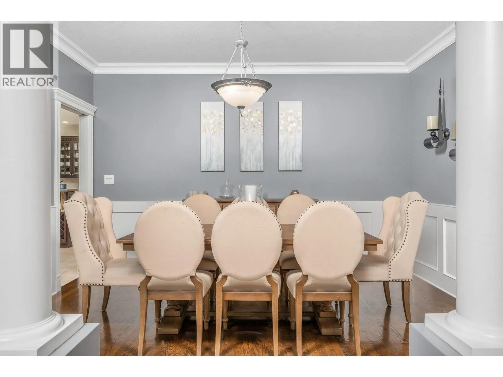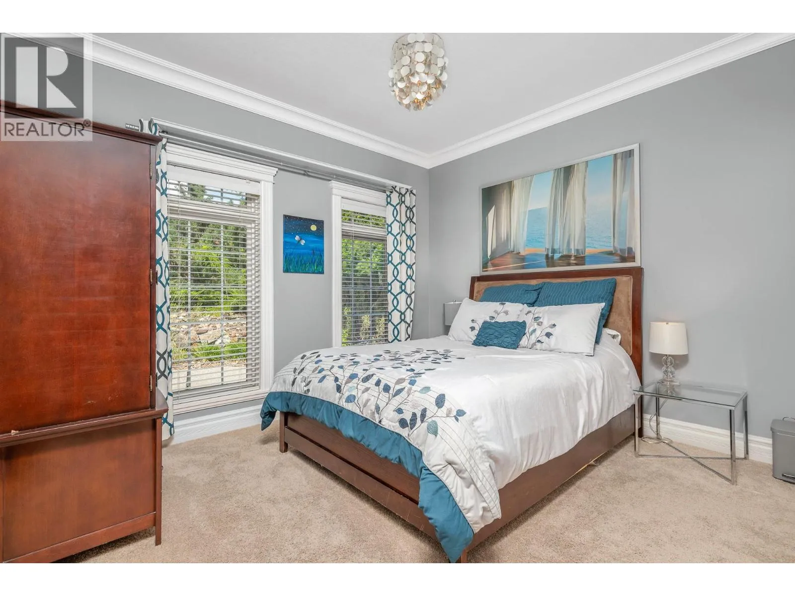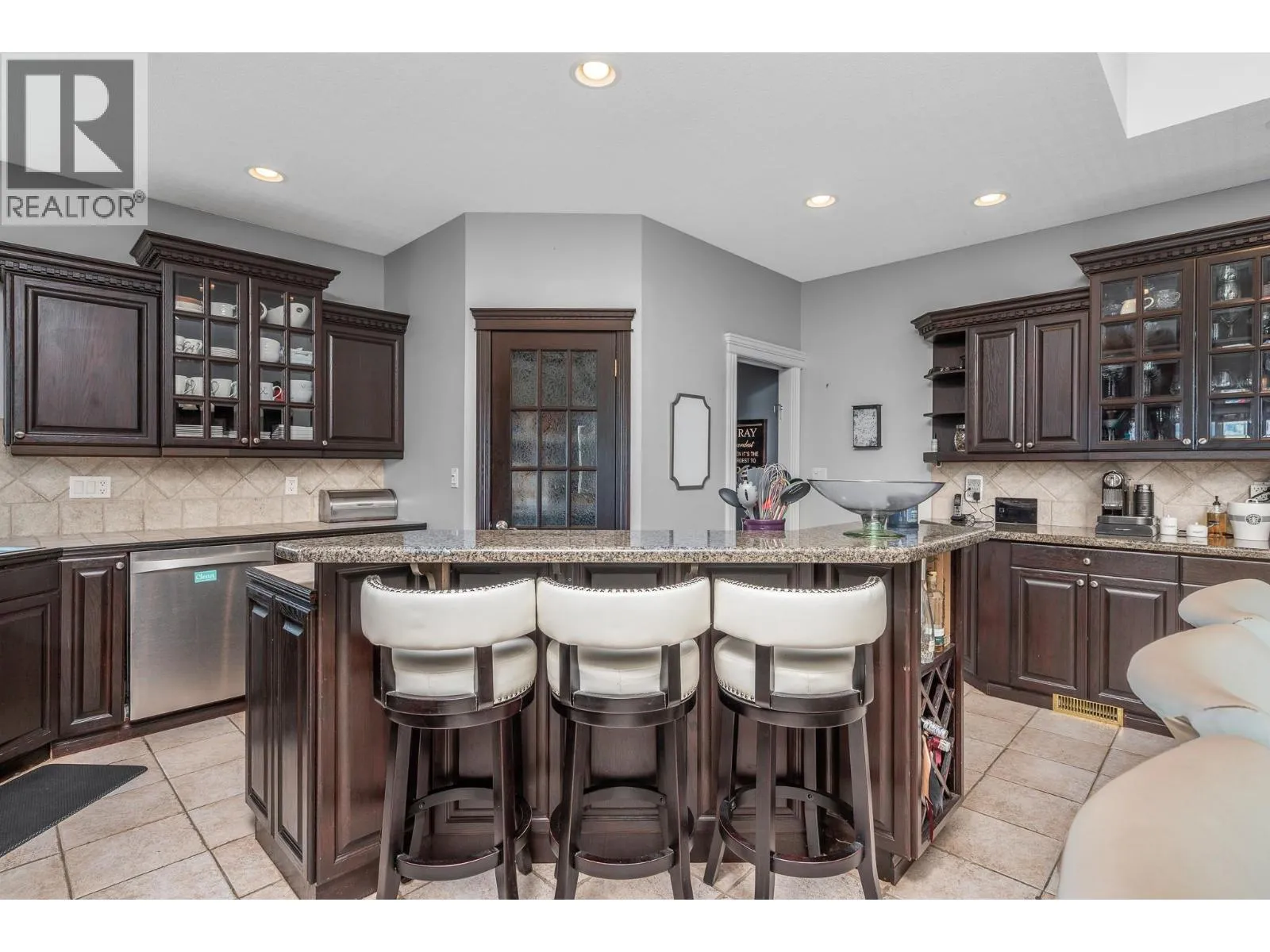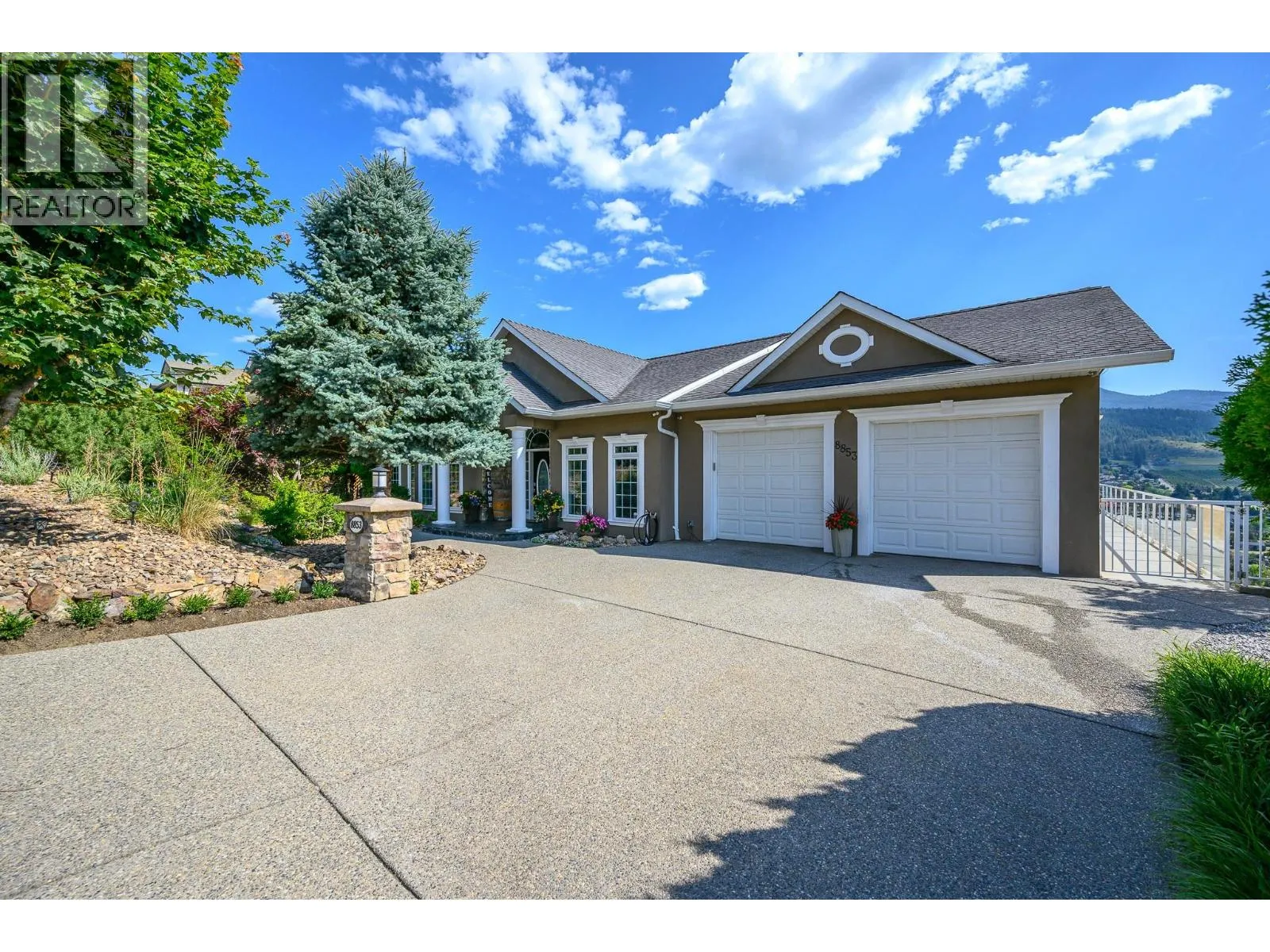 Welcome to 8853 Braeburn Drive, a stunning custom-built 5 bedroom plus office/den 3 bathroom home of over 4500 sq. ft. in the desirable Coldstream Valley Estates. Positioned on a non-thru road to take in panoramic views of Kalamalka Lake and the surrounding hills, this residence blends elegant design with modern comfort. The open-concept main floor starts with the spacious foyer with views to the living room and the spectacular lake view, and just gets better. The main living area is filled with natural light and features soaring ceilings, rich hardwood floors, and large windows framing the spectacular scenery. The chefâs kitchen is equipped with high-end appliances, a mix of tile and granite counters, a large island, and wet bar/coffee station ideal for entertaining. Step outside to the expansive covered deck and enjoy seamless indoor-outdoor living. There are three large bedrooms on the main floor including the spacious primary suite with a luxurious ensuite and a large walk-in closet. Downstairs offers more living space with 2 bedrooms, a huge family room, a media room, a flex room and walkout access to a beautifully landscaped backyard and hot tub area. Suite potential, and just minutes from Vernon, world-class beaches, Silverstar Mtn, golf, hiking and biking trails and more, this outstanding home offers the Okanagan lifestyle at its finest. Lots of parking as well with a large double garage and four outside parking spaces. Take advantage of this rare opportunity today! (id:27476)