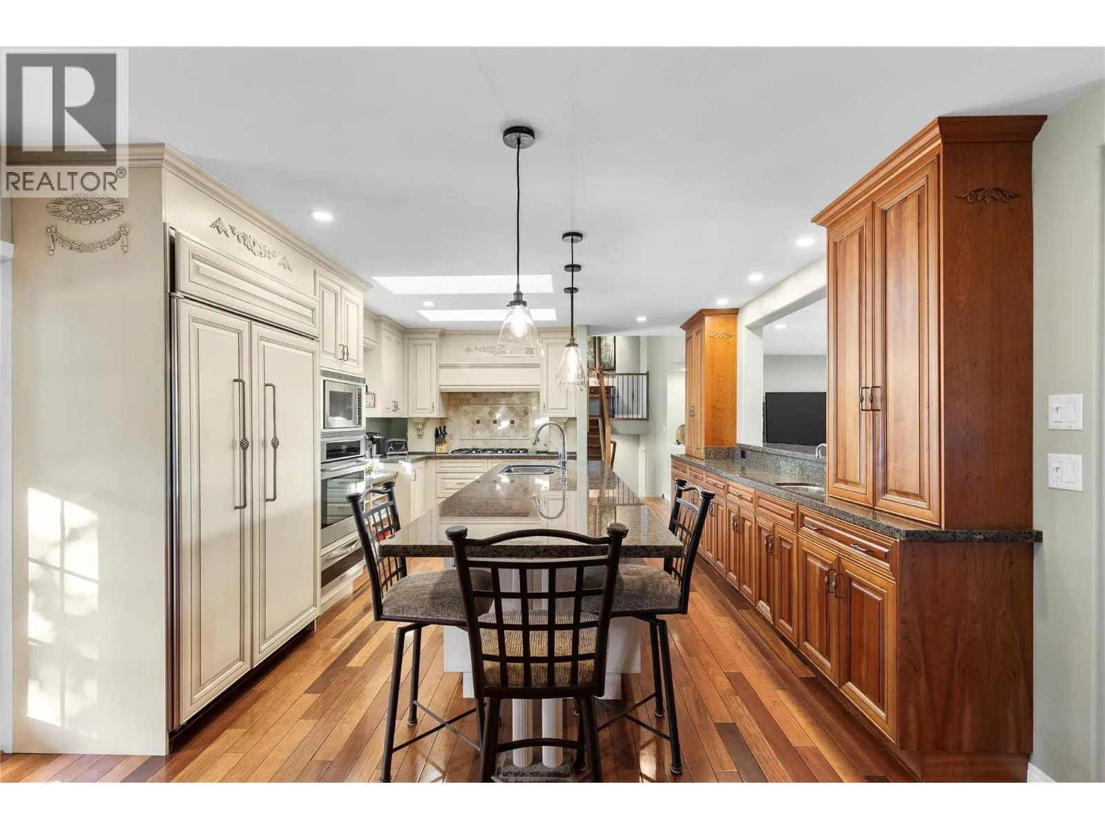 Unrivaled Kalamalka Lake Views, Stately Coldstream Home with Pool & Outdoor Living! The finest of Okanagan living, a 4430 sq.ft. executive rancher perfectly capturing unobstructed views of Kal Lake. Nestled on a private 0.67-acre mature lot on a quiet no-thru road in highly sought-after Coldstream, this EXTENSIVELY renovated home blends timeless design with modern luxuries. A well-designed rancher with basement features four spacious bedrooms, each with a renovated ensuite, plus a powder room for guests. Two well-appointed primary suites on the main level & an open-concept living area capture full lake & mountain views. The kitchen features a massive center island & premium appliances, including a Sub-Zero fridge, gas range, wall oven, warming drawer & bar sink. Open to the great room, the dining space seamlessly flows to the upper deck to enjoy the stunning views. The fully developed walkout level is impressive, with a second full kitchen, a spacious family room with gas fireplace & access to the saltwater pool, outdoor kitchen & lower patio area. A fourth bedroom, walk-in closet & full bath complete this level. Enjoy mature landscaping with fruit trees, a generous double garage, RV parking & ample driveway space. Just minutes to the Okanagan Rail Trail, Kal Beach, top-rated schools & quick access to Vernon (10 min) & Kelowna International Airport (25 min), this exceptional home offers the ultimate blend of luxury, privacy & lifestyle. Donât miss this rare opportunity! (id:27476)