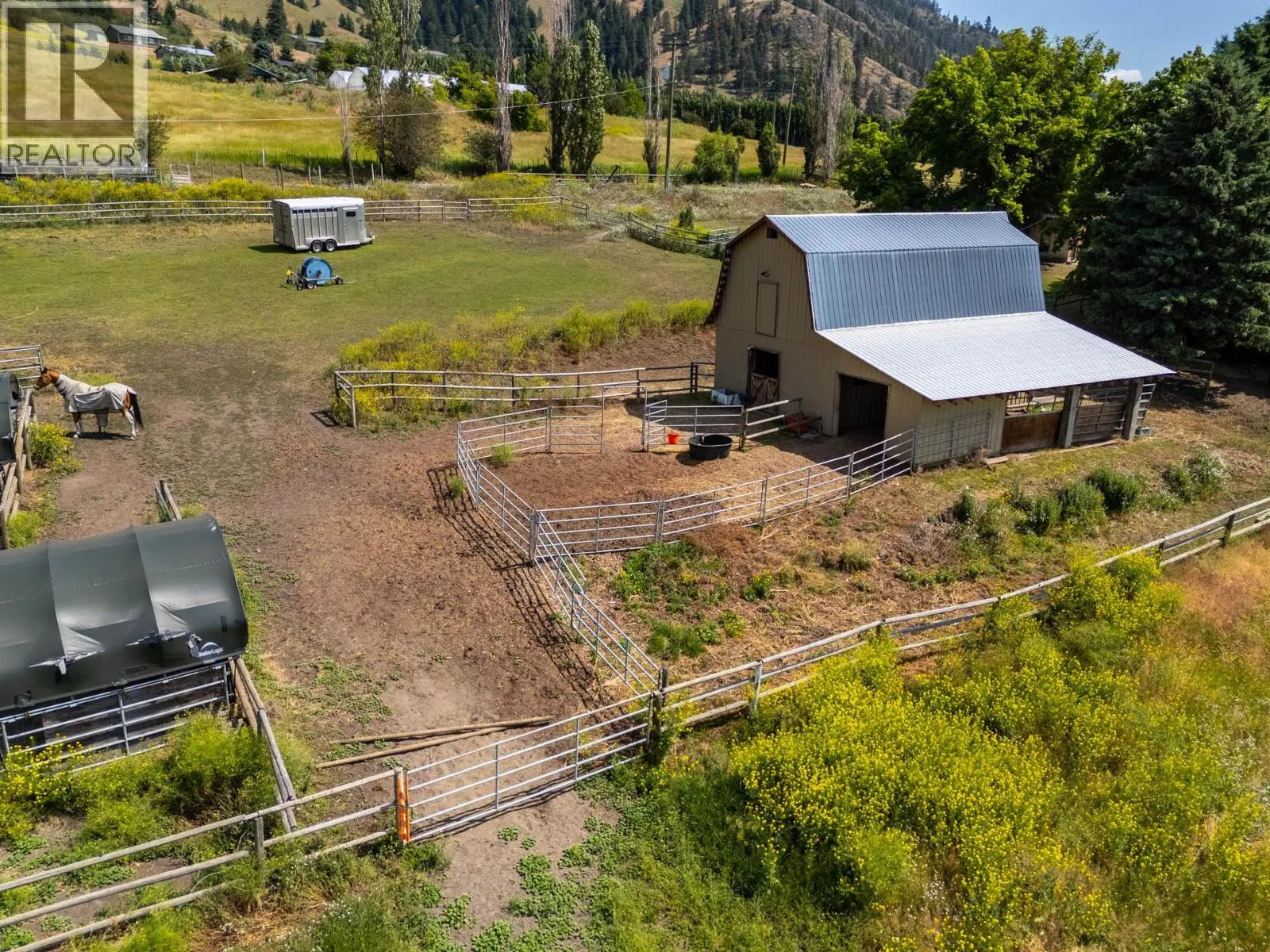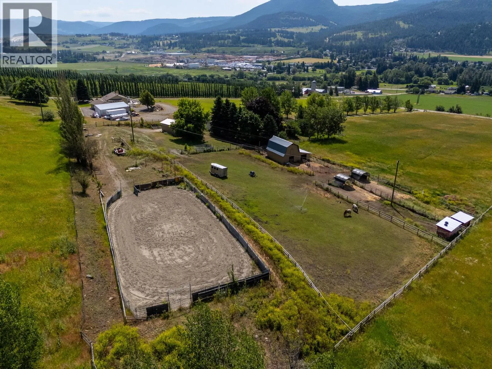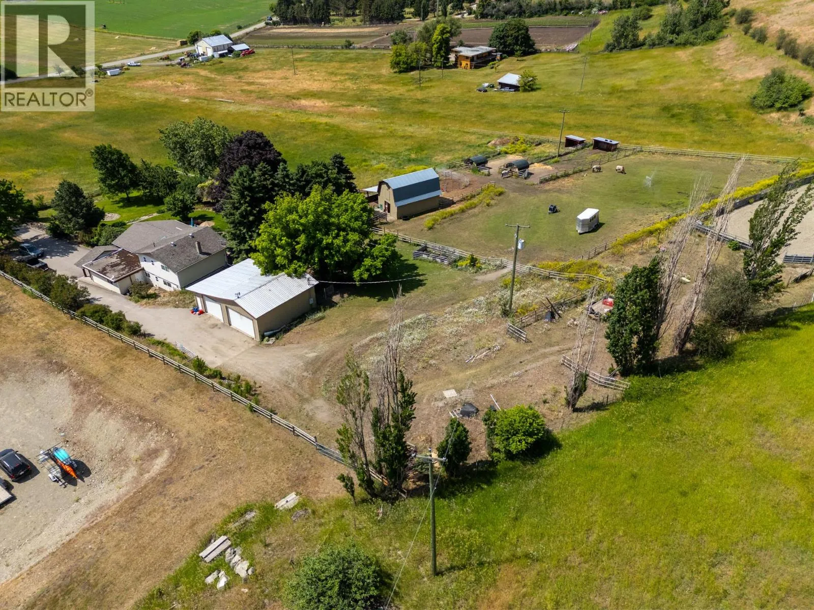 10.04 acre parcel in the Coldstream area of the Okanagan Valley. This residence boasts over 3,100 square feet of living space, featuring four bedrooms, three bathrooms, a double car garage, and renovations throughout. The living room offers vaulted ceilings to get excess natural light in from your valley views ahead, while your kitchen has stainless steel appliances. Off your deck, you can overlook your private garden/yard area, fenced in for convenience for any dogs. While you drive up the tree lined driveway, you pass by your extensive hay fields, irrigated with dedicated irrigation water; the land could be suitable for a variety of crops. The property is set up perfectly for equestrian uses, with a large barn (with hay loft), extensive cross fencing, and a flat, sanded riding arena (uncovered) at the top of the property. There are two dedicated paddocks with shelters. The insulated three bay workshop (with one pass-through stall) is perfect for a home based business, storage, extra covered parking, and more. This is a perfect hobby-farm or equestrian retreat, with significant dollars invested into the land, the home, and the two large outbuildings to help service any agricultural uses. The equipment/irrigation equipment may be negotiable. (id:27476)