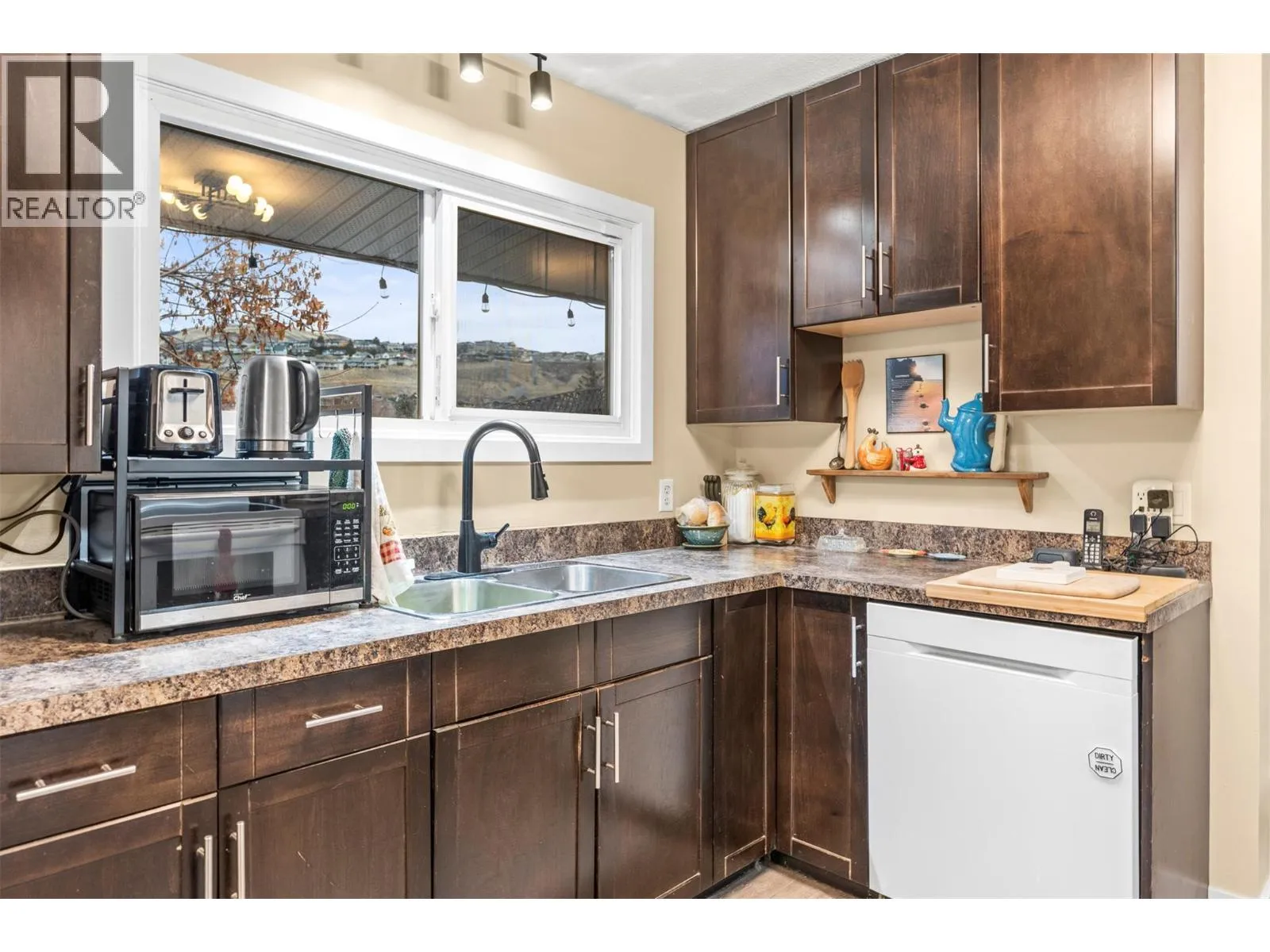 Welcome to 12003 Kidston Rd, a well-maintained 4-bedroom, 2-bath home in one of Coldstreamâs most sought-after neighbourhoods. The main level features a bright living room centered around a cozy fireplace and a spacious kitchen that opens onto the partially covered deck, perfect for morning coffee or evening relaxation. Three bedrooms on this floor, including the primary suite with walk-in closet and dedicated laundry, offer convenience for families or those seeking one-level living. The lower level adds versatility with a fourth bedroom, large family room, and a second kitchen, ideal for extended family, guests, or future suite potential. A standout feature is the large storage area with exterior access, an excellent option for a workshop, hobby space, or gear storage. Outside, youâll find a single-car garage and a location that is truly hard to beat: just minutes from Kal Lake, Kidston Elementary, Kalamalka Secondary, parks, recreation, and everything that makes Coldstream living so desirable. Recent Updates: Gas furnace (2025), heat pump (2025), garage roof (2023), HWT (2022) (id:27476)