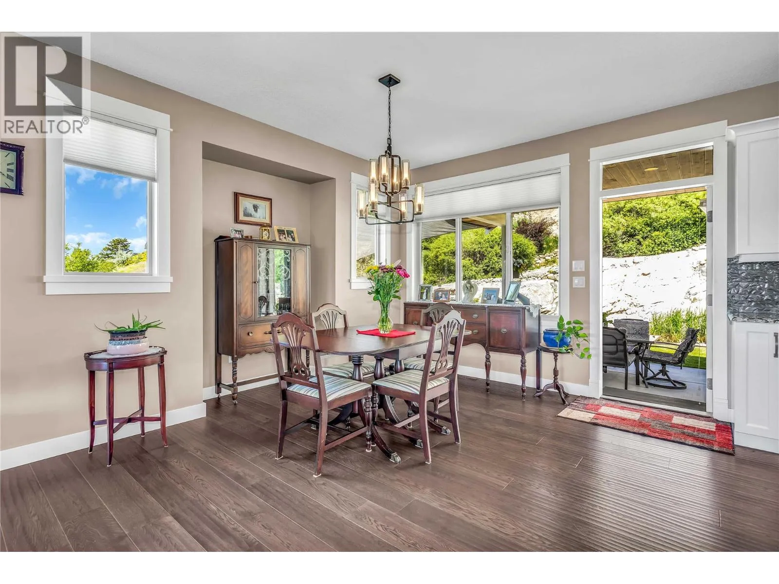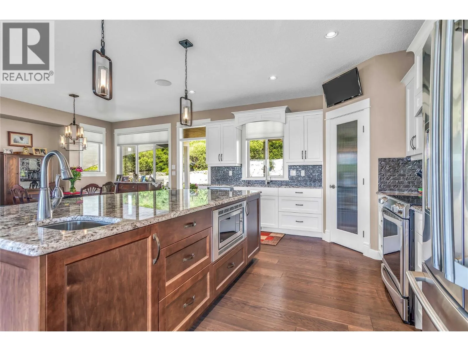 Searching for stunning scenery, unbeatable privacy, and the perfect location? Welcome to your dream home. This exceptional 4-bedroom, 3- bathroom residence is tucked away on a quiet cul-de-sac, offering breathtaking sights of Kal Lake, lush greenery, and hillside landscapes. The entry level features two spacious bedrooms, a full bathroom, and a bright flex space, ideal for guests, a home office, or creative studio. Upstairs, the open-concept living area is bathed in natural light from expansive windows that frame the hillside and lake. It flows seamlessly on to a balcony with jaw-dropping views, the perfect spot for morning coffee or a glass of wine at sunset. The kitchen is an entertainerâs dream, complete with granite countertops, a large island, pantry, and modern appliances. Youâll also find a third bedroom and a luxurious primary with a walk-in closet and spa-like 5-piece ensuite. Step outside to a low-maintenance backyard framed by a natural rock hillside, featuring a covered patio, hot tub rough-in, and pre-wired lighting, all in a private, serene setting. The oversized 3-bay garage provides a true workspace, with ample room for tools, storage, and all your toys, from boats to bikes and beyond. Extras include central vac, a security system, indoor/outdoor sound system, and walkable access to trails, beach, and more, the ultimate blend of luxury and lifestyle. This home checks every box, donât miss your chance to make it yours! Drone Video under ""Additional Photos"" (id:27476)