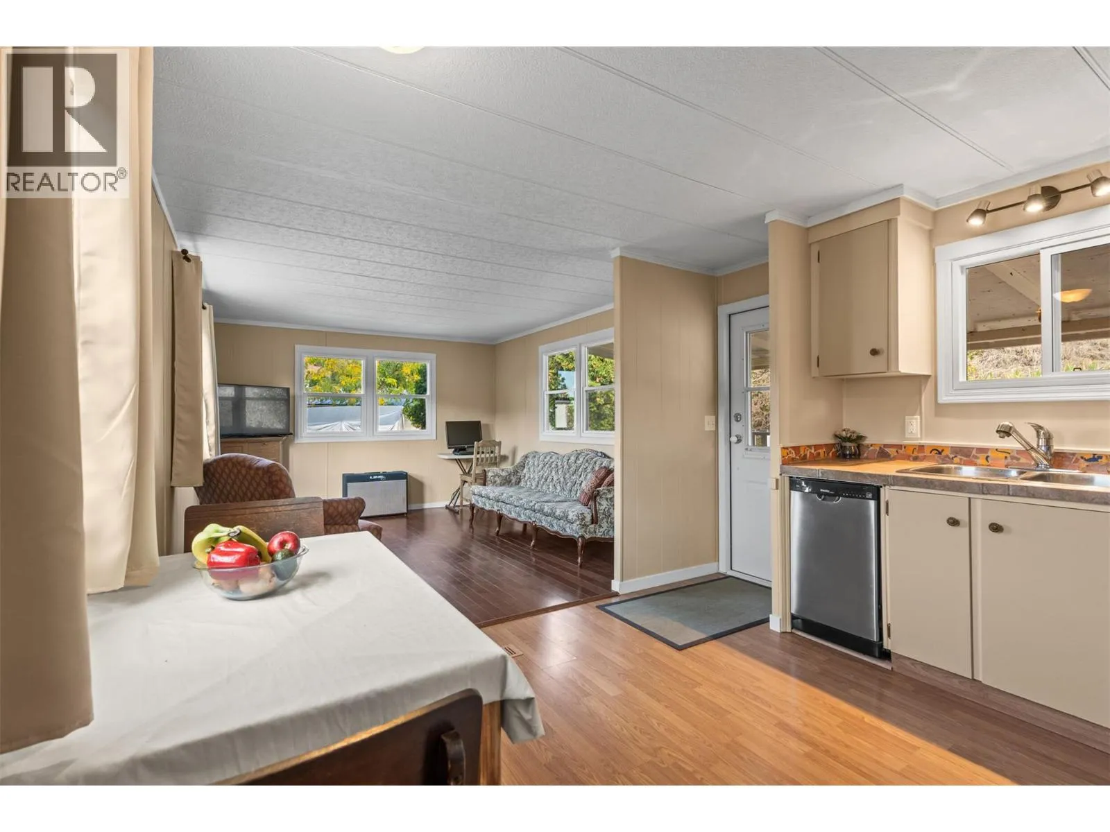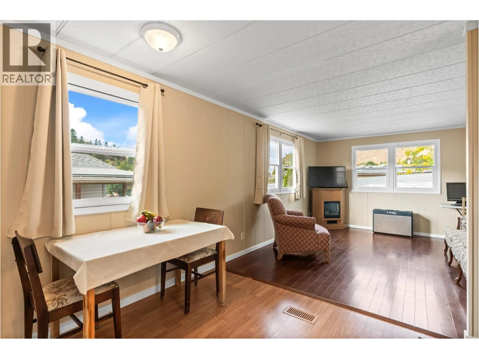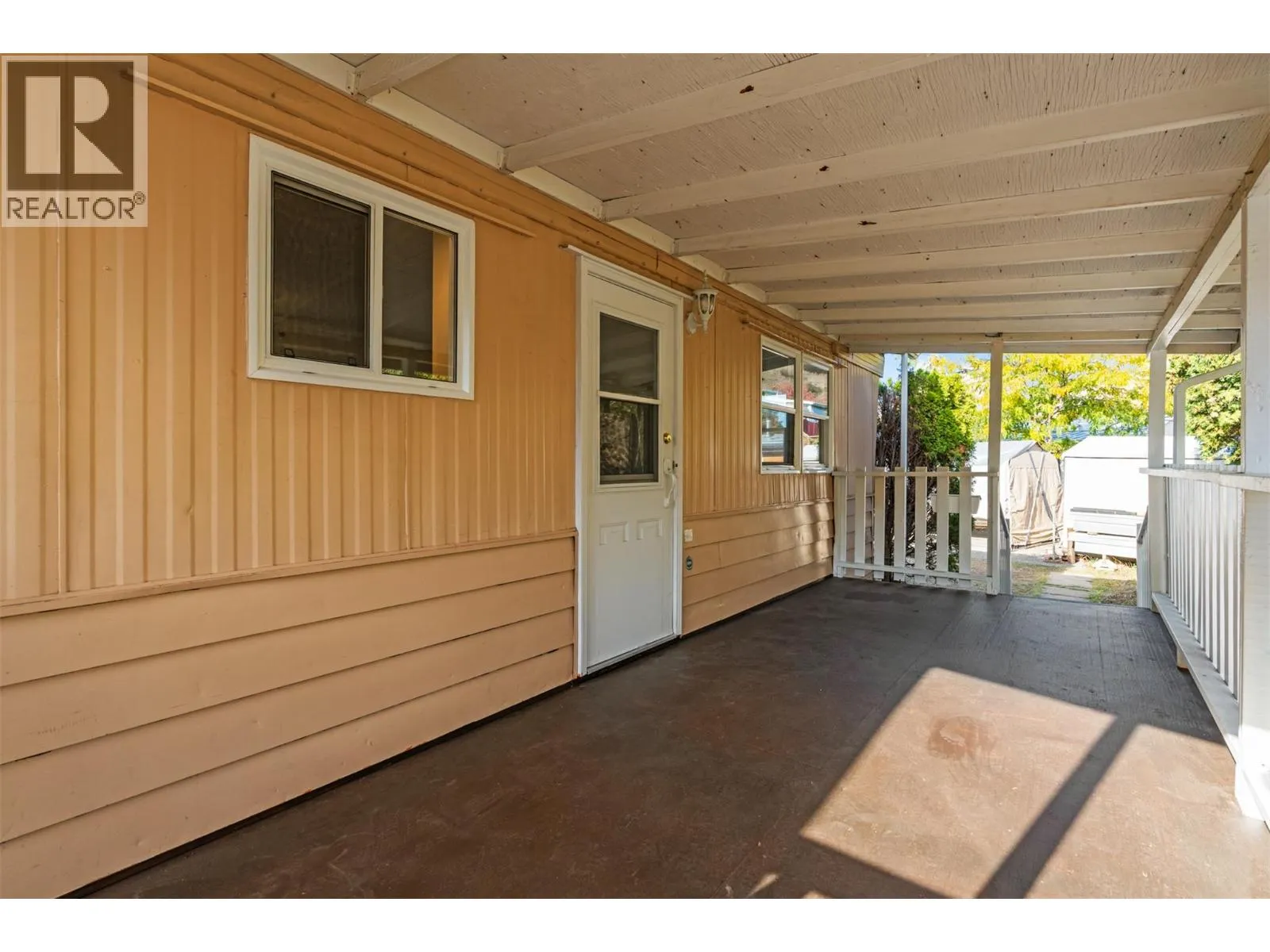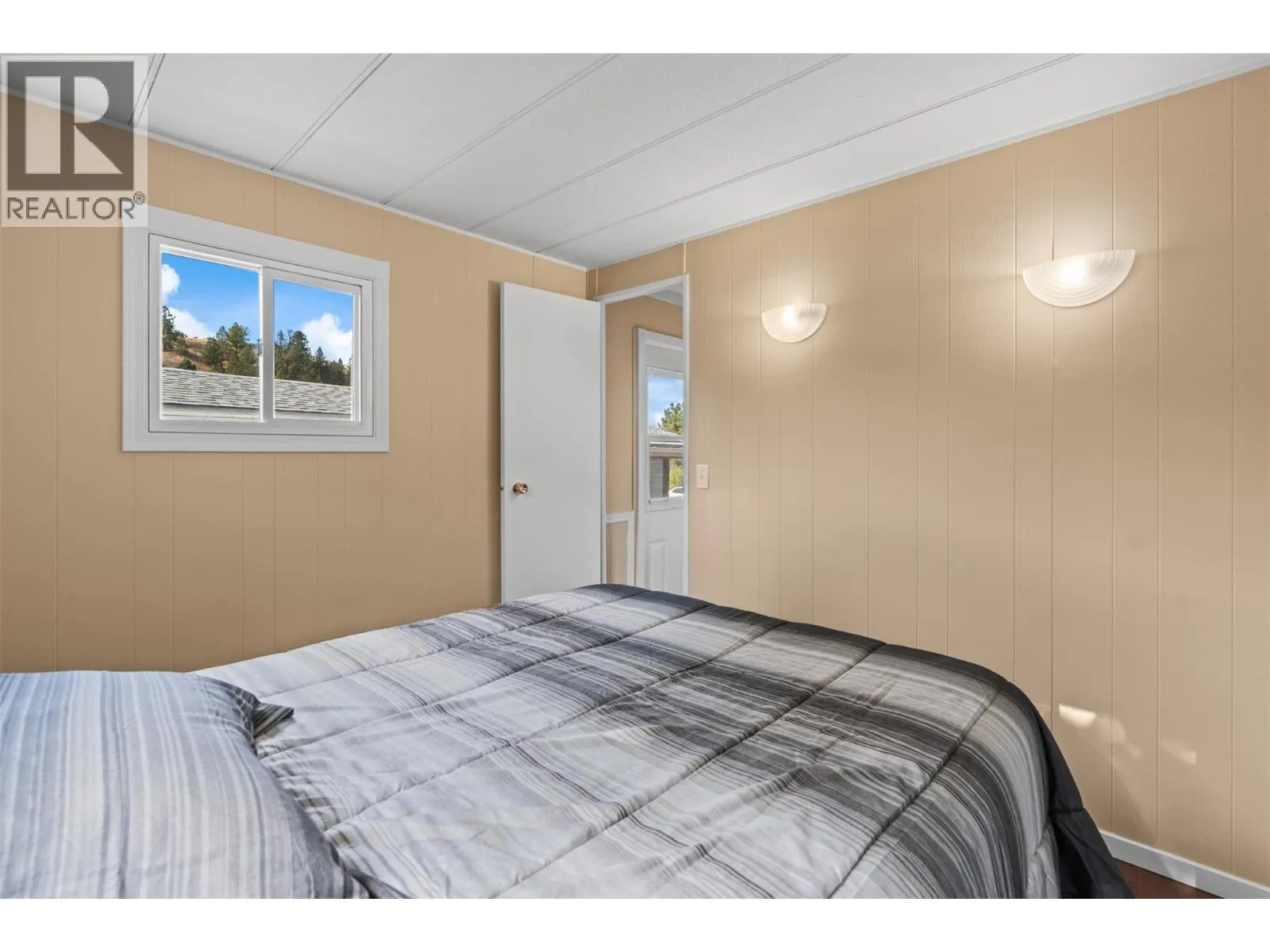 Welcome home to Unit #92 in Lakeway Mobile Home Park! Perfectly situated in a prime location, this home offers convenience and comfort in a well-maintained park. This home is in the 55+ Section. Public transit is right at the park entrance, and youâre just a short walk from Kal Beach, the Rail Trail, Middleton Mountain hiking trails, shopping, and dining â everything you need is close by! This bright and inviting 2-bedroom, 1-bathroom home has been lovingly cared for with updates including fresh paint and newer windows. The open-concept kitchen and living area create a warm, welcoming space filled with natural light. Stay cool all summer long with central air conditioning. Step outside to enjoy the spacious, covered deck â perfect for relaxing or entertaining. The side yard offers added privacy with no neighbor on one side, and two garden sheds provide plenty of extra storage for your tools and outdoor gear. Pets are welcome with park approval. Donât miss this affordable opportunity to enjoy the Okanagan lifestyle in a peaceful, well-kept community! (id:27476)