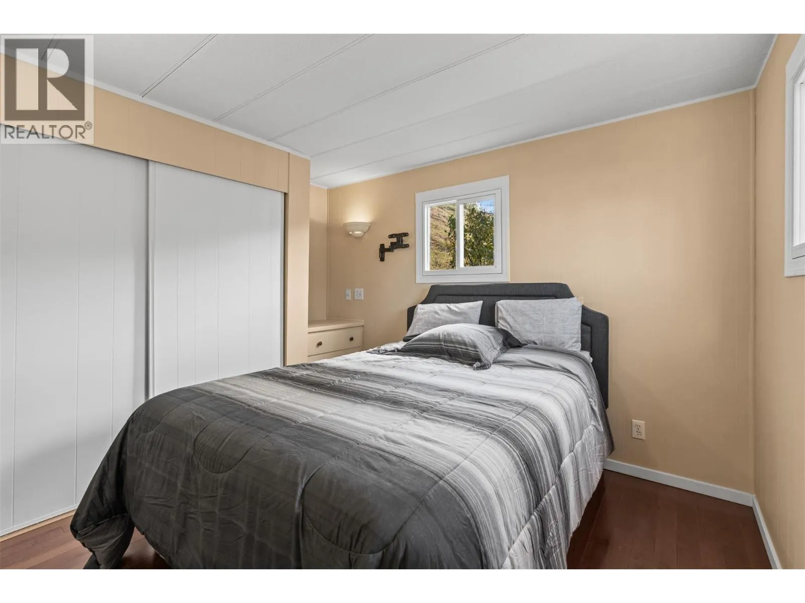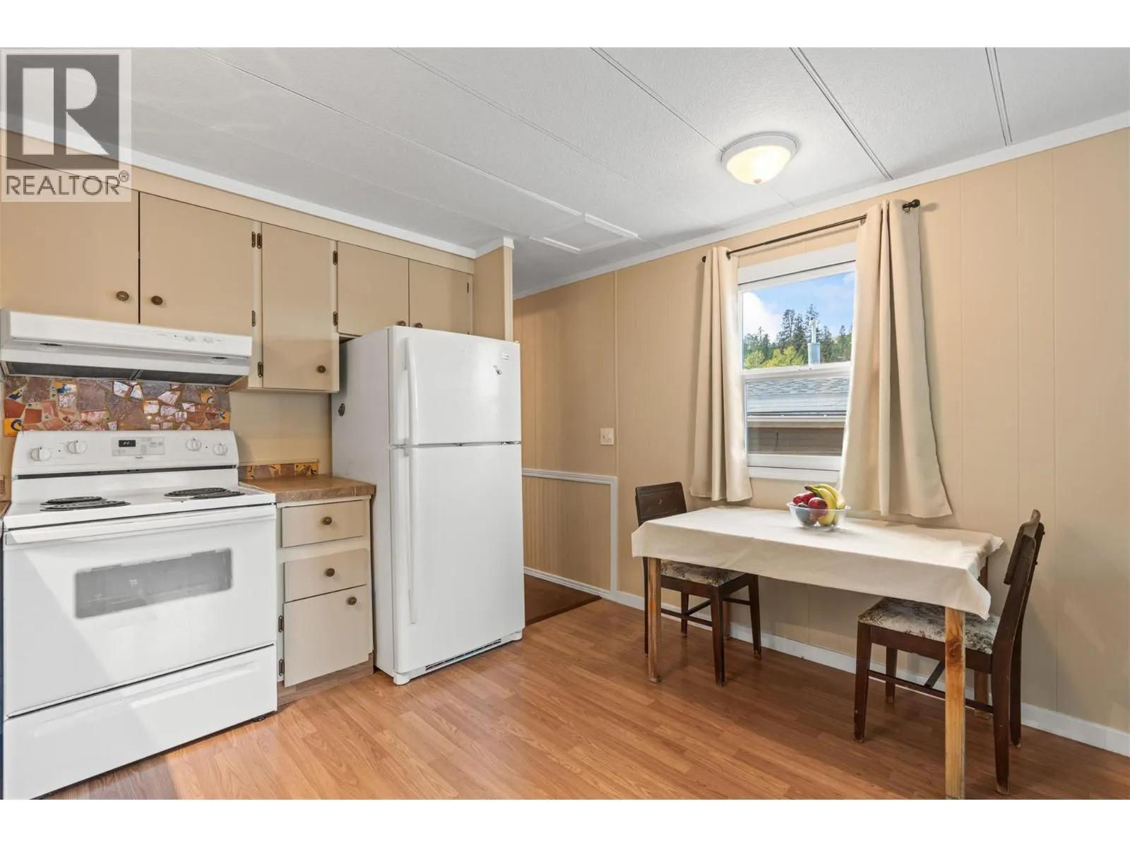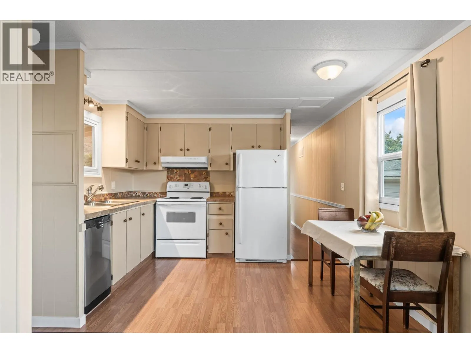 Welcome home to Unit #92 in Lakeway Mobile Home Park! Perfectly situated in a prime location, this home offers convenience and comfort in a well-maintained park. This home is in the 55+ Section. Public transit is right at the park entrance, and youâre just a short walk from Kal Beach, the Rail Trail, Middleton Mountain hiking trails, shopping, and dining â everything you need is close by! This bright and inviting 2-bedroom, 1-bathroom home has been lovingly cared for with updates including fresh paint and newer windows. The open-concept kitchen and living area create a warm, welcoming space filled with natural light. Stay cool all summer long with central air conditioning. Step outside to enjoy the spacious, covered deck â perfect for relaxing or entertaining. The side yard offers added privacy with no neighbor on one side, and two garden sheds provide plenty of extra storage for your tools and outdoor gear. Pets are welcome with park approval. Donât miss this affordable opportunity to enjoy the Okanagan lifestyle in a peaceful, well-kept community! (id:27476)